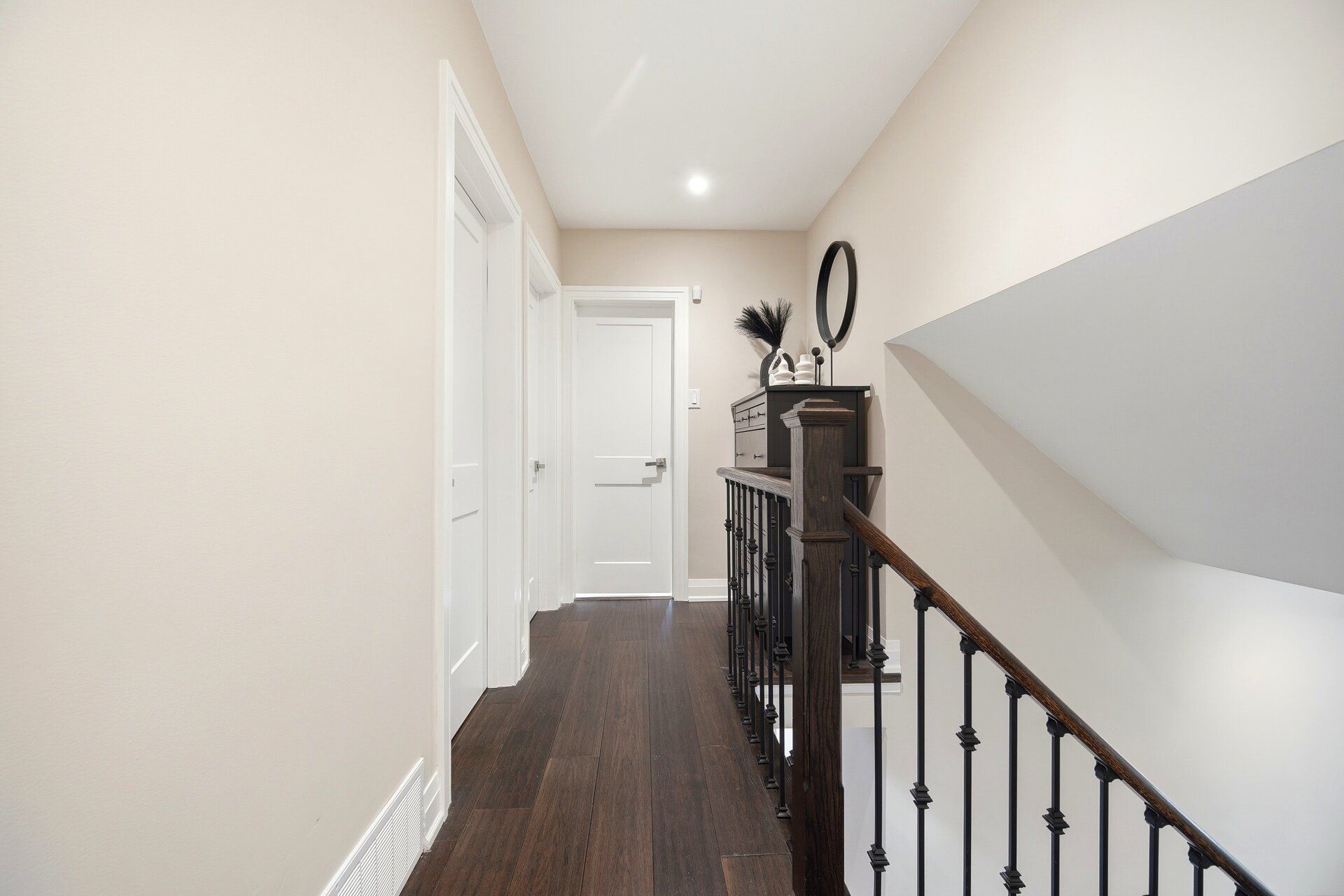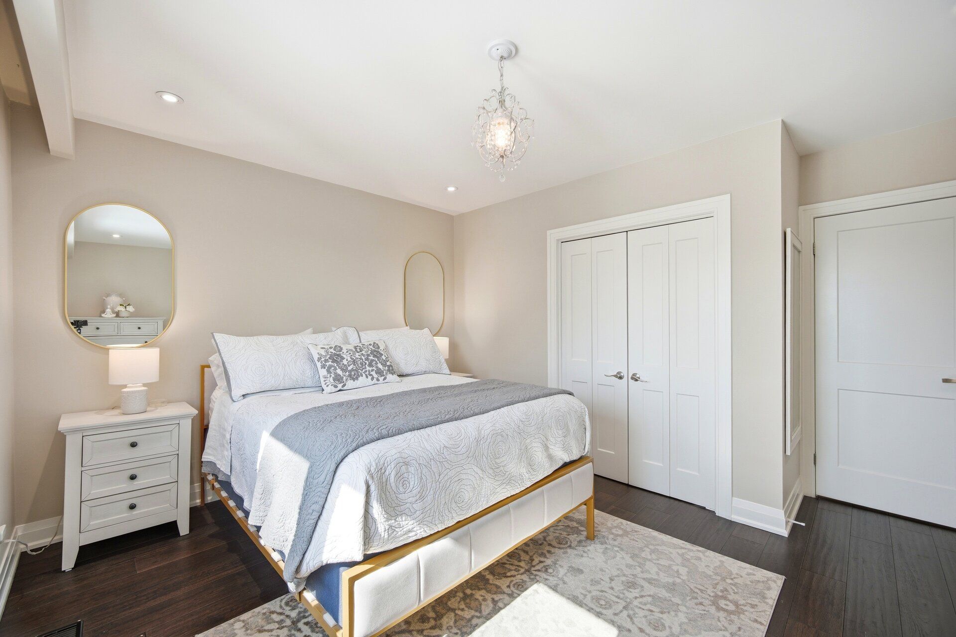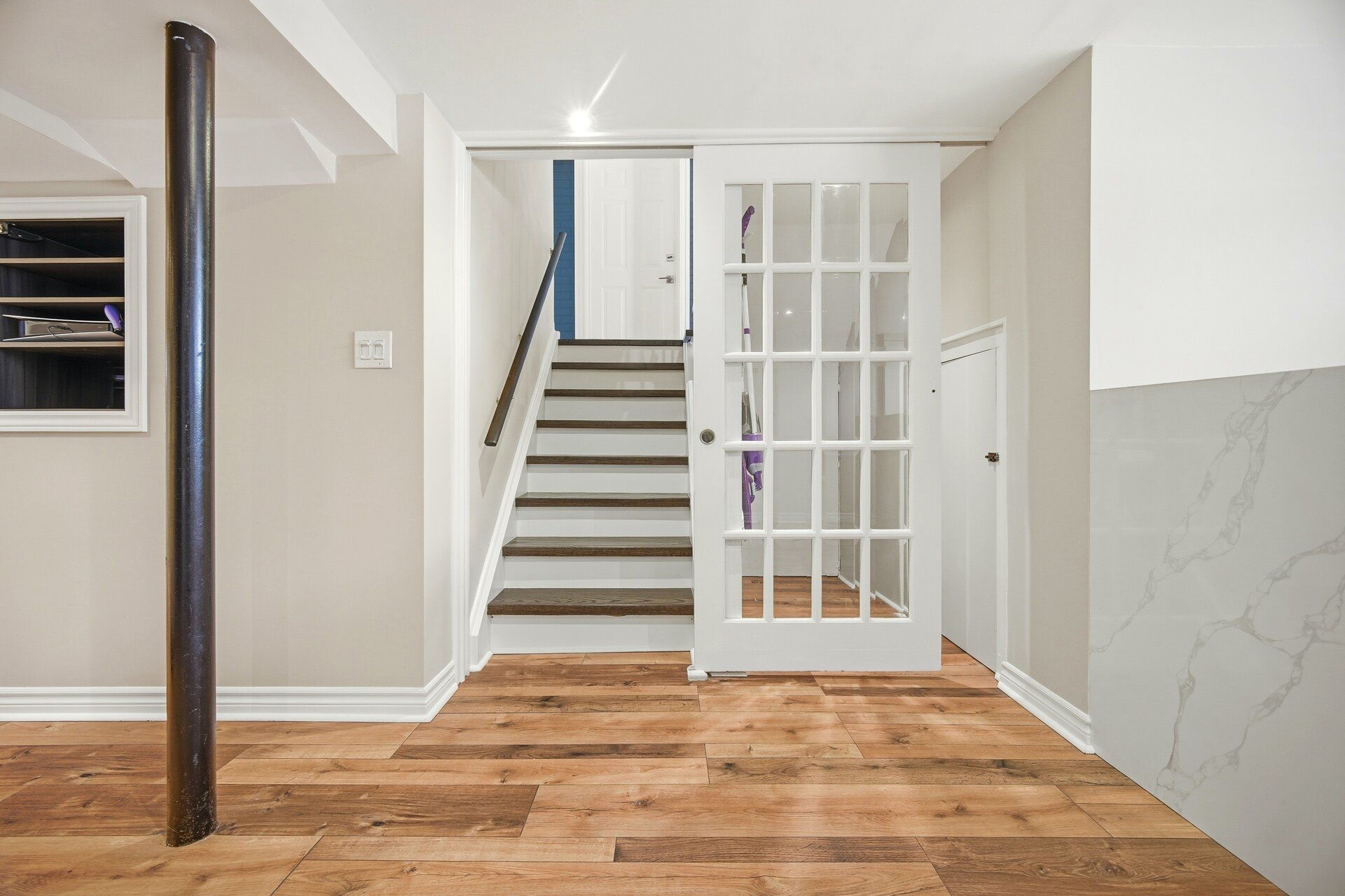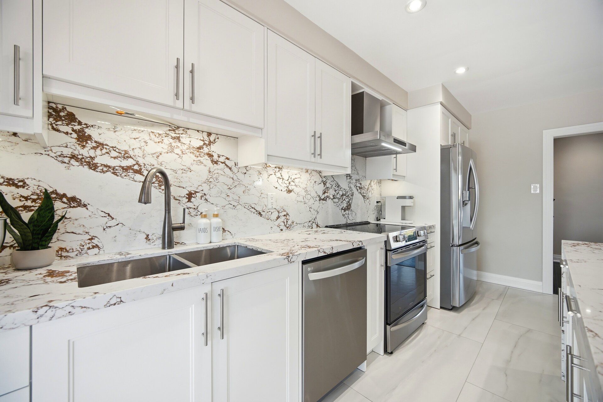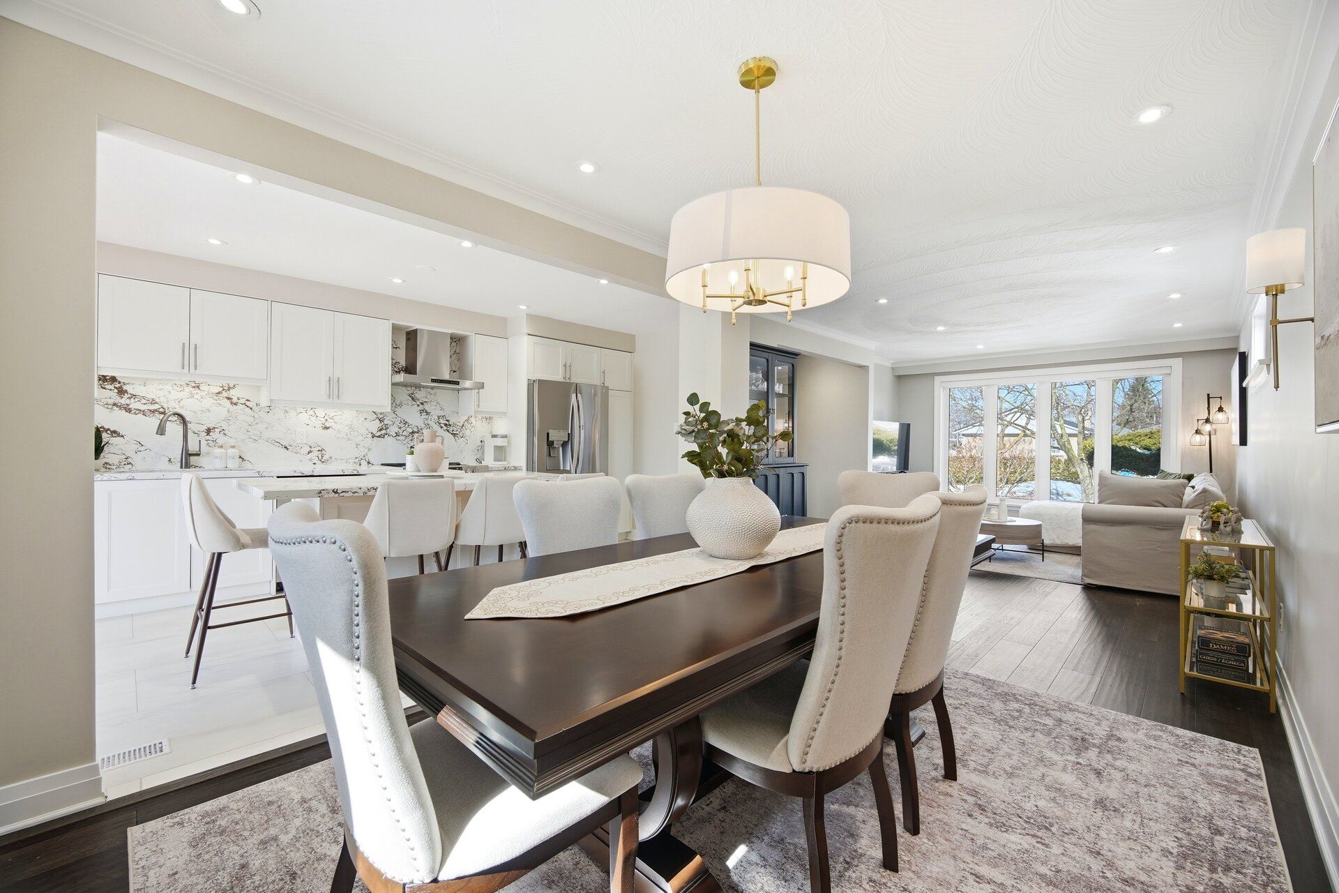 Where style meets comfort, this beautifully renovated 4-level sidesplit blends modern design with lasting quality. Featuring 4 bedrooms, 3 baths and a landscaped 150-ft lot, this home delivers space, function and sophistication in every detail. Inside you'll find imported italian porcelain tiles, engineered hardwood floors, chandelier lighting and inside access to an oversized garage with built-in shelving. The newly renovated kitchen shines with a quartz waterfall island, italian porcelain floors, pot lights, under-cabinet lighting and large sliding doors opening to a covered wood deck and private, treed backyard with no houses - perfect for relaxing or entertaining. The living and dining rooms offer crown moulding, oversized windows with remote blinds, potlights and upgraded lighting throughout. Upstairs the primary bedroom overlooks the backyard and features electronic blackout blinds, alongside two additional bedrooms and a stunning3-piece bath finished in blue italian porcelain with a mosaic shower floor and glass enclosure. The lower level is designed for everyday living and entertaining, featuring a custom laundry room with quartz counters and cabinetry, plus an incredible home theatre with a 100-inchprojection screen, smart projector, included l-shaped seating and ambient lighting. A new3-piece bath adds even more convenience and style. Major updates include new aluminum garage door, furnace, ac, roof, windows, doors, plumbing, hvac and smart home security. Freshly painted and move-in ready - offering luxury, efficiency and peace of mind. Located close to transit, highways, schools and all amenities. Click virtual tour!