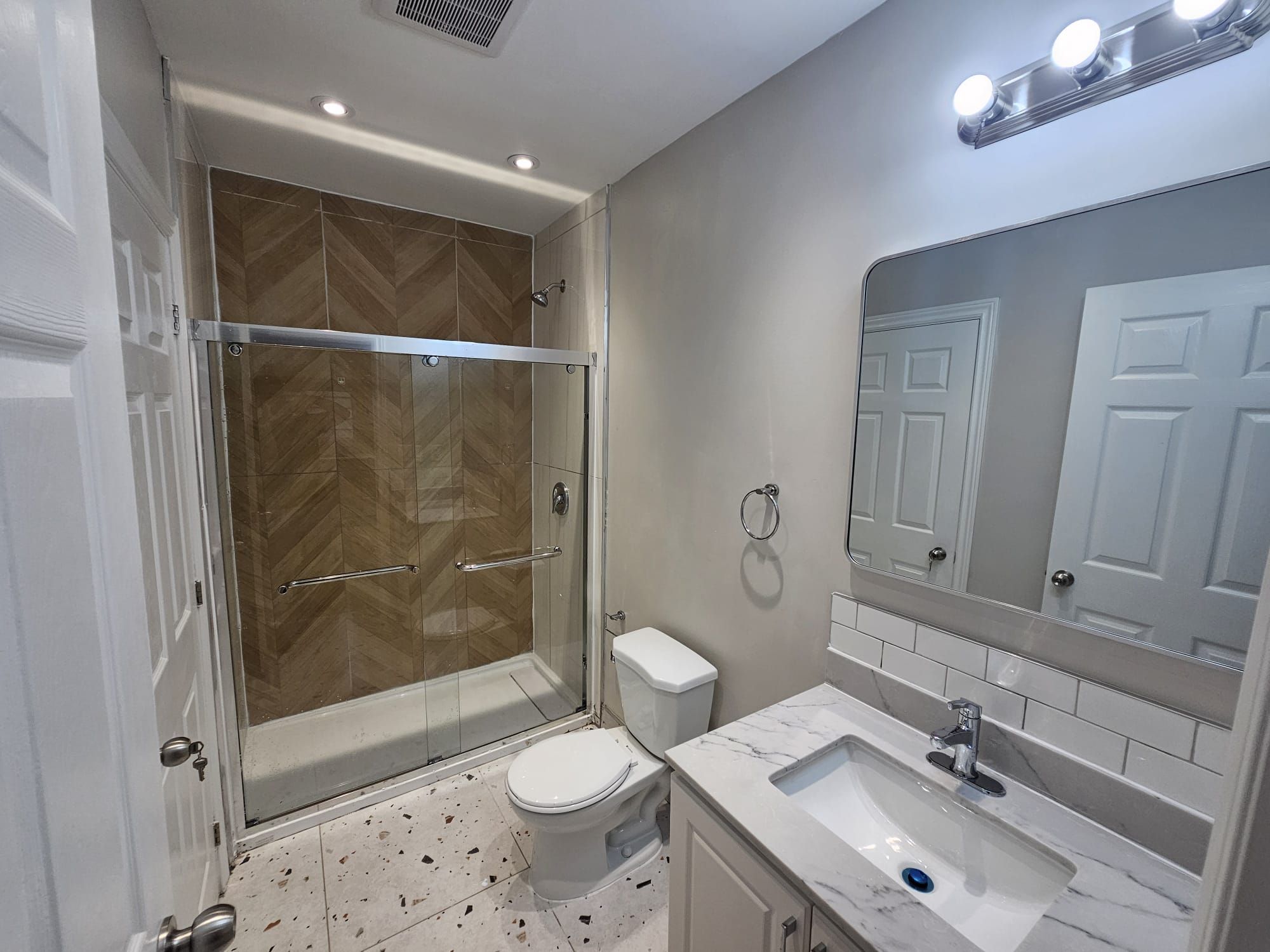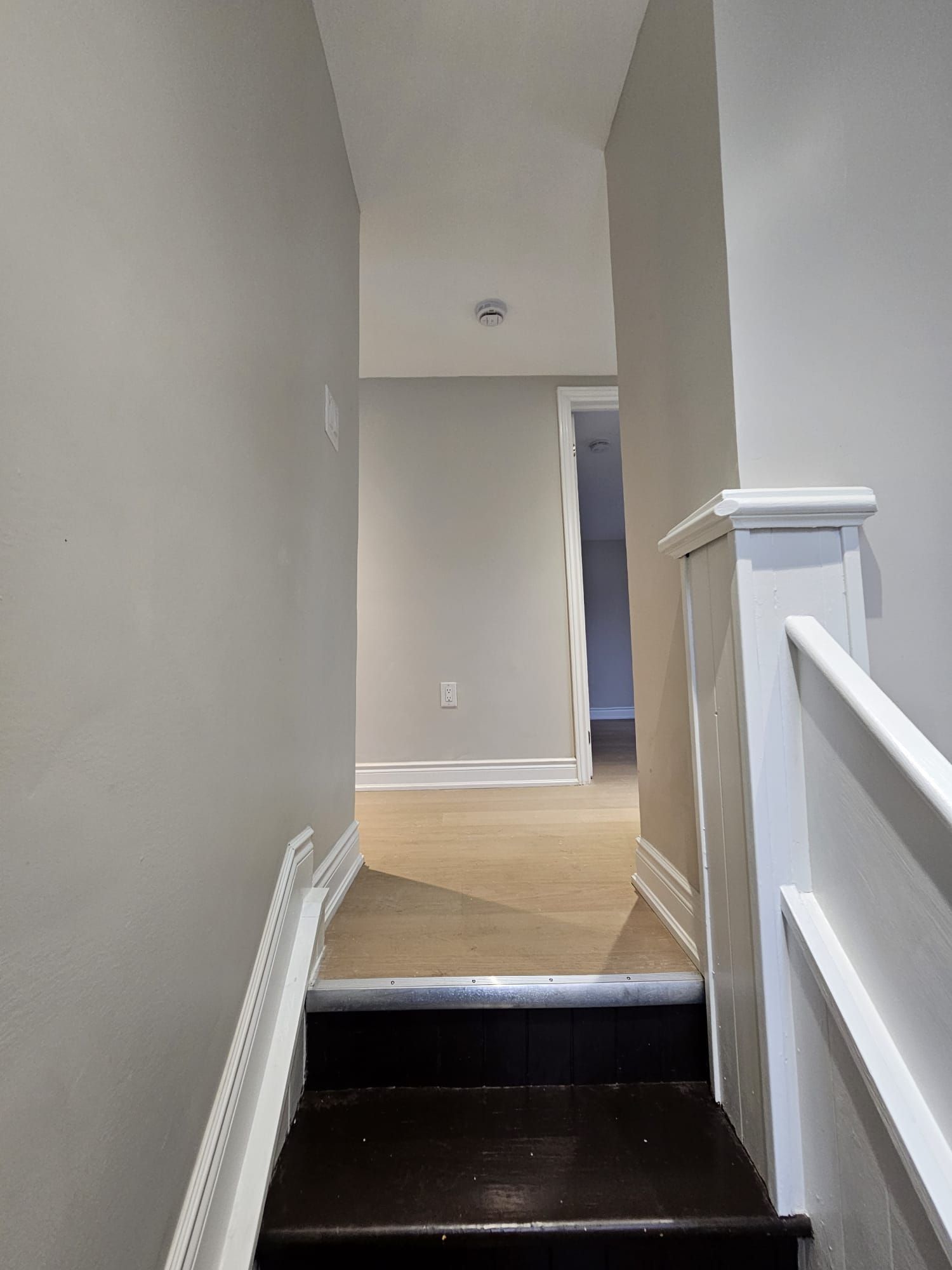 • Modern kitchen with stainless steel appliances and new flooring throughout.
