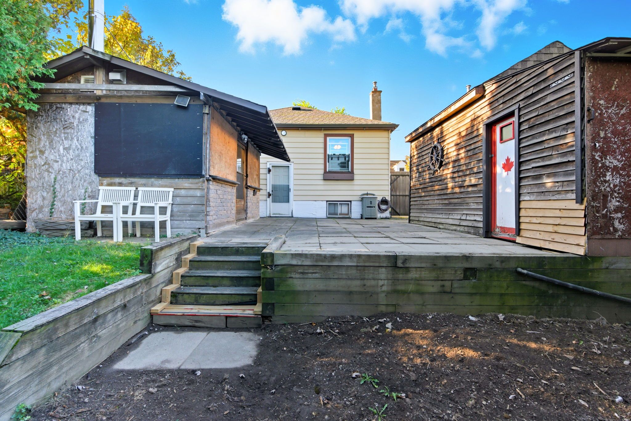 • Private backyard with a covered patio and workshop/storage shed with hydro.