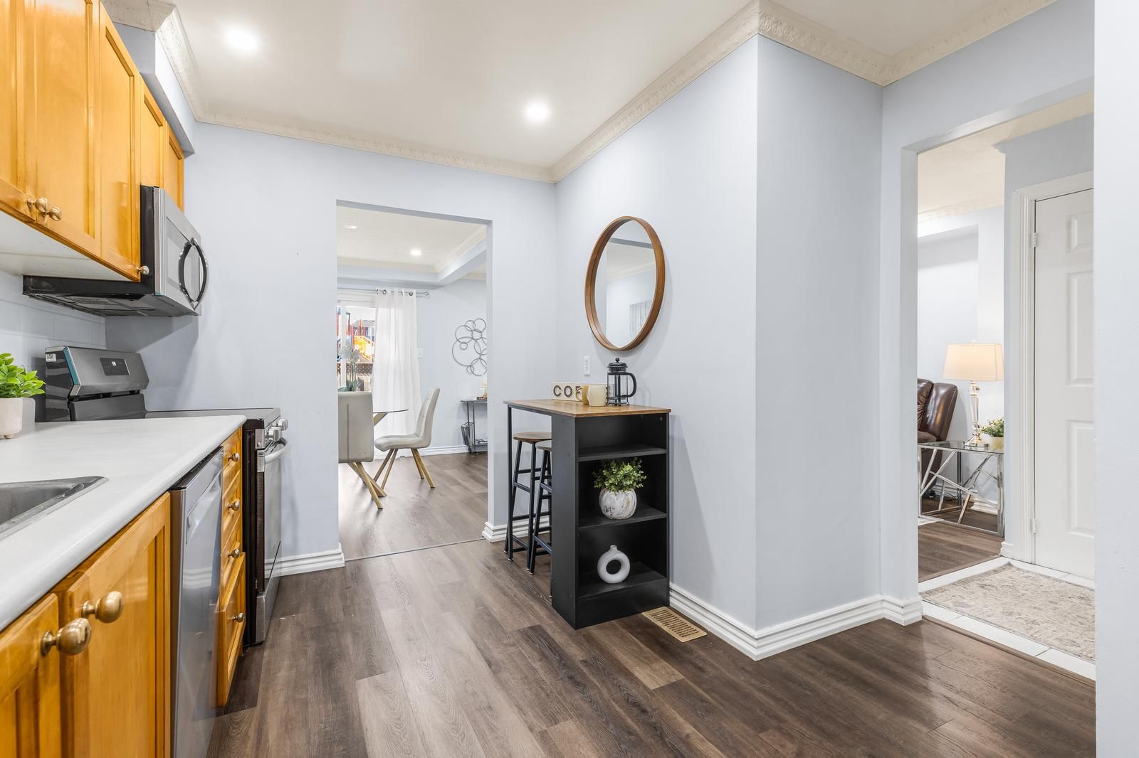 From the moment you walk in, this home feels right. Bright, welcoming, and thoughtfully updated, this meadowvale townhome offers the space, layout, and setting today's buyers are searching for. The main level features a seamless flow from living to dining, with large windows, pot lights, and updated flooring (2024) creating a clean, modern feel throughout. The kitchen has been refreshed with stainless steel appliances (2024), updated backsplash, and ample cabinetry for everyday living. Bathrooms have been tastefully updated (2025), making this a truly move-in-ready home. Upstairs, you'll find three spacious bedrooms, including a bright primary retreat, while the finished basement offers flexible space for a rec room, home office, or growing family. What truly sets this home apart is the setting. The fully fenced backyard backs directly onto green space and a playground, offering rare privacy with no rear neighbours and a natural extension of your outdoor living. Located in a quiet, family-friendly community just steps to parks, trails, and lake aquitaine, and minutes to meadowvale town centre, schools, transit, and major highways, this is a home that combines comfort, convenience, and lifestyle in one of mississauga's most established neighbourhoods.