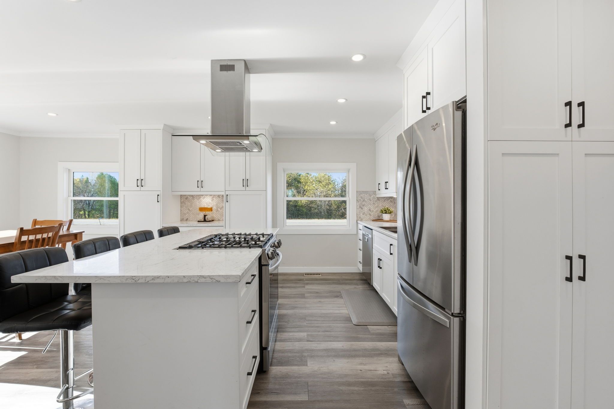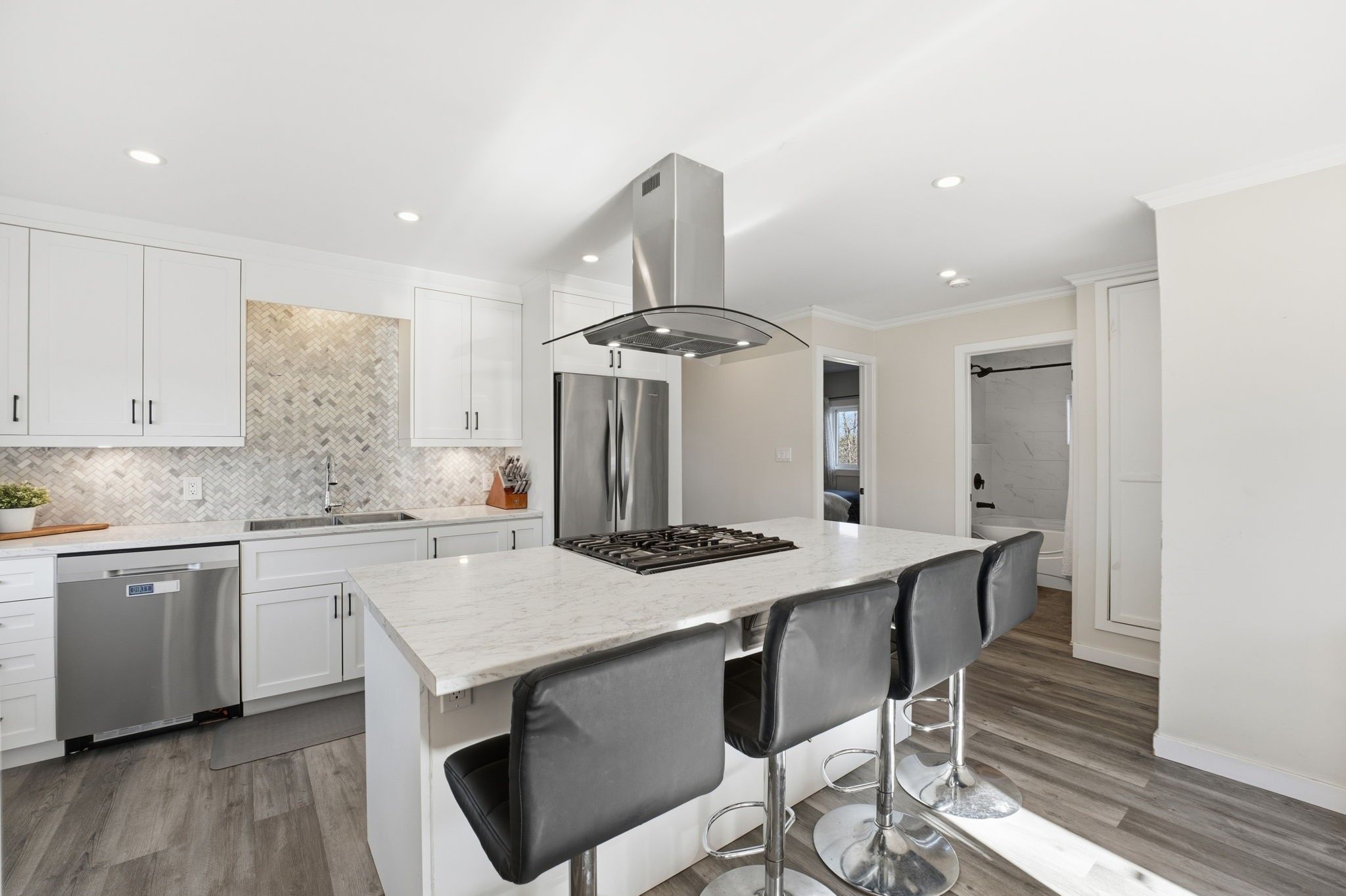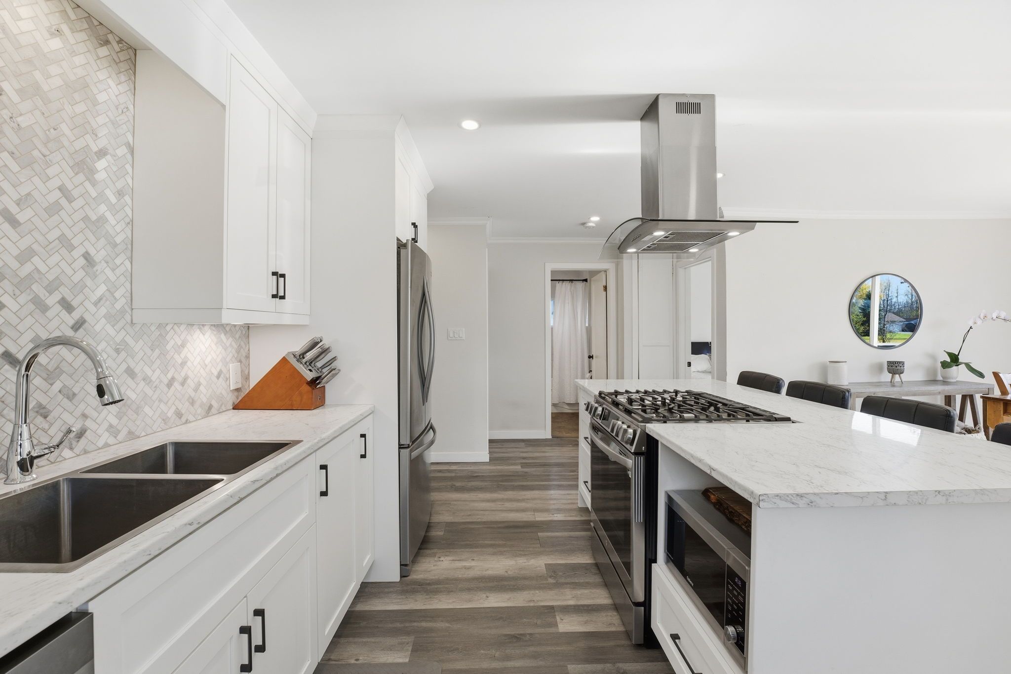 • Stylish kitchen with modern cabinetry and a huge island.
