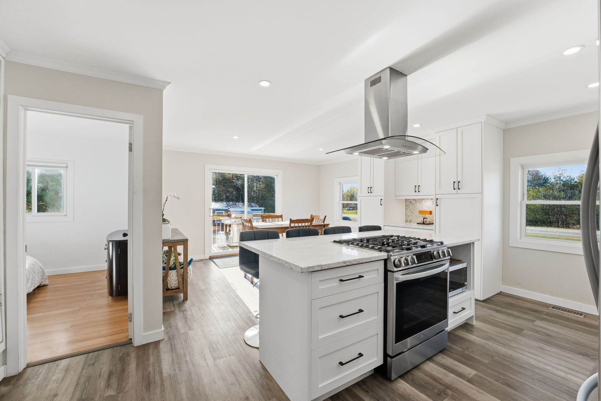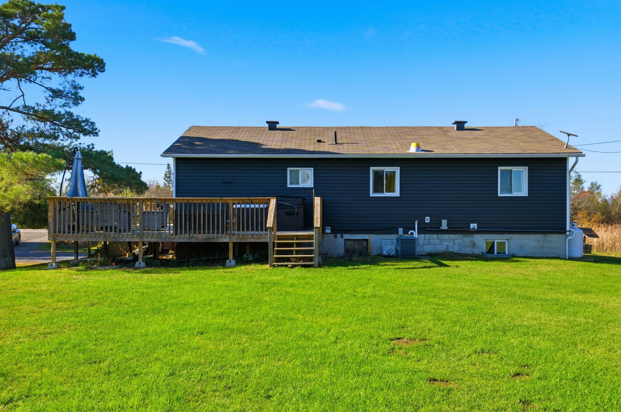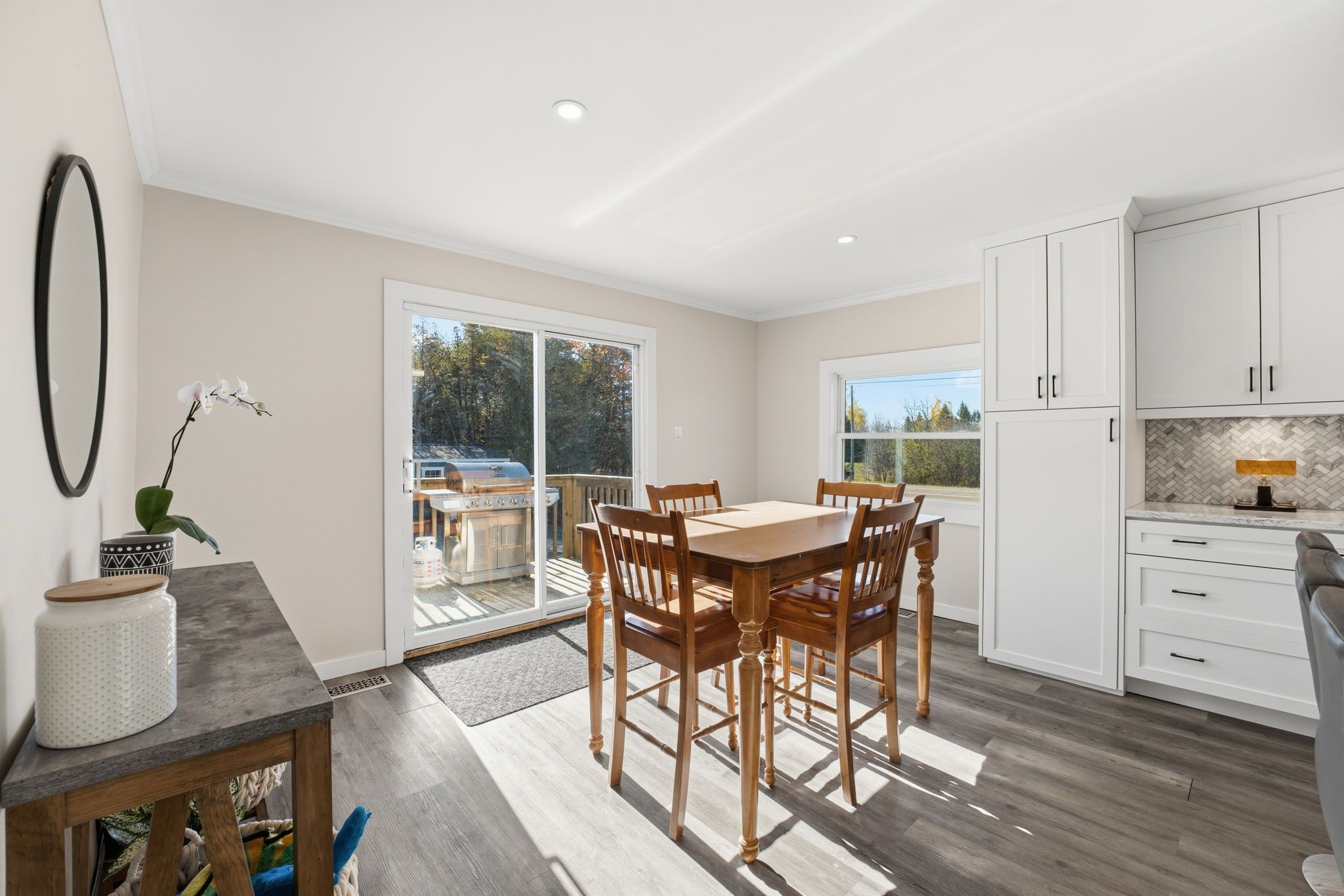 Beautifully renovated home, a heated & cooled shop & tons of room for hobbies, gardening & evening fire pit gatherings. You won't want to miss out on this 4 bedroom high ranch home on over an acre of land! Perfect quiet country setting. Enjoy privacy and space and just minutes to the amenities & charm of downtown merrickville. This perfectly sized home was transformed in 2023, and features new vinyl siding with stonework and 2" energy board. New floors, ceilings and nicely updated bathrooms. The kitchen is a showstopper with sleek modern cabinetry, gorgeous backsplash, a huge island, and an open concept dining area with patio doors leading to the huge deck.. Perfect for entertaining. The living room is a quiet inviting space with a huge window. Versatile office off the living room could be a bedroom, or a play area to hide all the kids toys! 2 other bedrooms round out the main level. The lower level provides flexibility for family and guests with a large gym/den (you chose!) a spacious bedroom and a beautiful full bathroom. This home has it all; including practicality and good value. The perfect balance of style, comfort and country living.