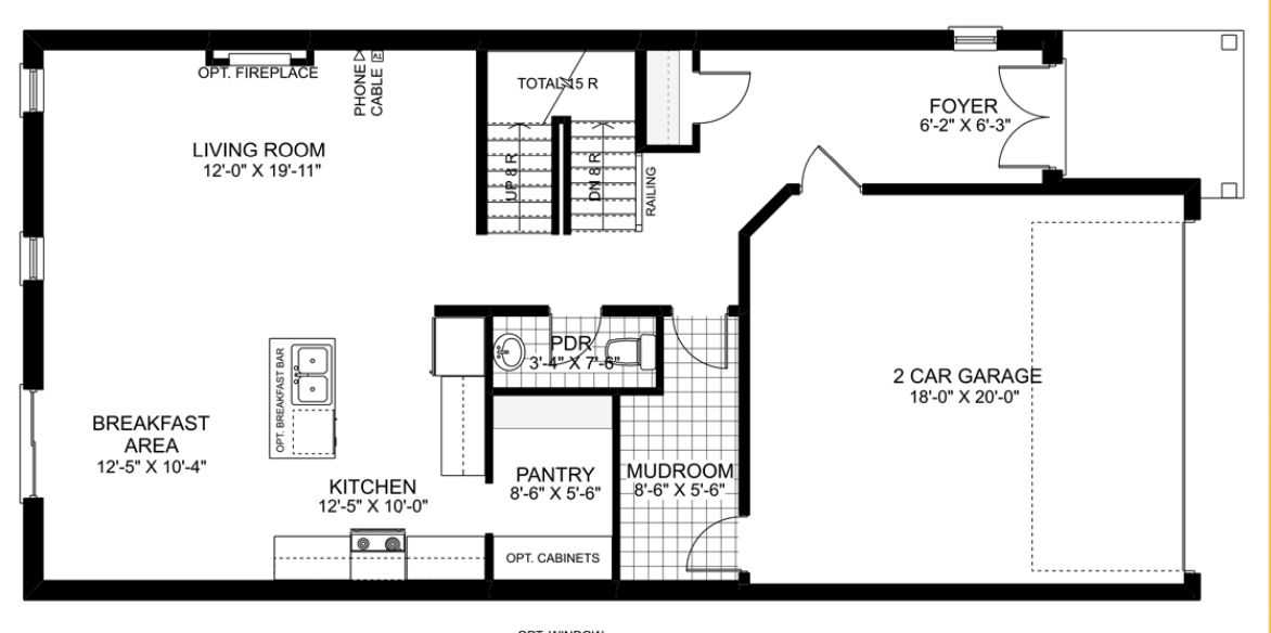 • Open concept main level with kitchen, great room, and dinette.