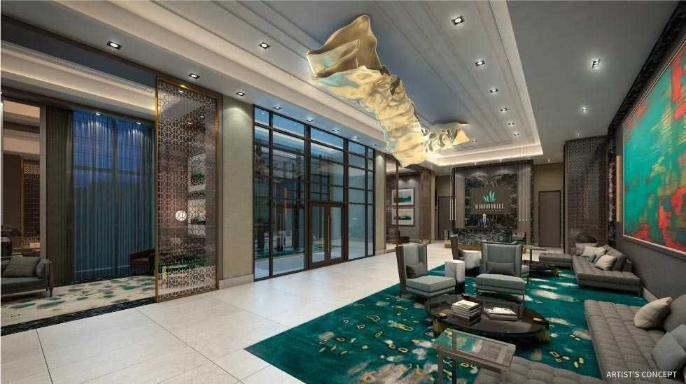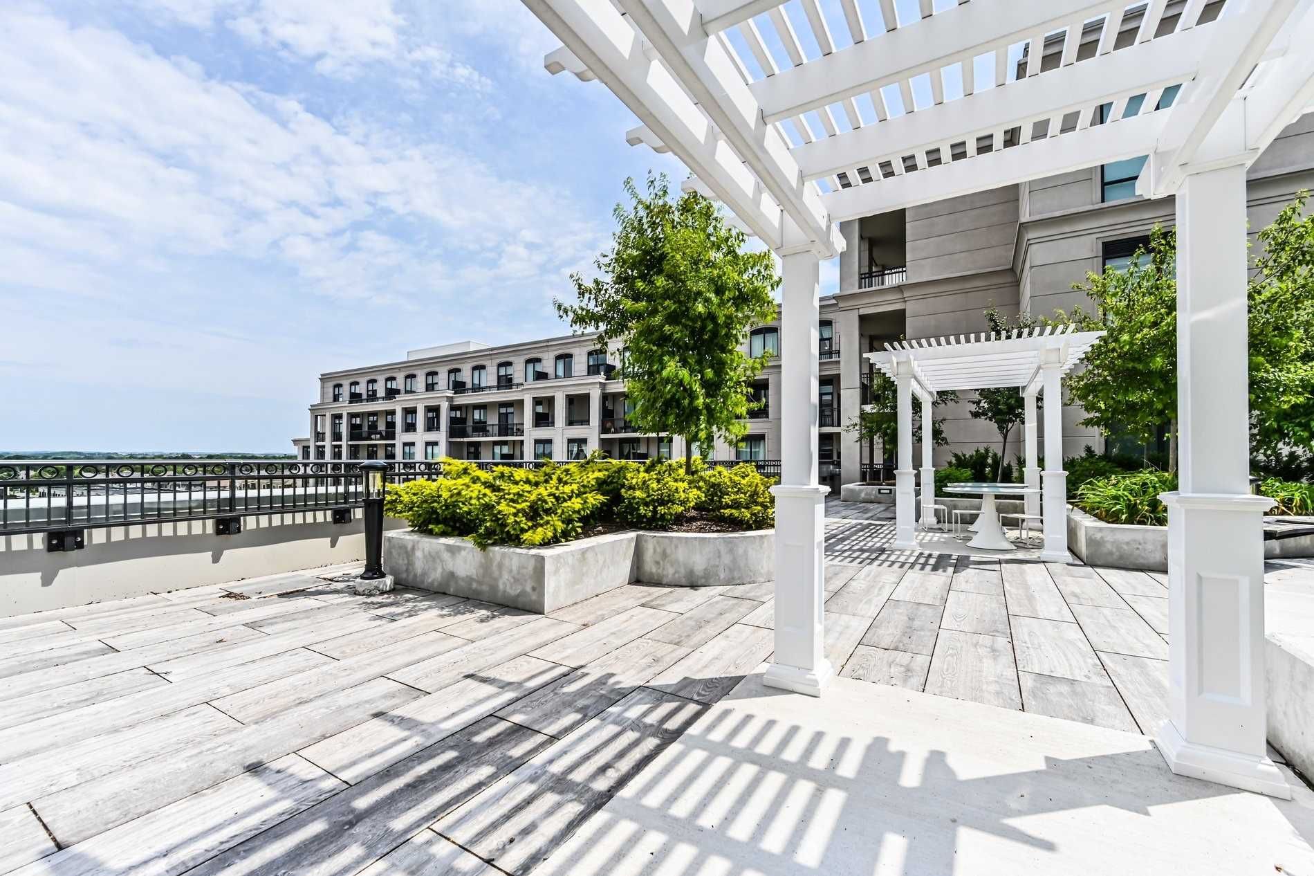 Rarely offered main floor 2 bedroom +den (den can be used as 3rd bed) ) 2 bathroom suite featuring approximately 900 sq ft of interior living space plus a 200 sq ft enclosed private patio in ultra luxury unionville gardens - perfect for outdoor relaxation or entertaining. Enjoy soaring 10 ft ceilings and convenient ground-level access with no elevator required. This west-facing unit is exceptionally quiet and filled with abundant natural light. Functional split-bedroom layout offers privacy, complemented by wide plank laminate flooring throughout. Spacious den is large enough to accommodate a double bed - ideal for a third bedroom, home office, or guest space. Located directly across from whole foods plaza and steps to transit for ultimate convenience. Luxury amenities include:indoor pool, hot & cold plunge pools, saunas, mahjong room, ping pong room,karaoke lounge, fully equipped gym, party room, yoga studio, library, sky deck with tai chi garden, and guest suites. Situated within top-ranked coledale public school and unionville high school district. Stock photos(unit has been freshly painted in designer color). Condo fees include water, heating, cooling, one locker, and one underground parking space. Perfect unit for empty nesters.