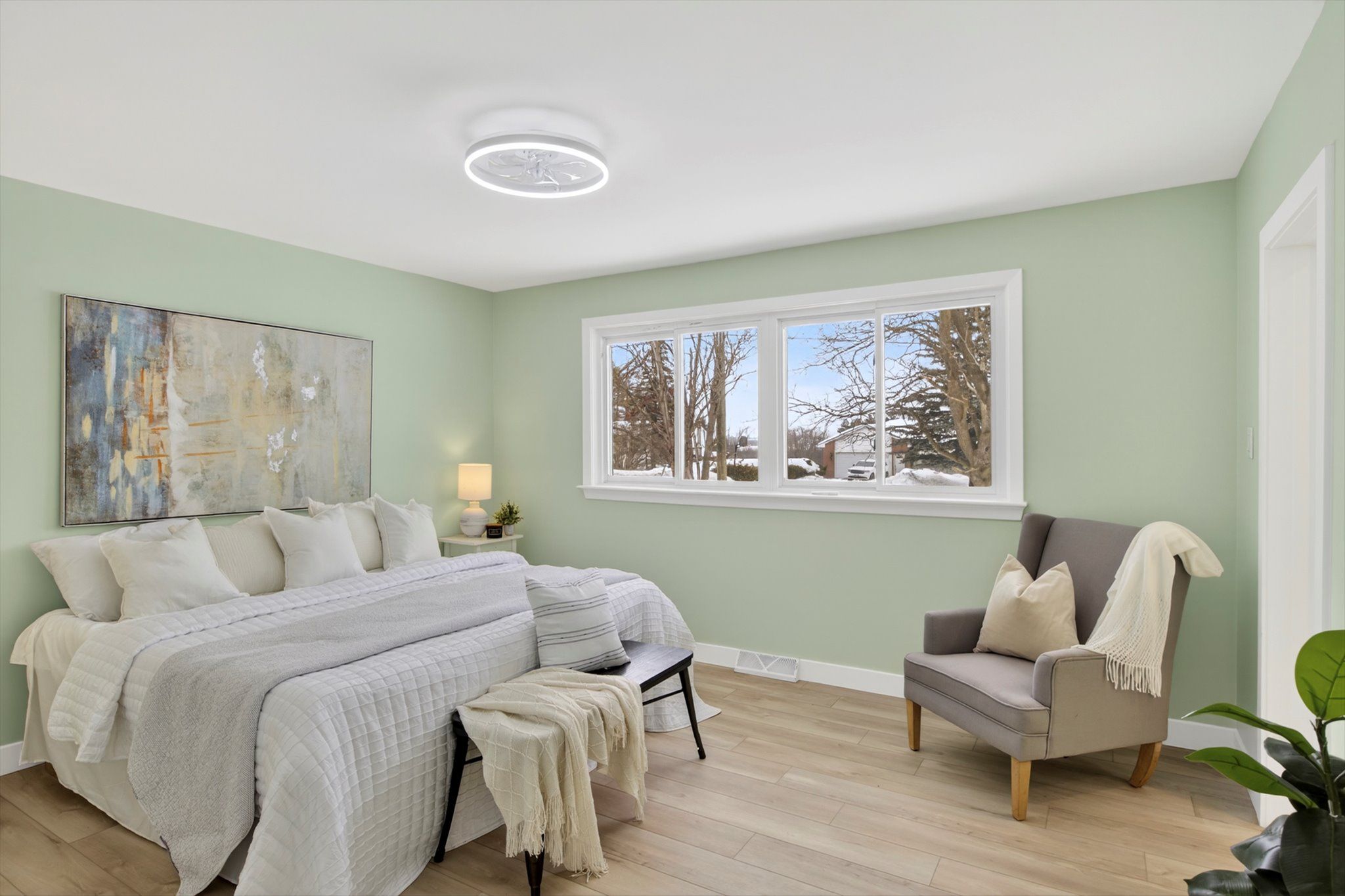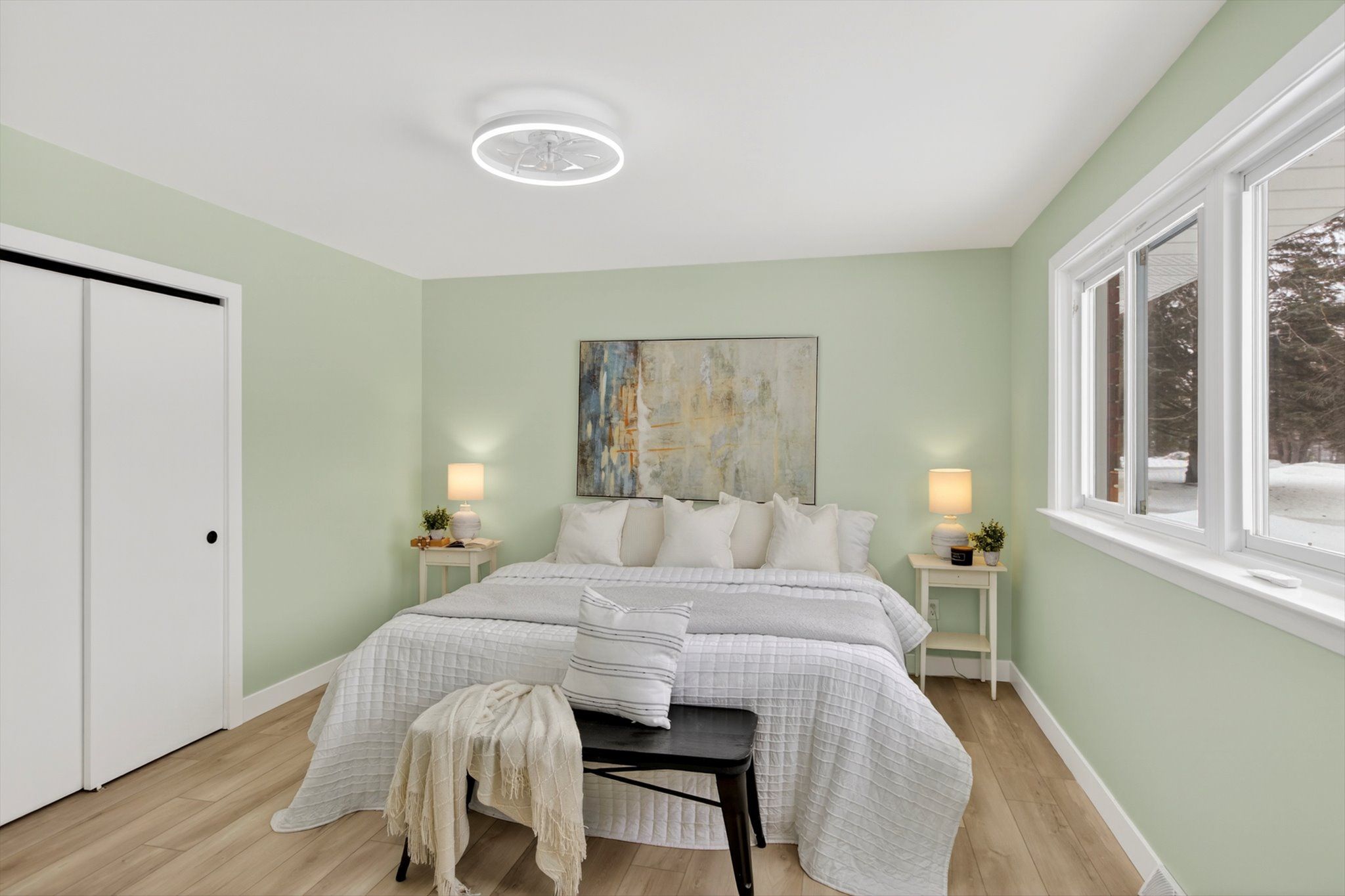 • Two renovated bathrooms offer convenience and a fresh look throughout.