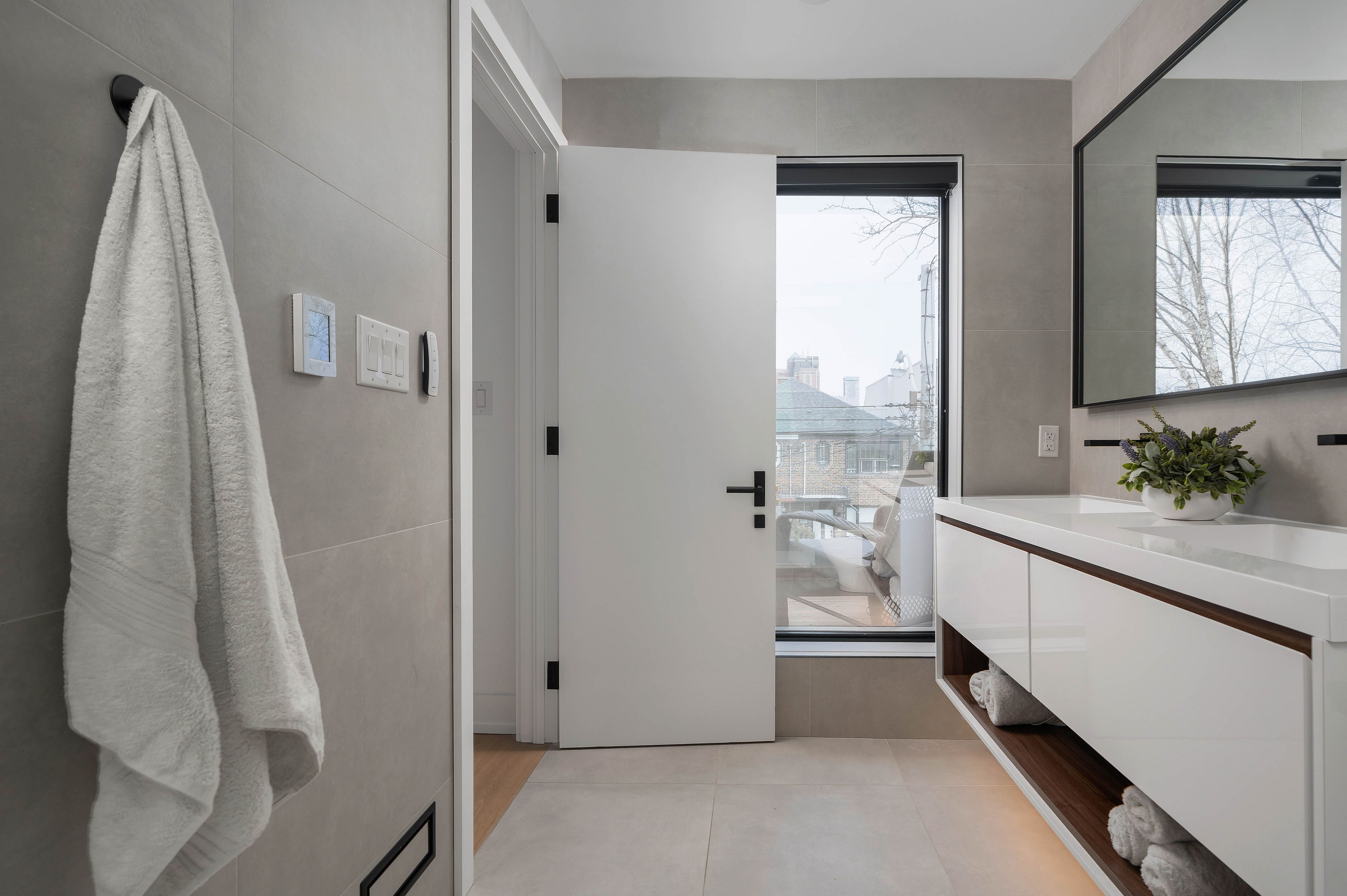 • Primary suite offers luxury features and private balcony with skyline views.