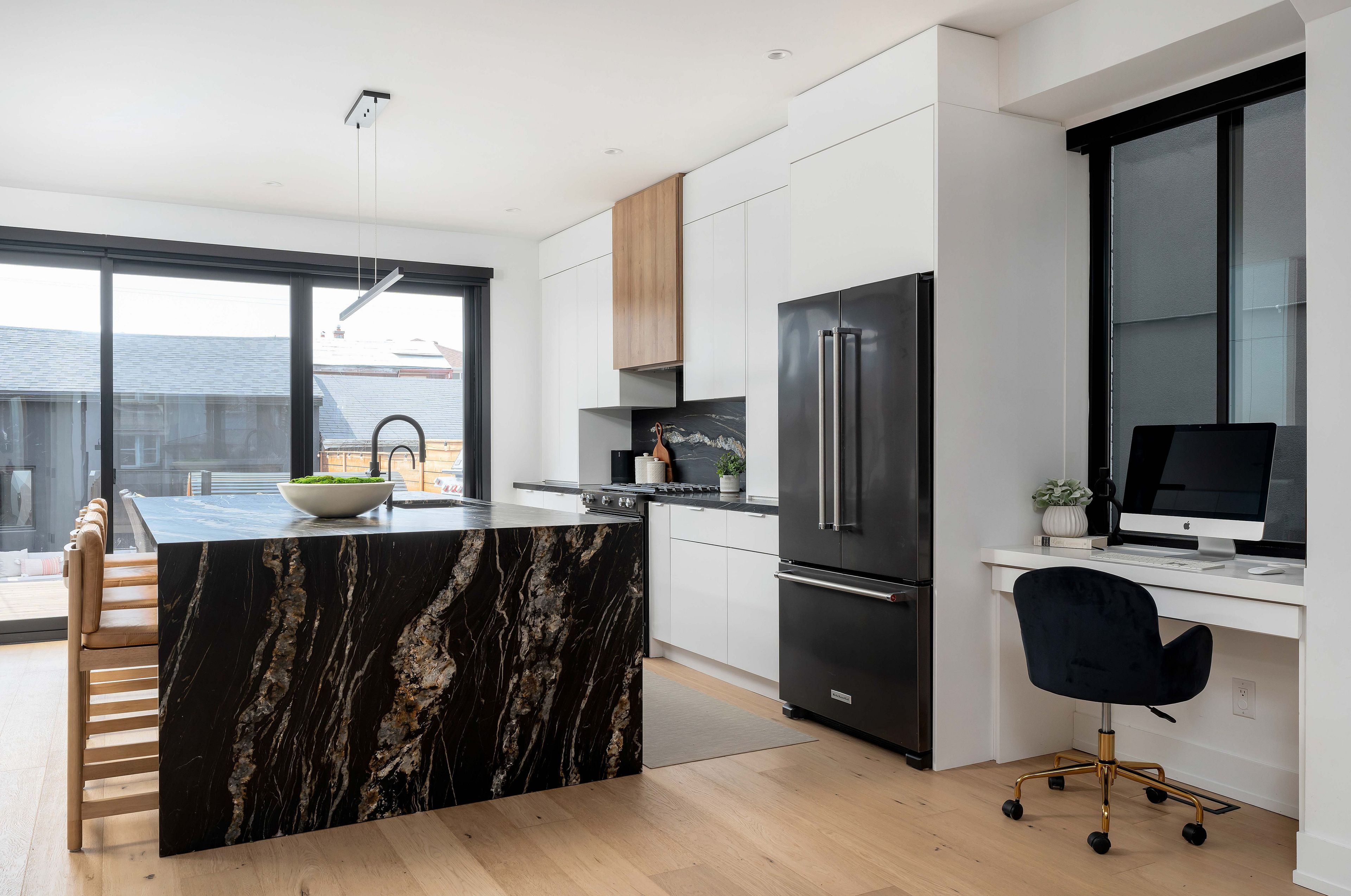 • Chef-inspired kitchen with premium appliances and wine/beverage fridge.