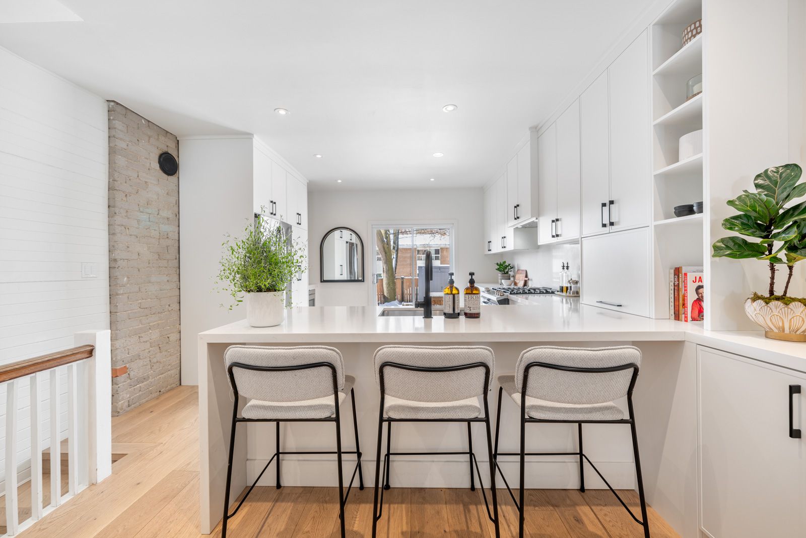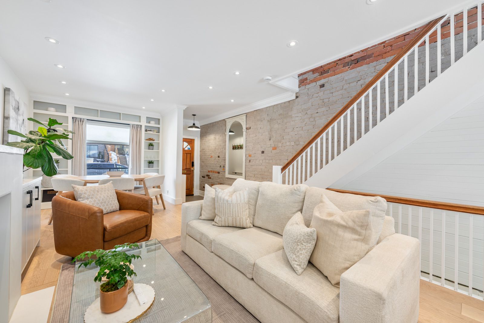 • Expansive open layout with lots of natural light and exposed brick accents.