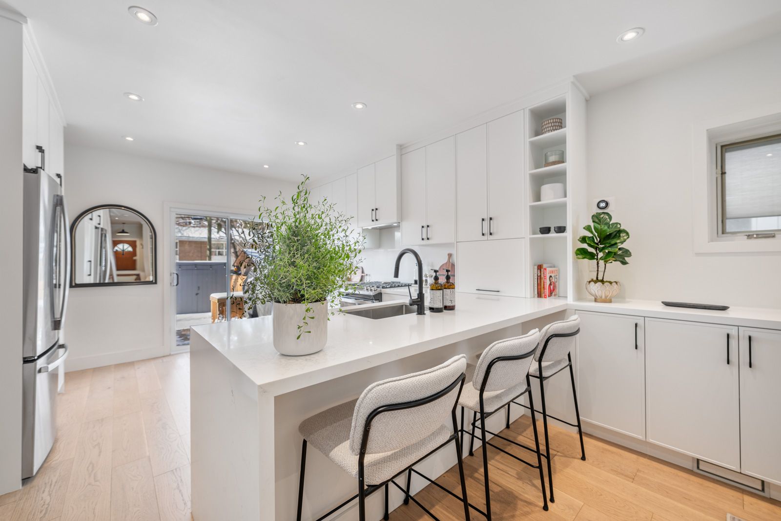 • Massive kitchen with an oversized bar and easy access to the backyard.