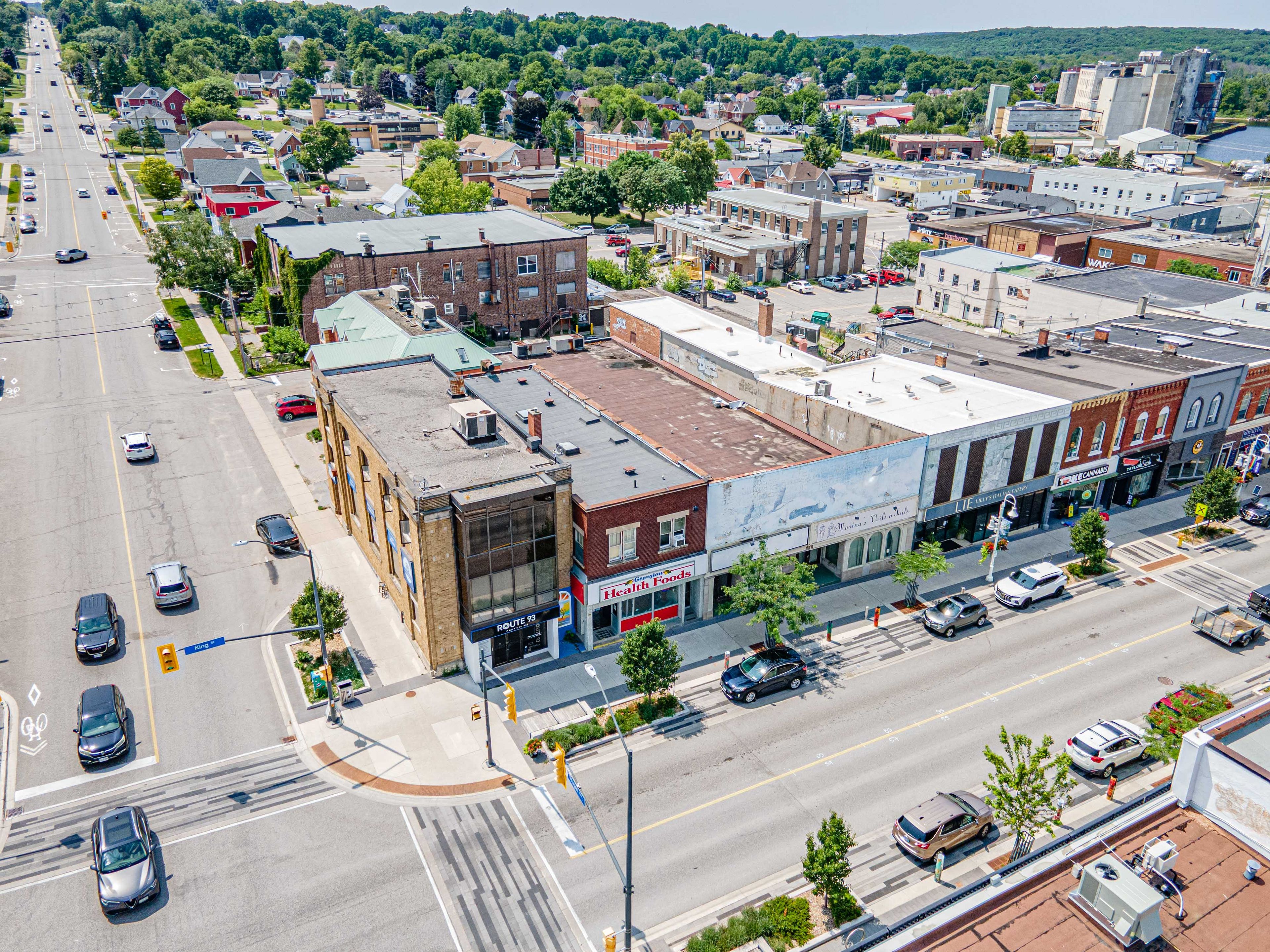 This fully-leased commercial building in downtown midland, located in the vibrant setting of georgian bay, presents an exceptional investment opportunity. The property comprises three units, with a main floor housing a thriving health food store and two residential units above. These apartments include a spacious 3-bedroom, 2-bathroom unit and a comfortable 2-bedroom, 2-bathroom unit, ensuring a diverse and stable rental income stream. With its current rents and long-term lease agreements, this property offers a compelling return on investment that is expected to endure for years to come. The building enjoys prominent visibility along king st and access from hugel ave, attracting high volumes of both drive-by and walk-in traffic. Its strategic location in the heart of the downtown core positions it for continued growth and success. Furthermore, the recent complete renewal of the streetscape in 2020 by the town of midland enhances the property's appeal and value. This, coupled with midland's reputation as a fast-growing and picturesque town, makes this property a highly desirable asset for any investor looking for long-term rental income in a thriving community.