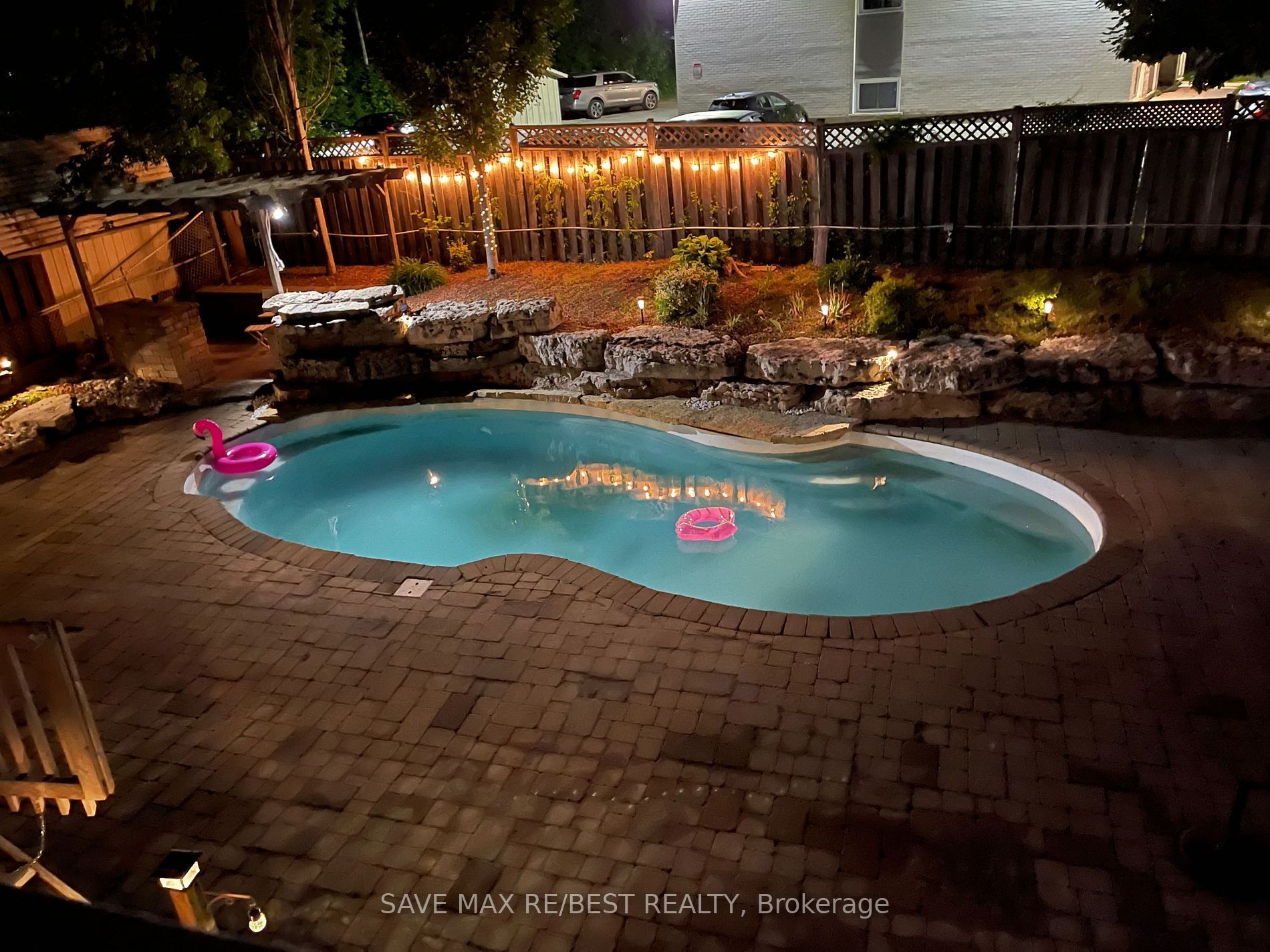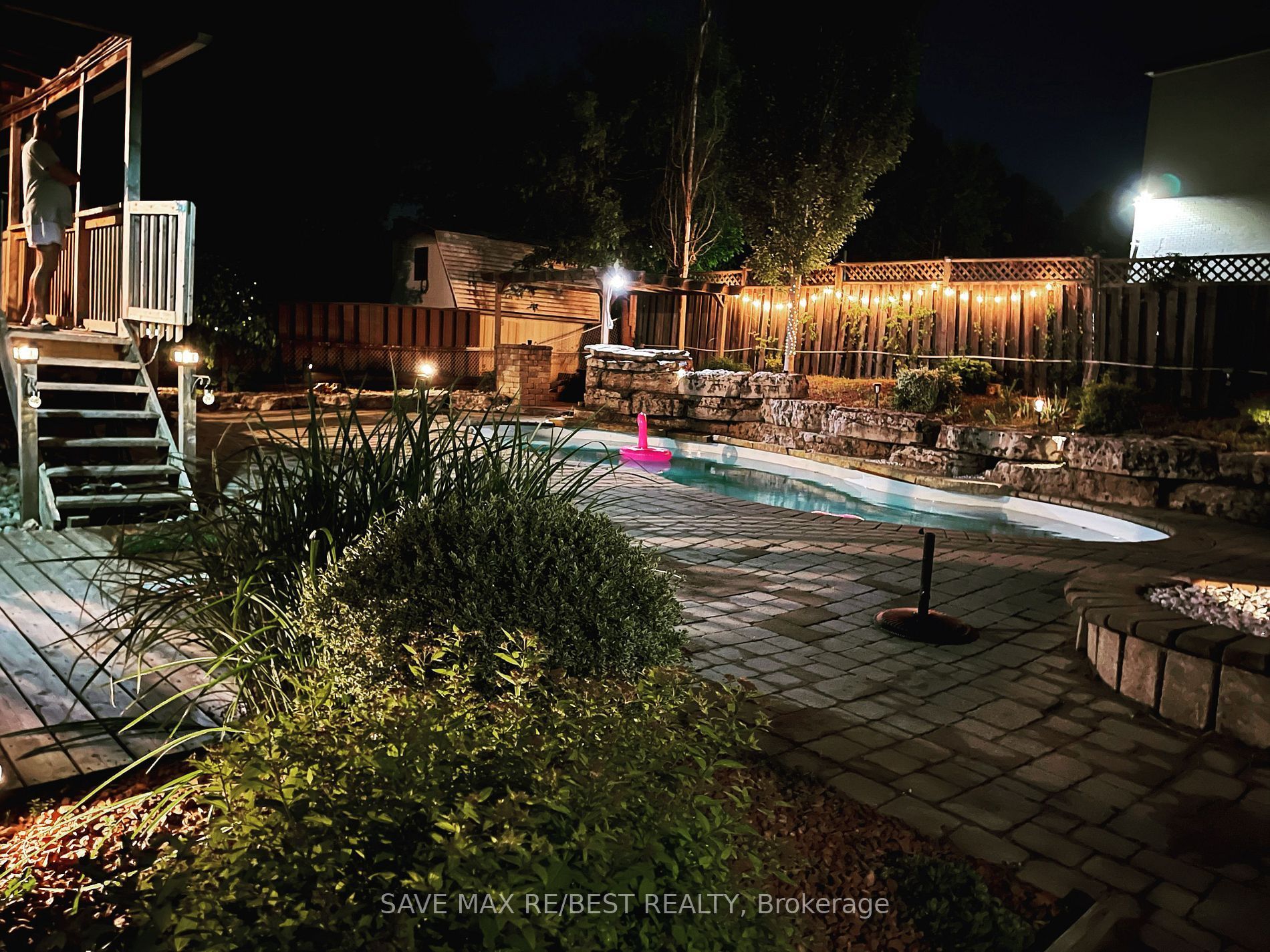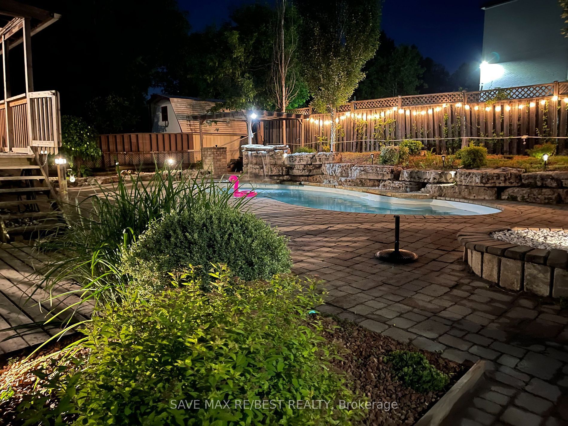Beautiful sidesplit home with 4 bedrooms and 3 bathrooms in kitchener! This property is a dream for entertainers! It features stunning landscaping in the front yard and a backyard oasis complete with an inground pool, bbq area, and a spacious multi-level deck. The home offers 1,750 square feet of open-concept living space above ground, a modern kitchen, and three gas fireplaces. The basement includes a laundry room, storage room, and a large yet cozy recreation room with a fireplace. Additional features include a water softener and reverse osmosis system.