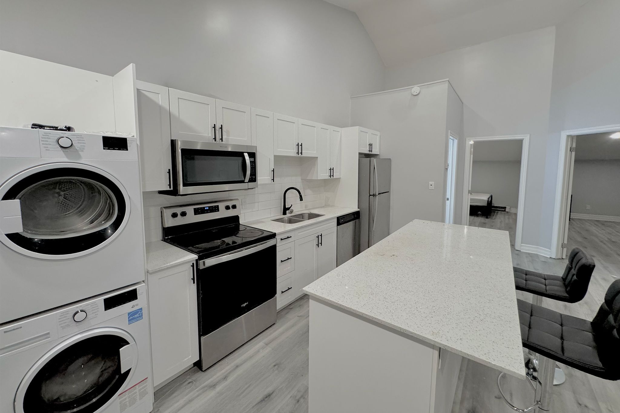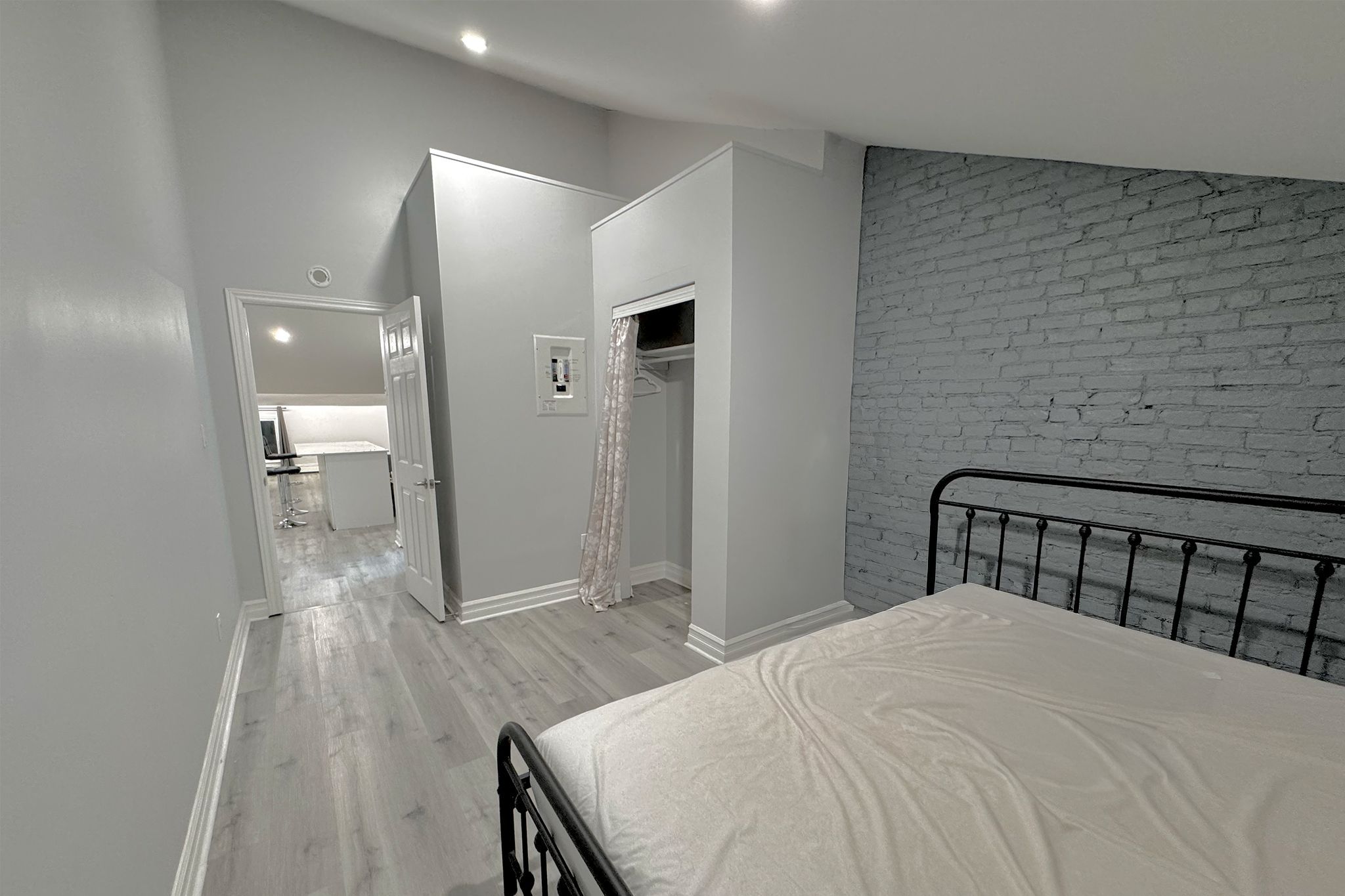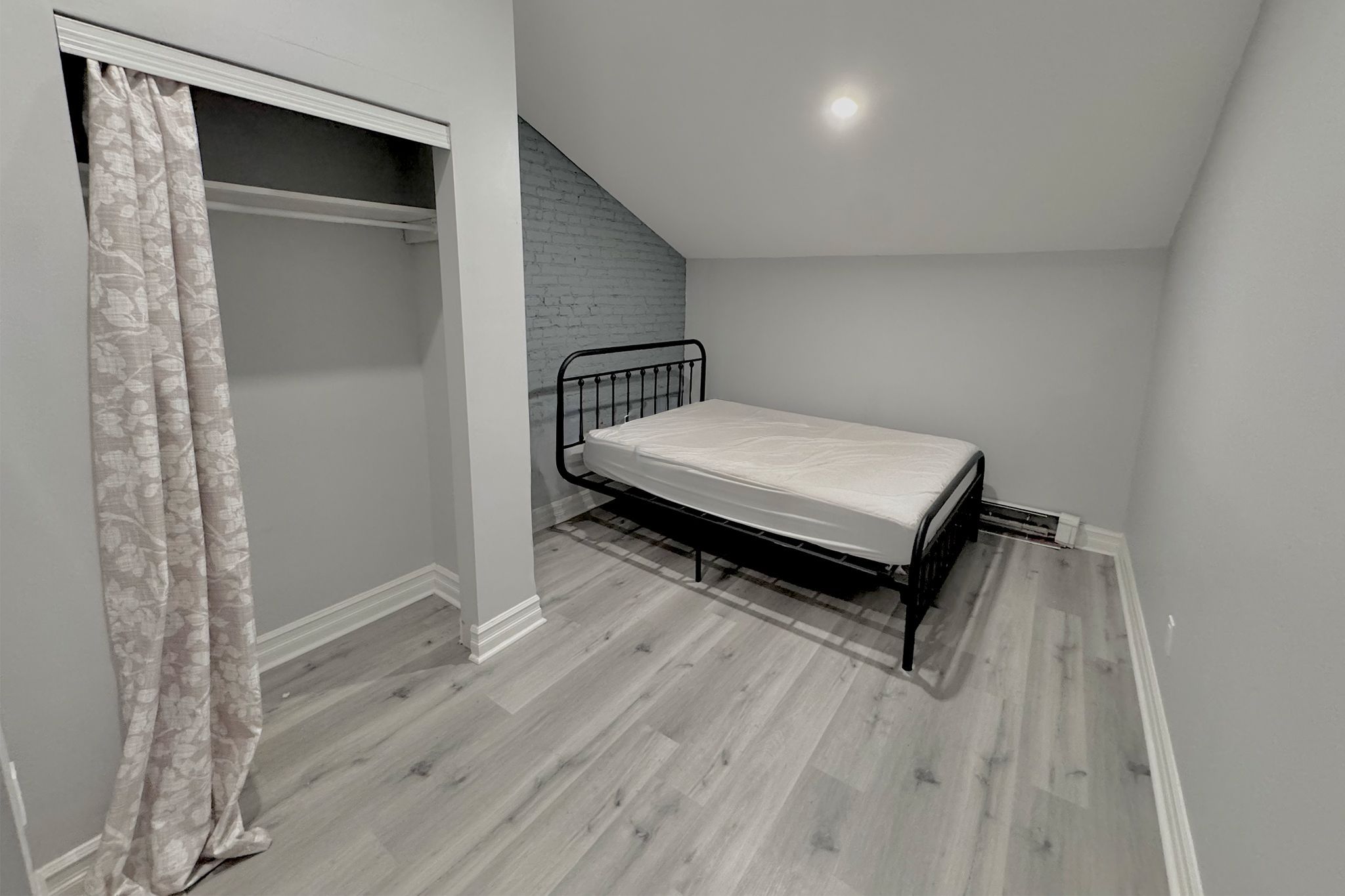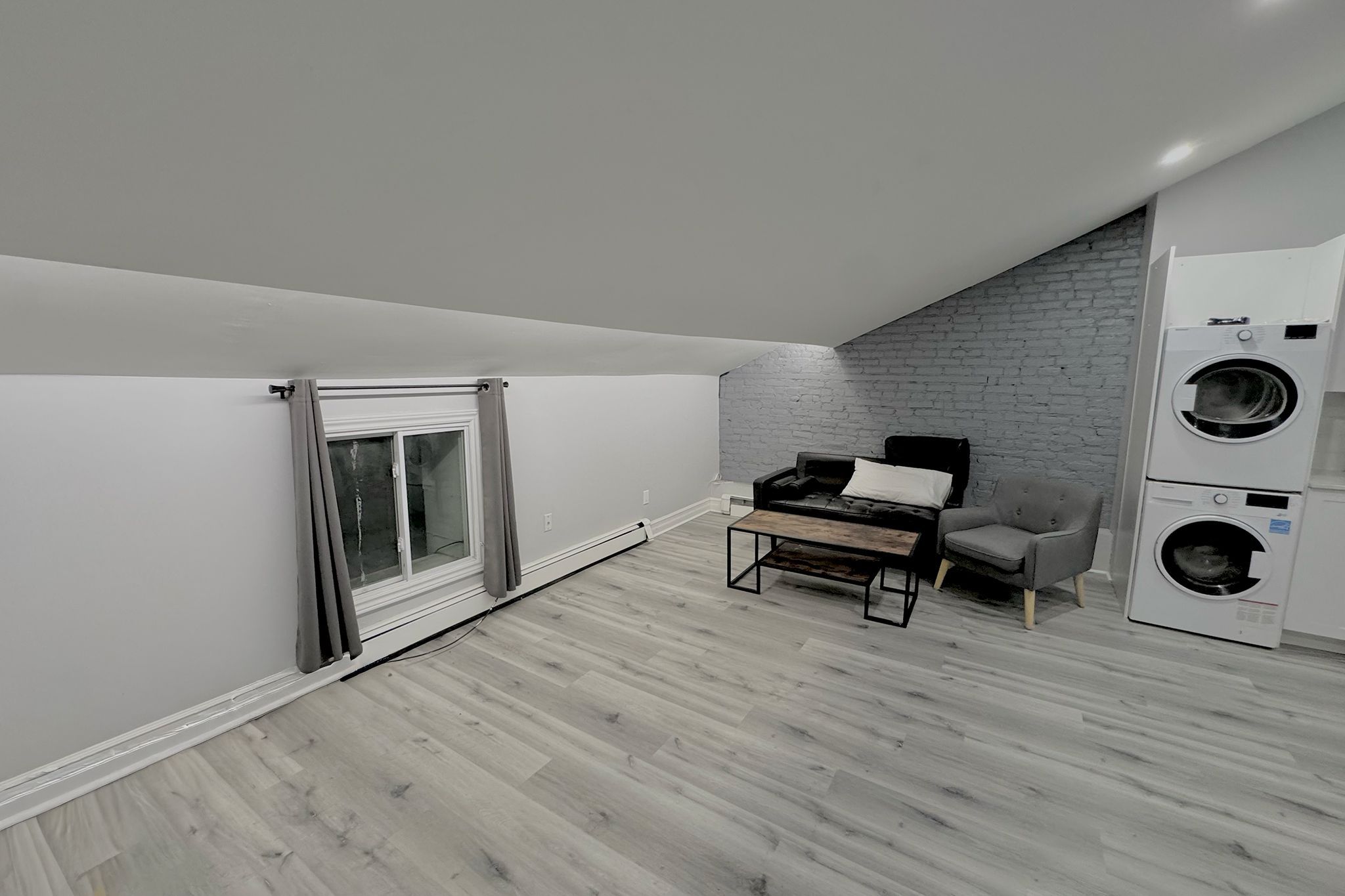 Fully renovated penthouse style apartment offering modern all-inclusive living in the heart of downtown st. Thomas. This top-floor 2-bedroom, 1-bath unit in a 3-storey walk-up features soaring vaulted ceilings over 20 feet in areas, creating an incredible sense of space and light. The open-concept layout is highlighted by a sleek kitchen with a large quartz island and stainless steel appliances, including a dishwasher and over-the-range microwave. Spacious bedrooms, large closets and updated lighting. Generous living and dining areas make it perfect for entertaining, while in-unit laundry adds everyday convenience. One off-site parking space included. Tenant to install ac unit if needed. Advertised price already includes a $100/m discount for 1 year only.