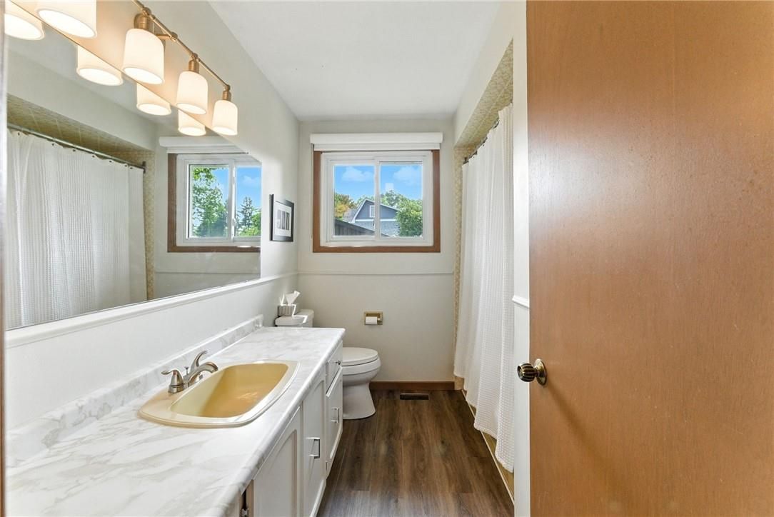Nestled in the heart of the picturesque community of jerseyville, this charming raised ranch delivers the serenity of rural living just minutes from city amenities. Backing directly onto jerseyville park, you'll enjoy a playground and open fields right outside your back gate, perfect for family fun. The scenic rail trail is steps away, offering the ideal spot for morning jogs, weekend bike rides, or peaceful evening walks. Inside, this well-maintained home features an inviting l-shaped living and dining room, complemented by a bright, sun-filled eat-in kitchen. Three generous bedrooms provide ample space for family or guests. The lower level is a true highlight, boasting a spacious recreation room with a cozy gas fireplace and oversized windows that let in plenty of natural light. A convenient two-piece bath and an additional room make the perfect home office, hobby space, or playroom. Step outside to your private backyard, surrounded by lush perennial gardens, mature trees, and a gently meandering lot that offers beauty in every season. Whether you're hosting backyard bbqs with family and friends or unwinding after a long day, this space is perfect for both entertaining and relaxing. All this, just minutes from ancaster, brantford, and quick highway access, making your commute a breeze.