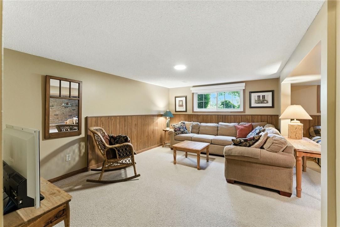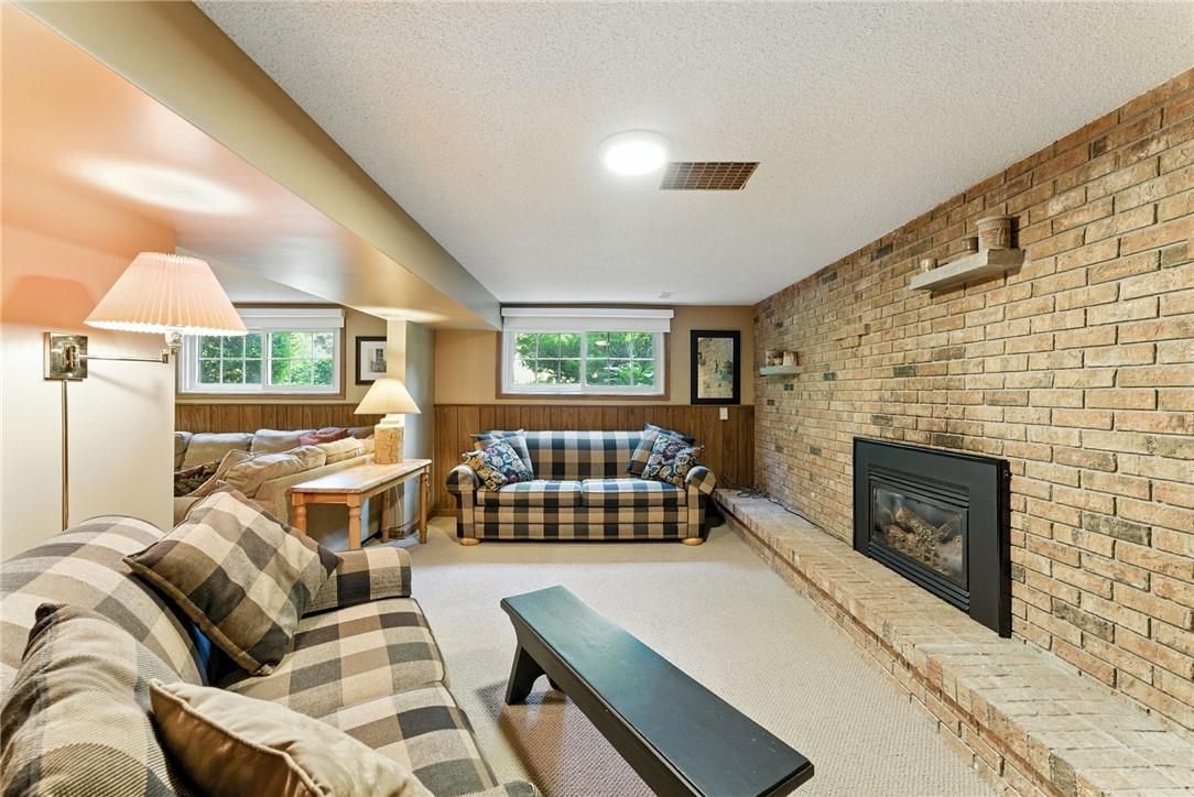 • Spacious lower level recreation room with cozy gas fireplace and natural light.