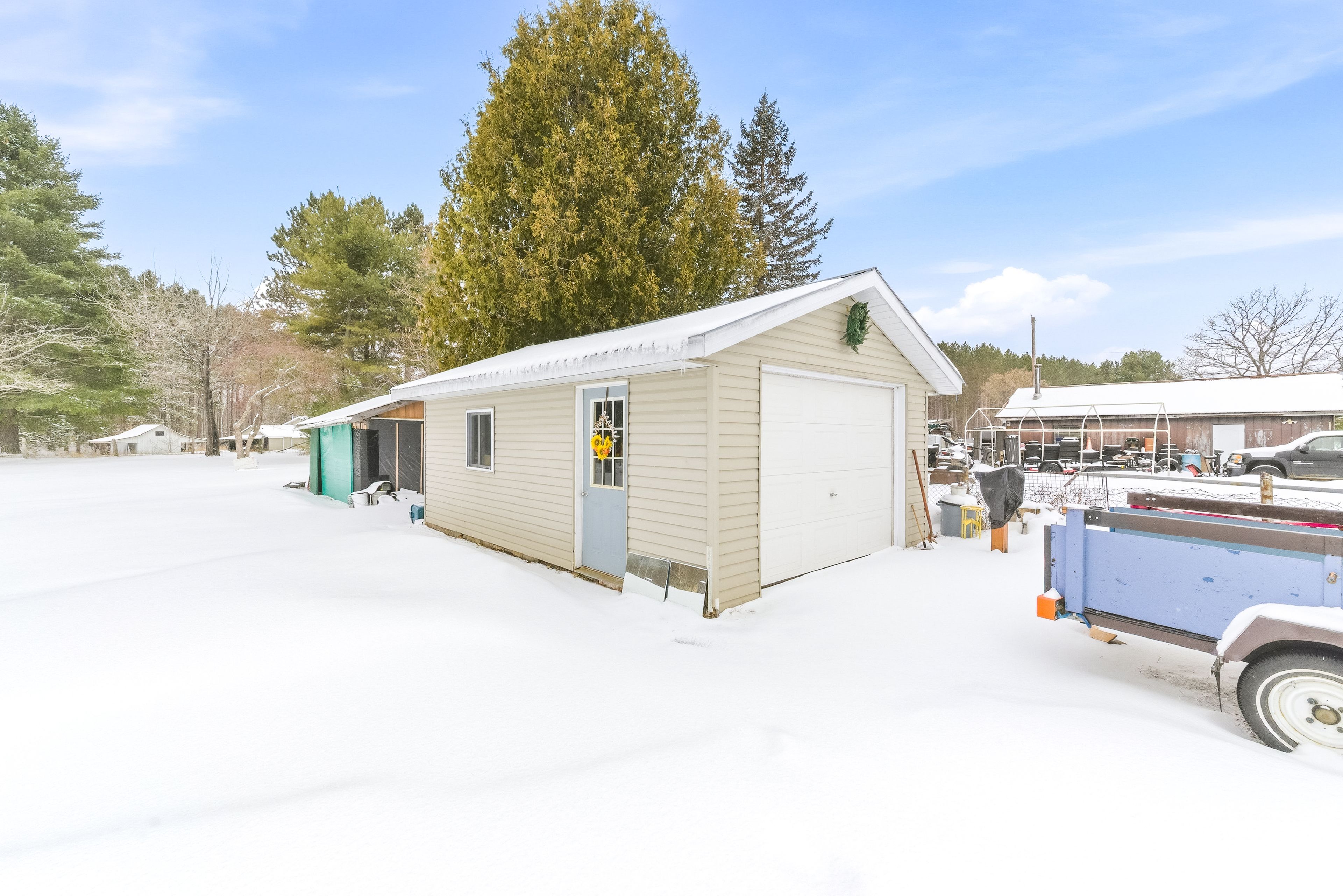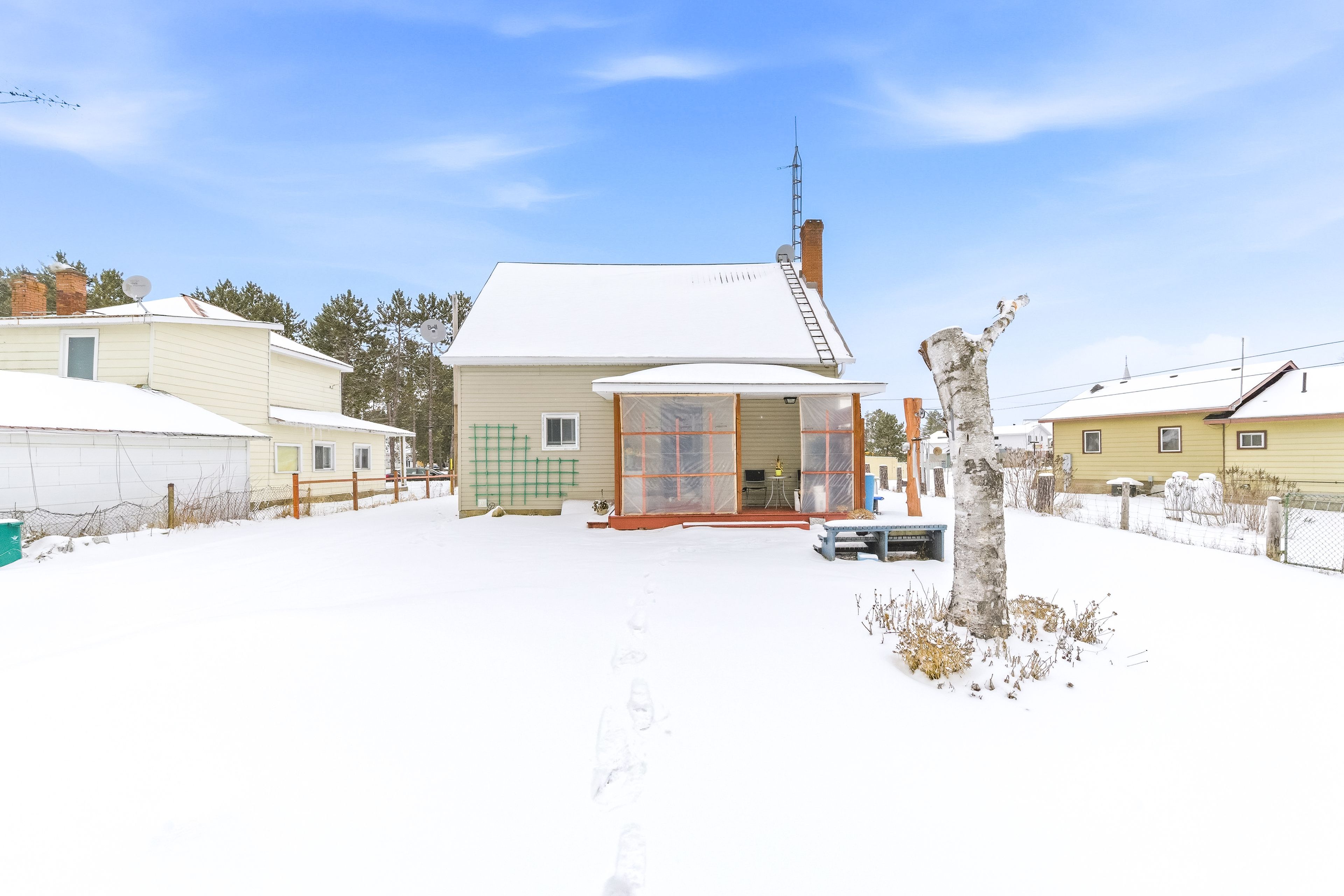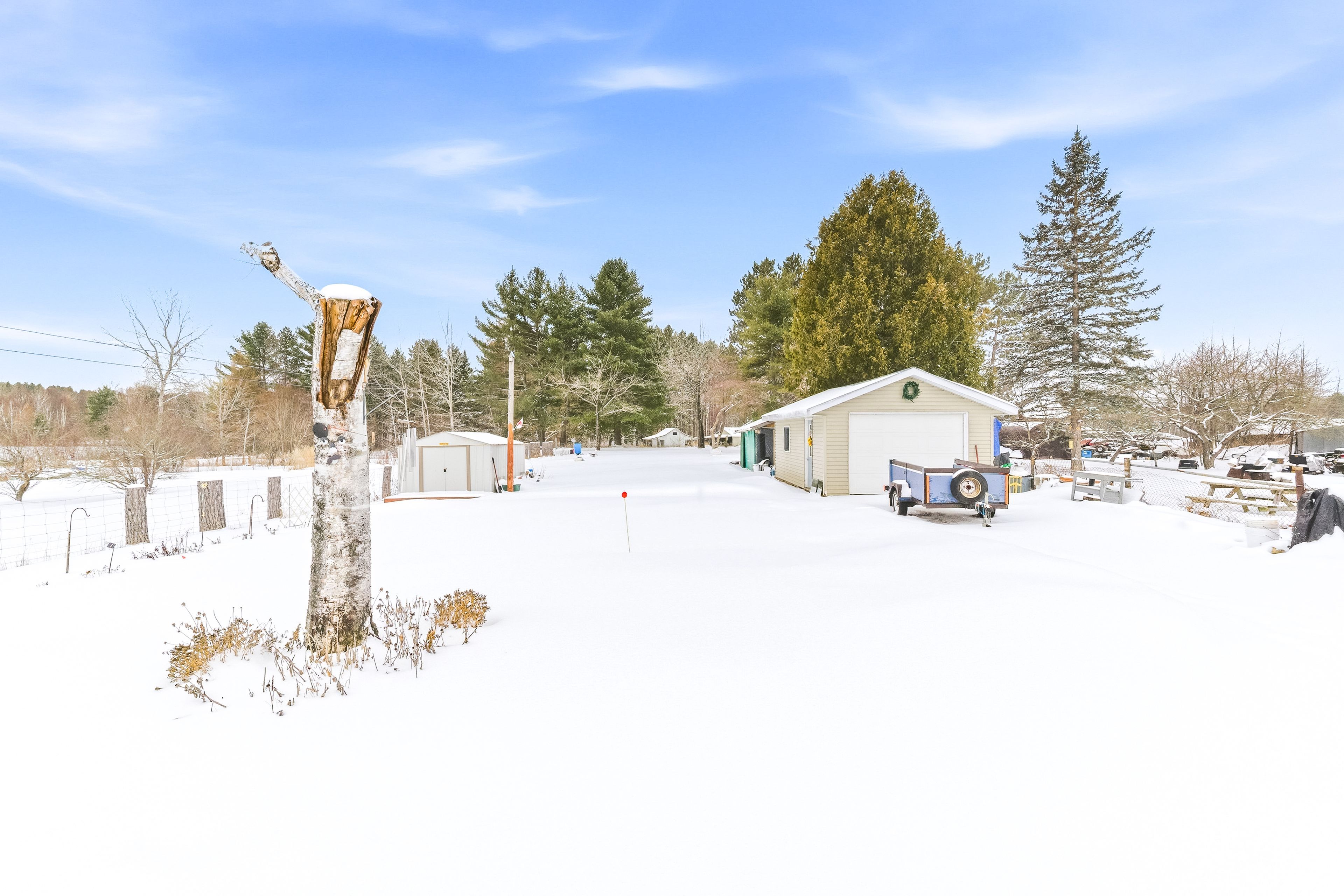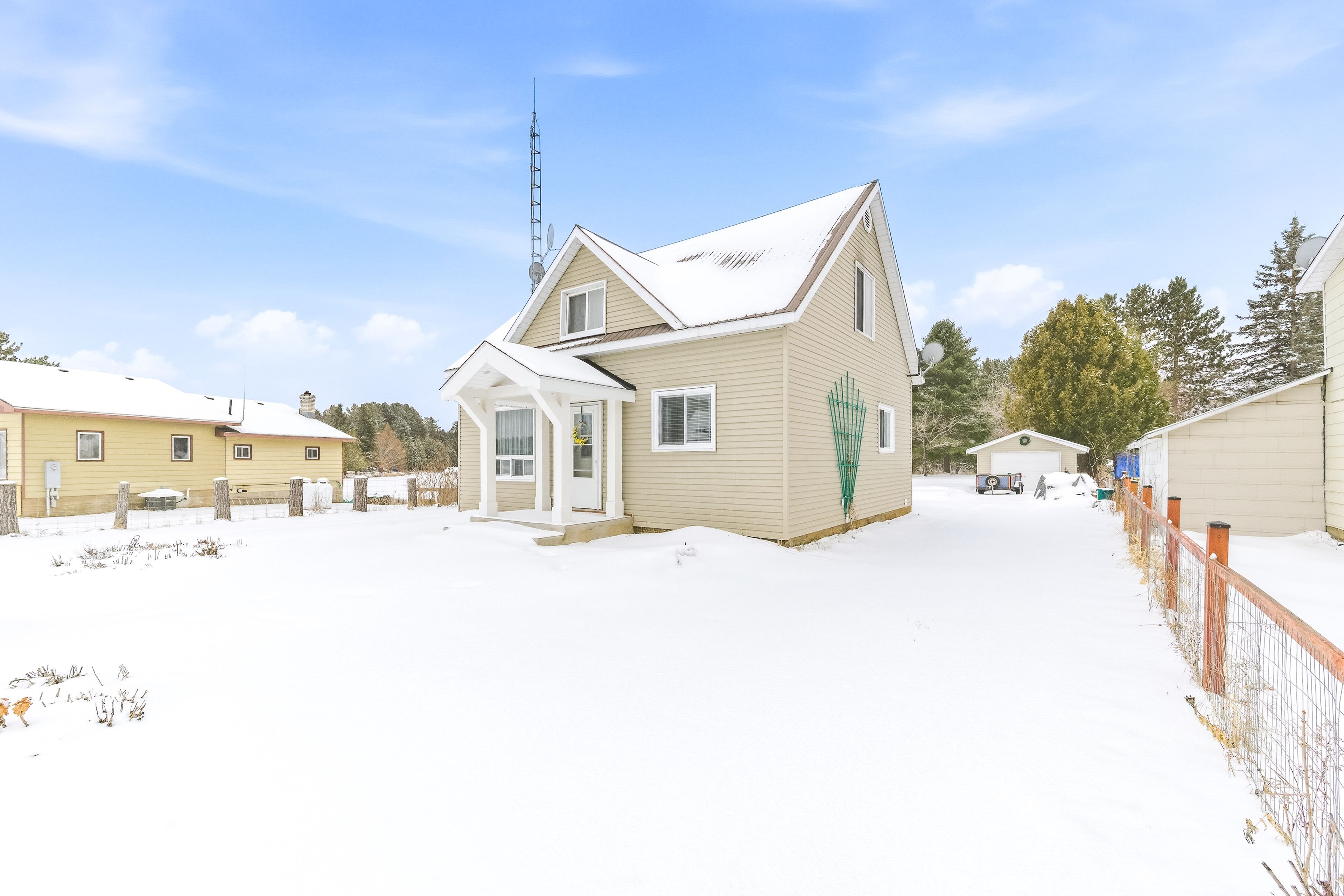 Welcome to life in the heart of round lake centre. This inviting home sits on a level, beautifully maintained lot with established gardens, a peaceful backyard patio, and a walking path that leads to a little pond - perfect place to raise a family. Outside, you'll appreciate the detached garage, additional storage building, and plenty of space to enjoy the outdoors. Unwind by the water using the dock and paddleboat, or take a short stroll down to the local store and public boat launch on round lake. Inside, the home features a bright open-concept kitchen, dining, and living area, creating a welcoming space for everyday living and entertaining. The primary bedroom and full bathroom are conveniently located on the main level, along with a family room that could easily be converted back into an additional bedroom if desired. The home is well equipped for year-round comfort with a wood stove, forced air propane furnace, central air conditioning, on-demand hot water, and a backup generator for added peace of mind. The upper level provides even more living space along with a second bedroom, making it ideal for family or guests. With its walkable village location, functional layout, and beautiful outdoor setting, this property is a wonderful opportunity to enjoy the laid-back lifestyle round lake is known for.