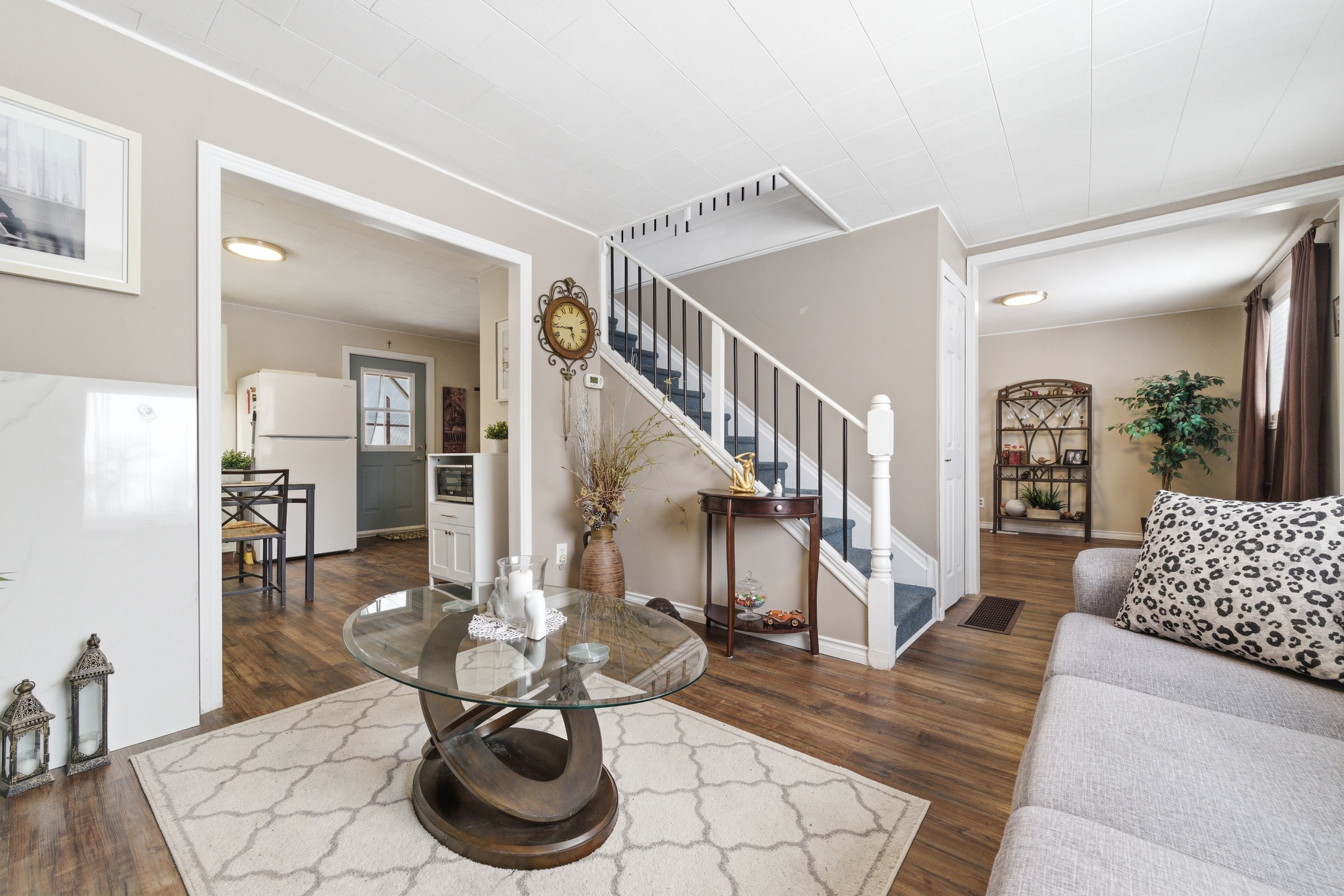 • Bright open-concept space for kitchen, dining, and living areas.