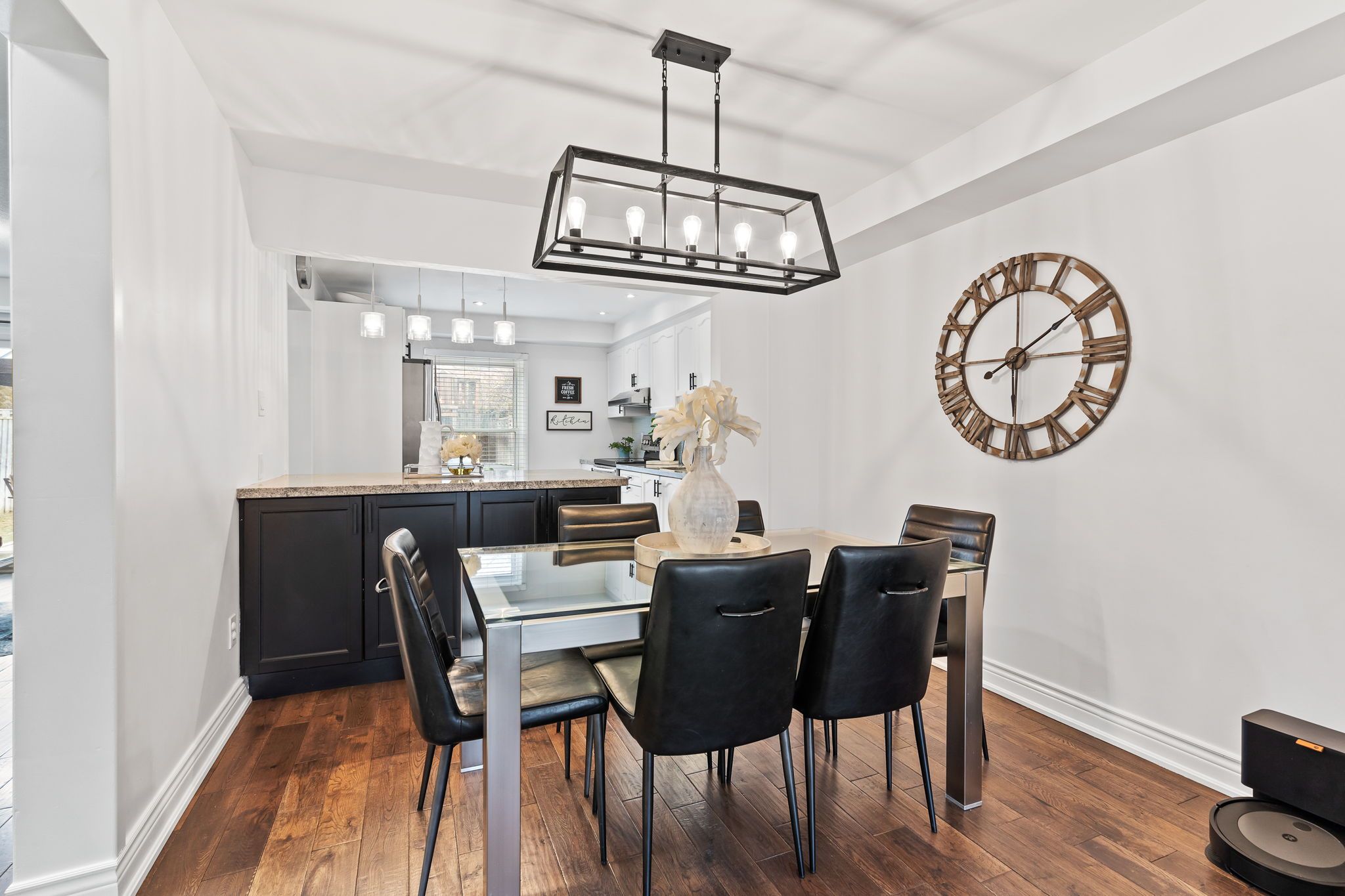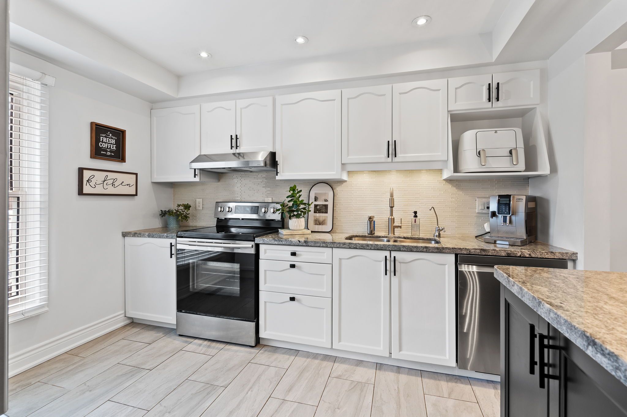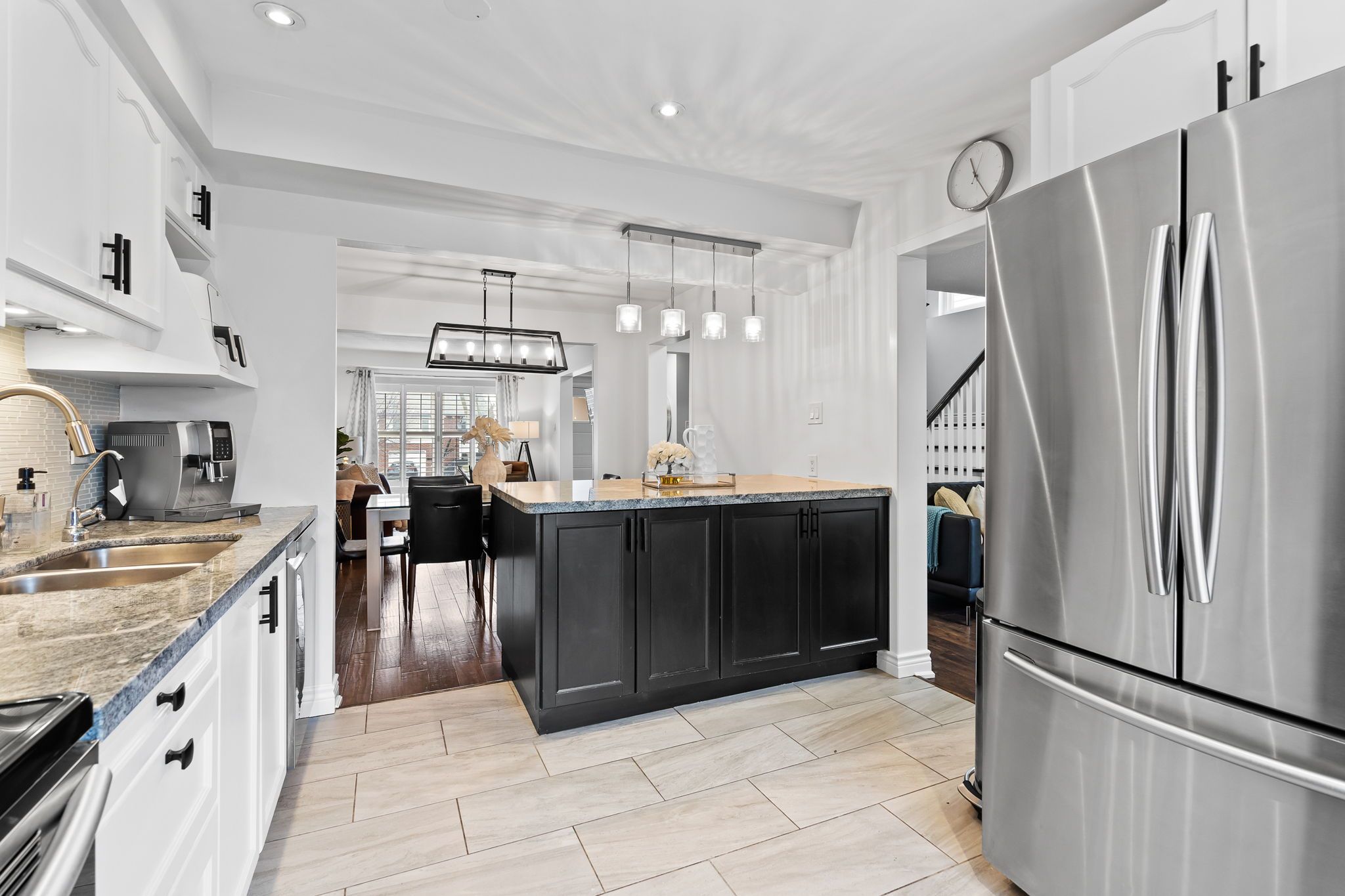 • Updated kitchen with large island and stainless steel appliances.