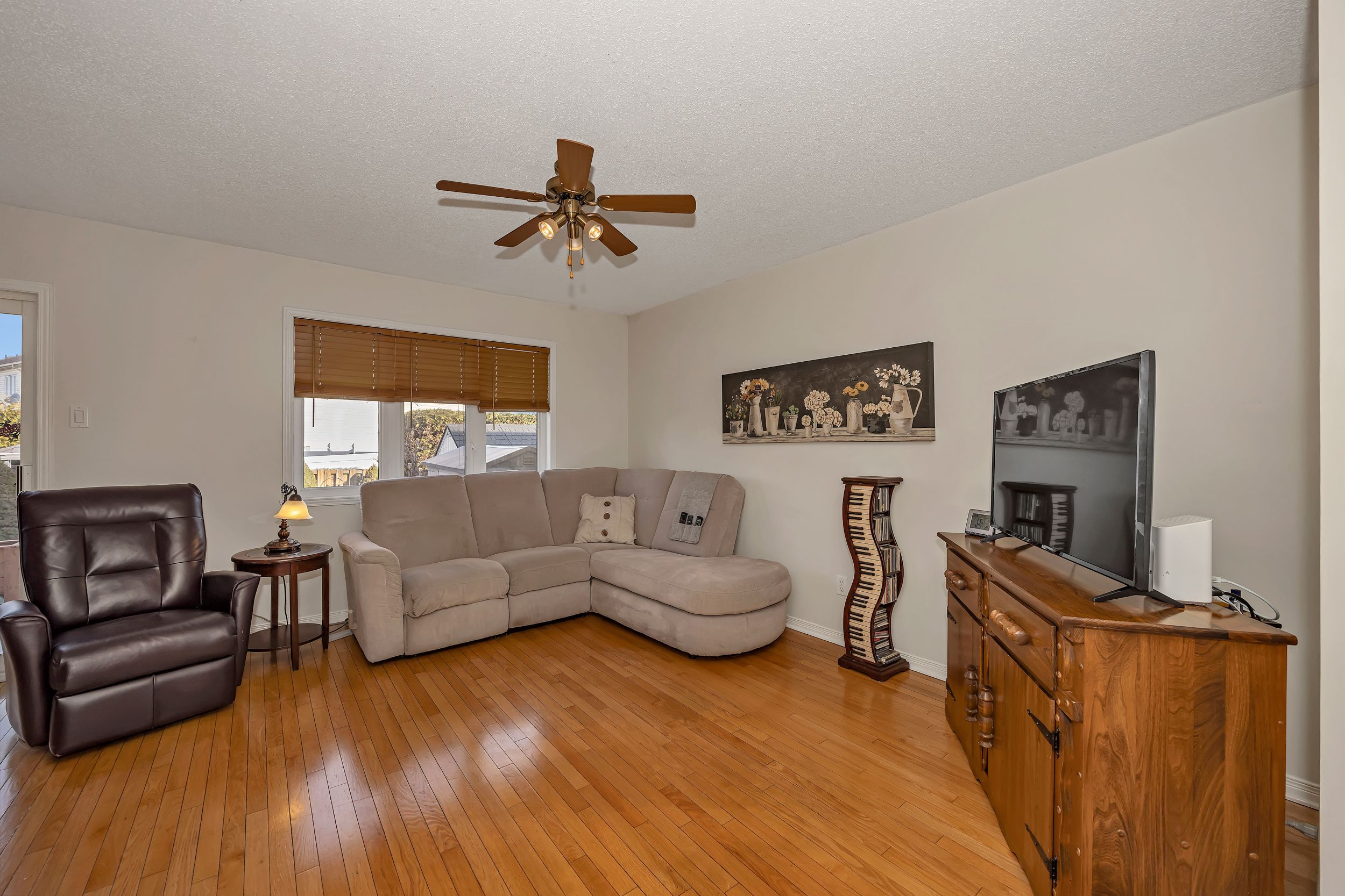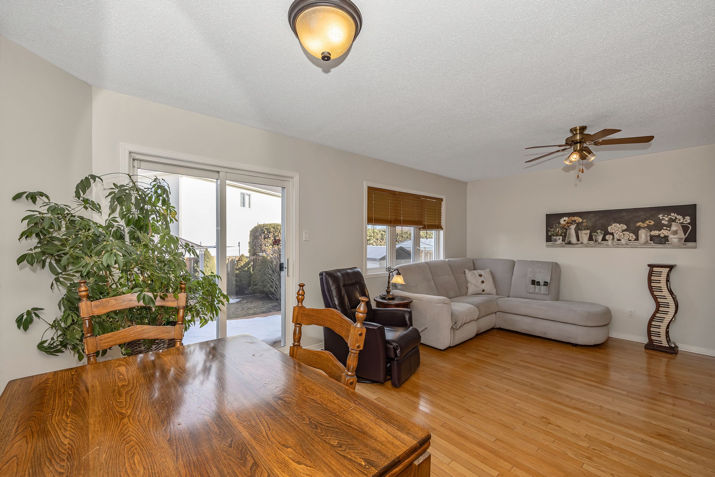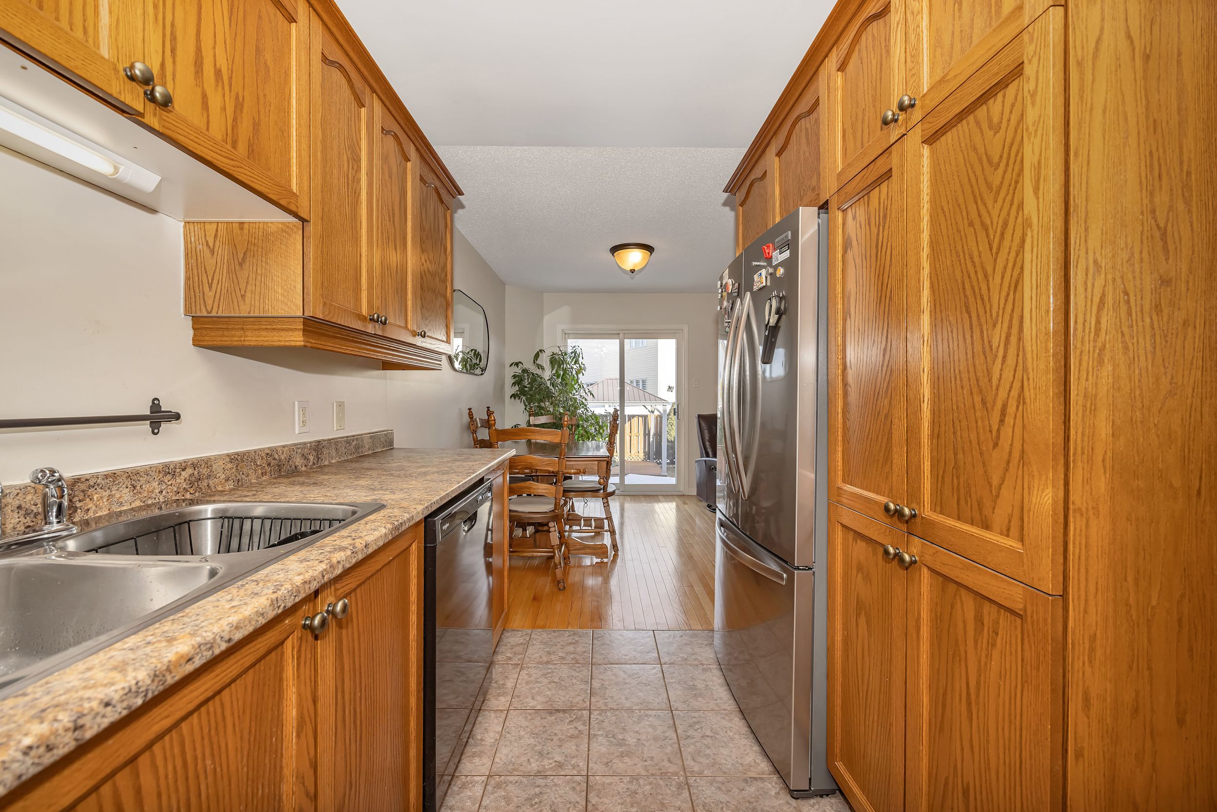 • Open-concept main floor with hardwood and ceramic flooring.