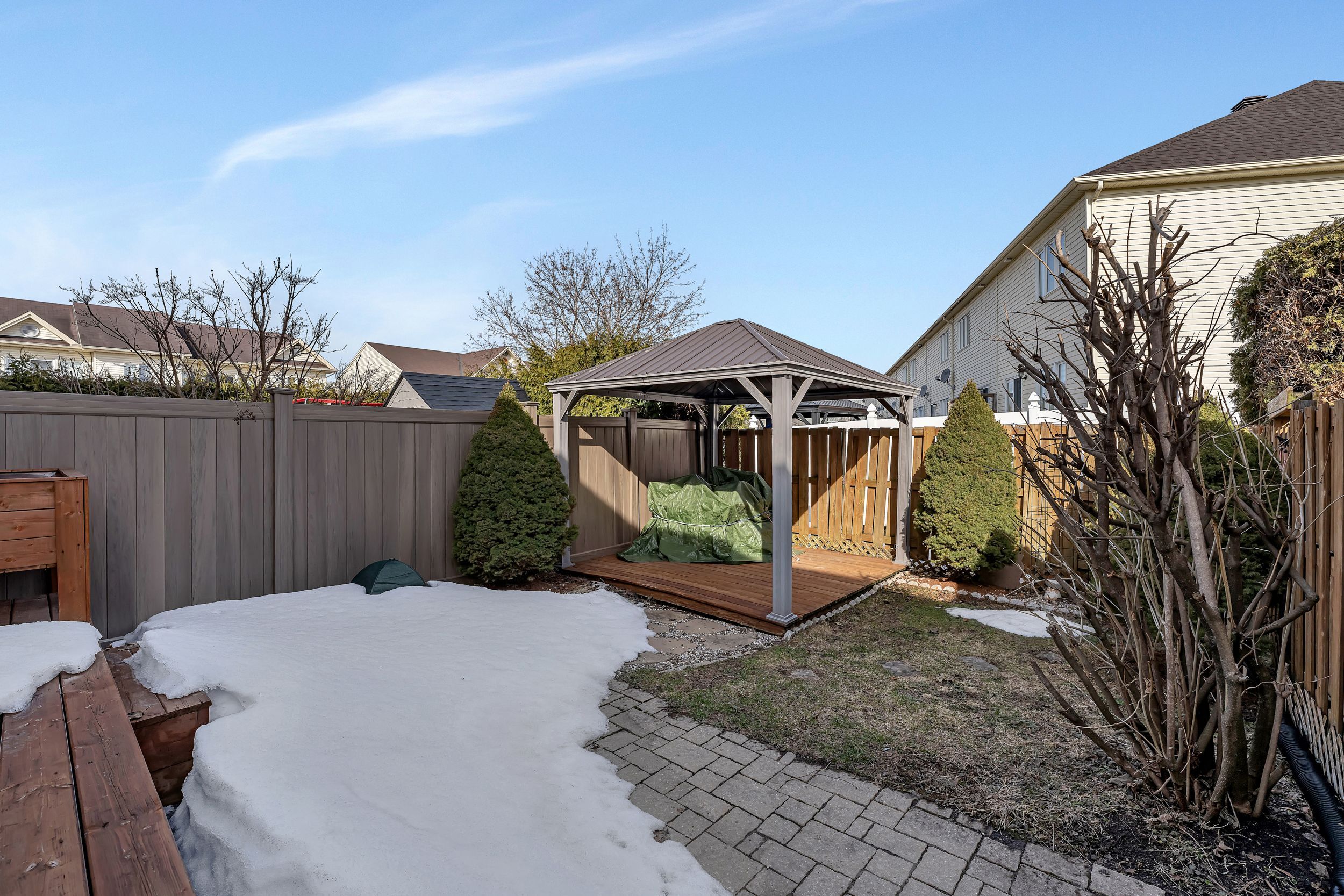 • Large deck and fenced backyard with a gazebo for outdoor enjoyment.