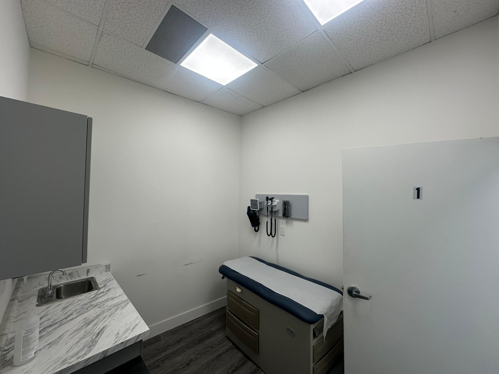 • Multiple private exam rooms equipped with sinks and plumbing.