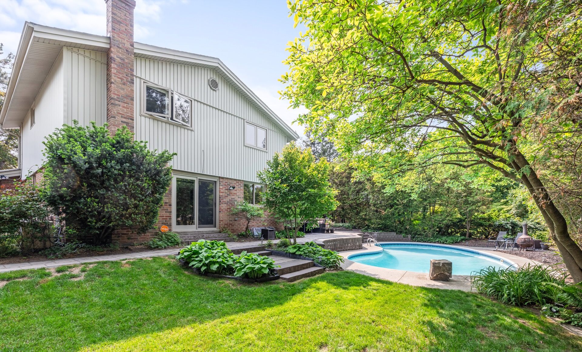 • Backyard oasis with an in-ground saltwater pool and lush gardens.