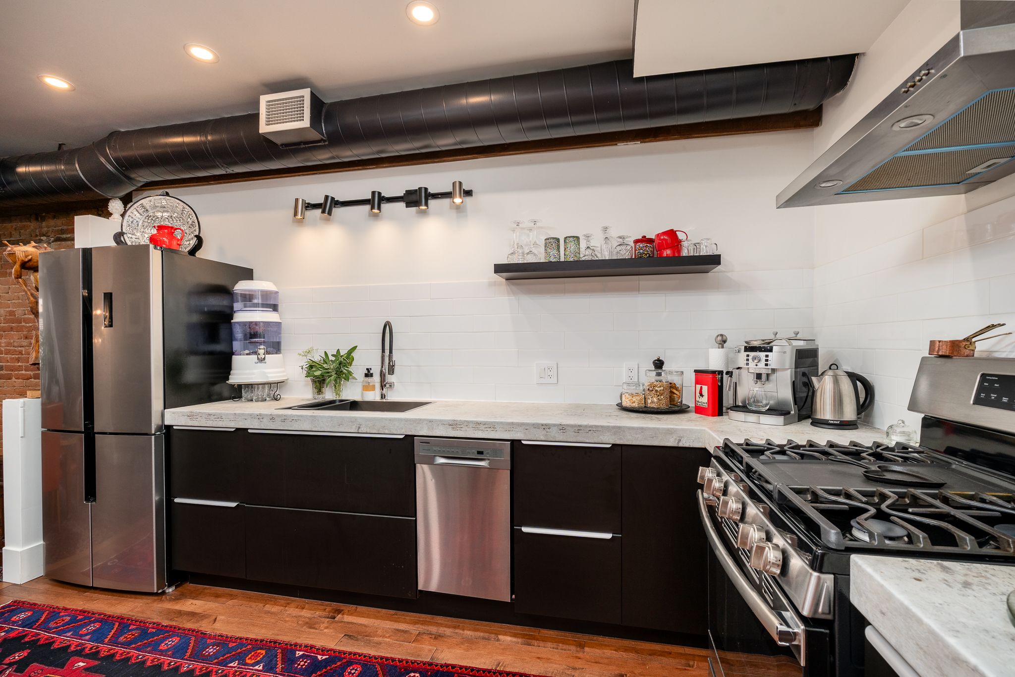 • Stylish two-level residential loft with open-concept living and urban charm.