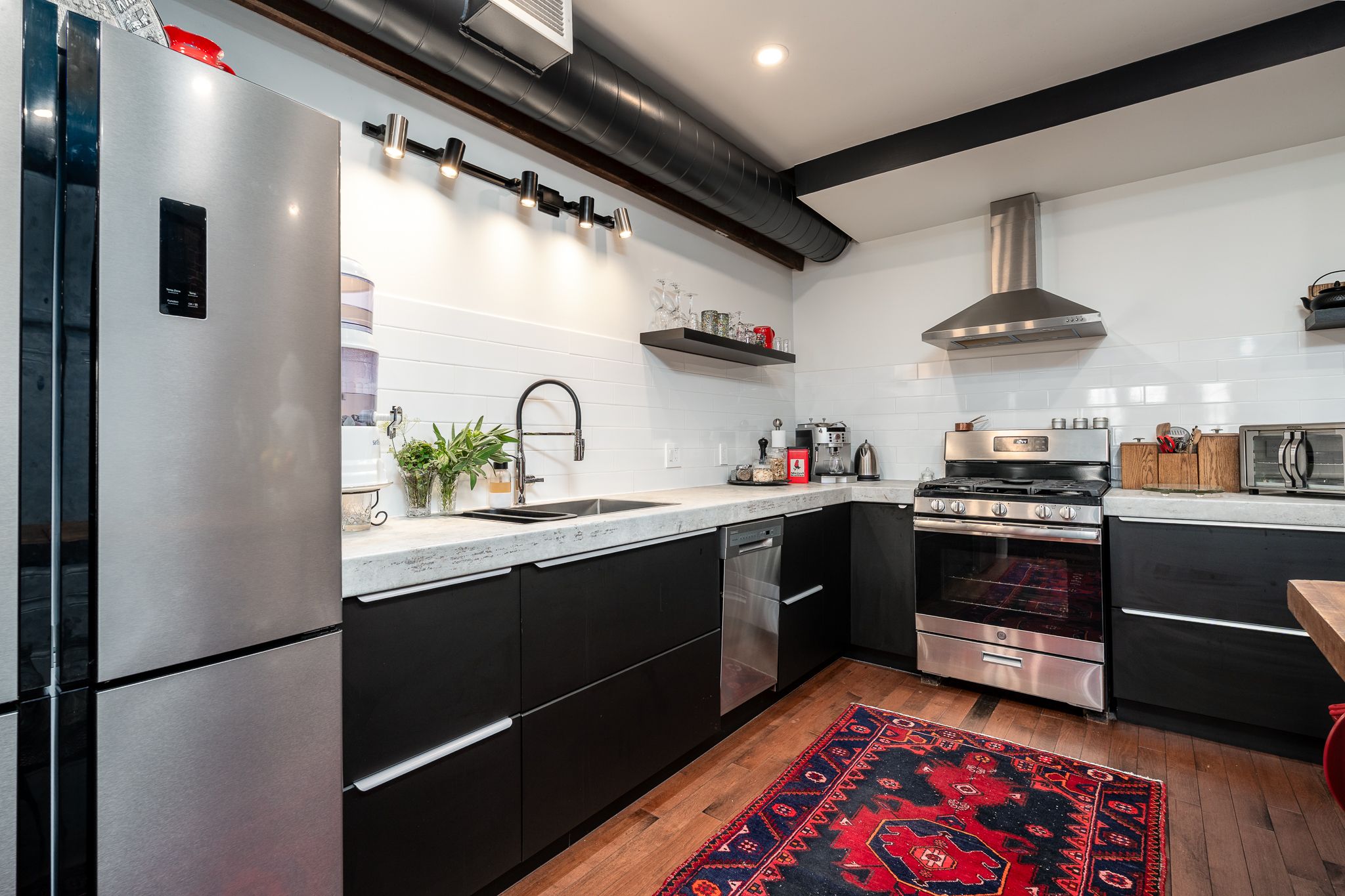 • Industrial-style kitchen equipped for everyday living and entertaining.