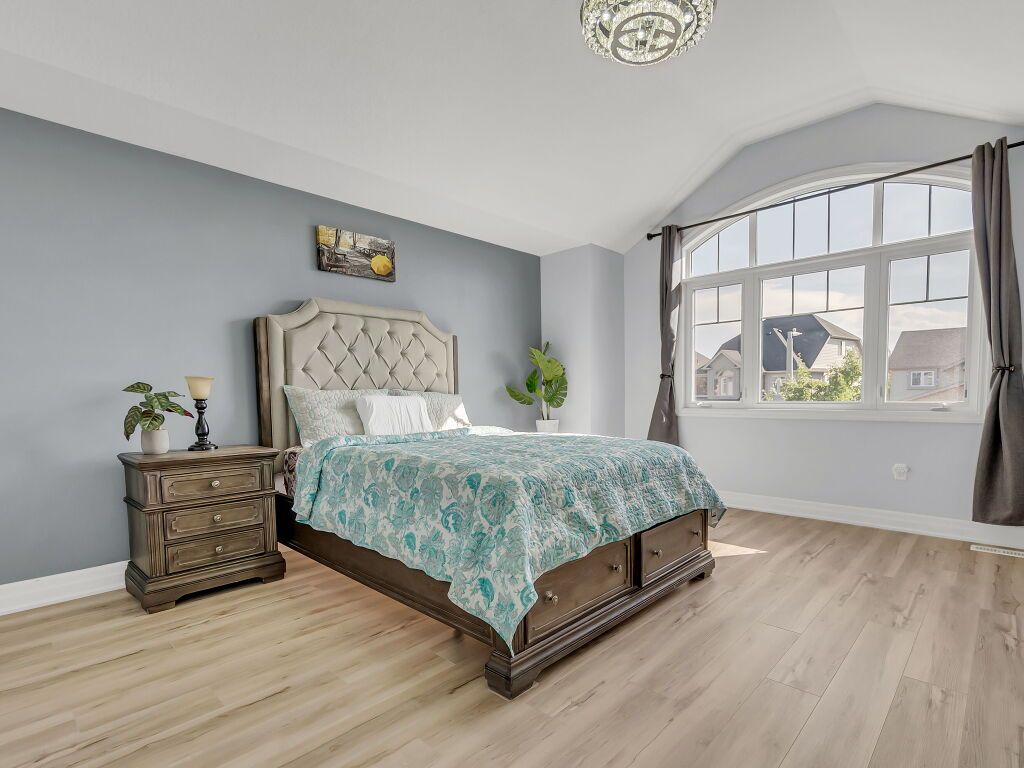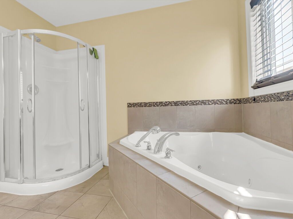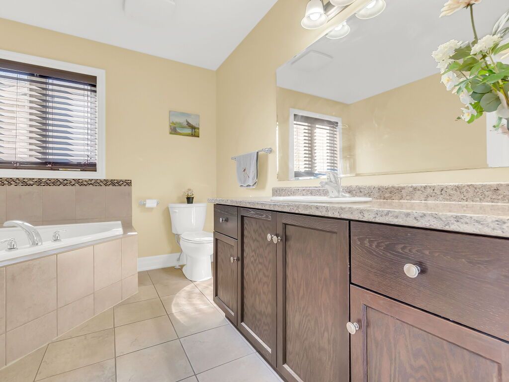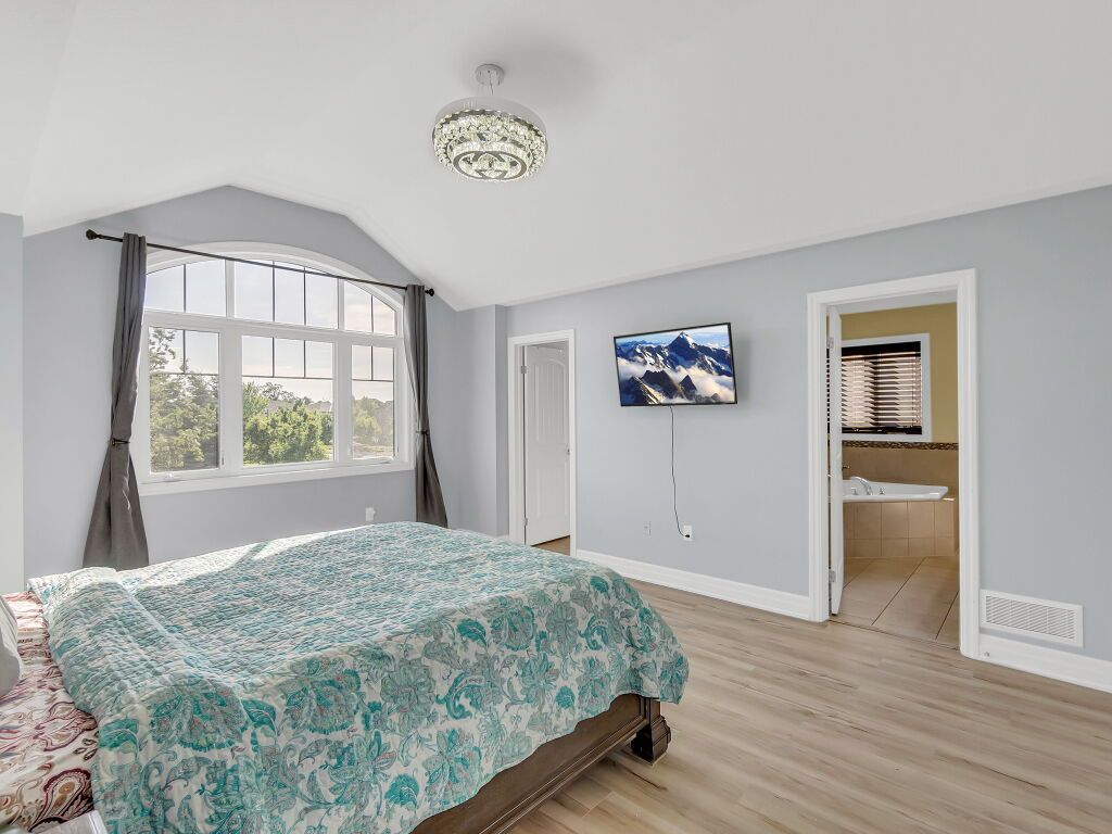 • Generous primary bedroom features a walk-in closet and ensuite with Jacuzzi tub.