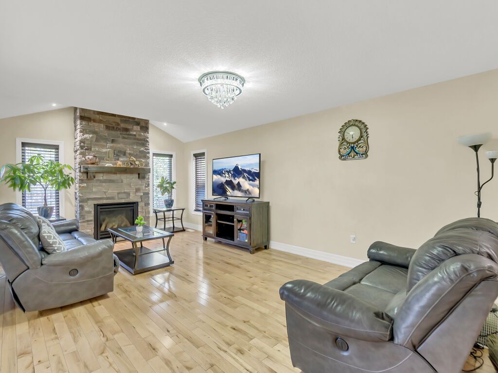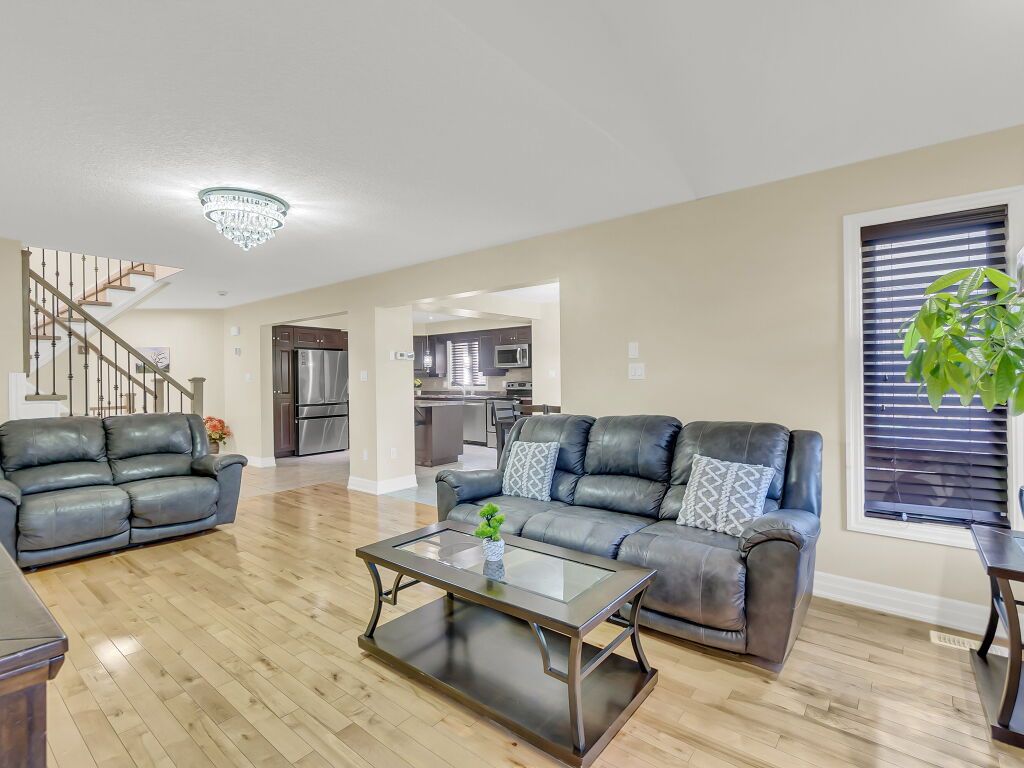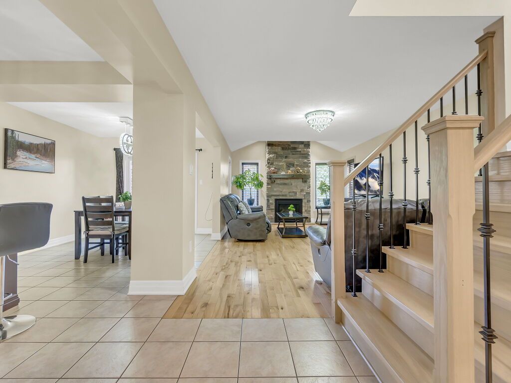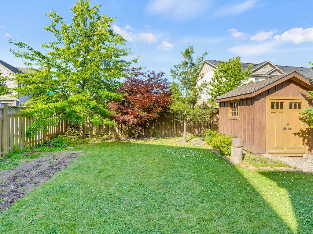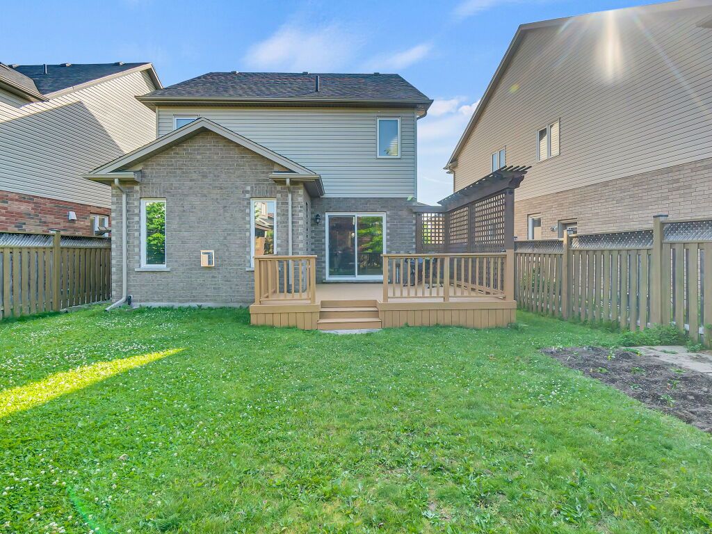 Beautiful upgraded 2-storey detached home with a double car garage, built in 2013 and located in desirable south guelph. The main floor features a spacious open-concept kitchen with a breakfast bar, island, ample cabinetry, and stainless steel appliances, along with a bright living room with hardwood flooring and a fireplace. Sliders from the dining area lead to a private deck and fully fenced backyard with a garden shed, plus a convenient 2-piece bathroom. Upstairs offers 3 well-sized bedrooms, including a generous primary bedroom with a walk-in closet and ensuite bathroom with a jacuzzi tub, as well as an additional 4-piece bathroom. The finished basement adds excellent living space with an open-concept recreation room, gas fireplace, large windows, extra storage, and another 4-piece bathroom. Surrounded by nature and close to schools, the library, shopping, restaurants, and the rec center, this is a fantastic opportunity to own a wonderful family home in a great location.