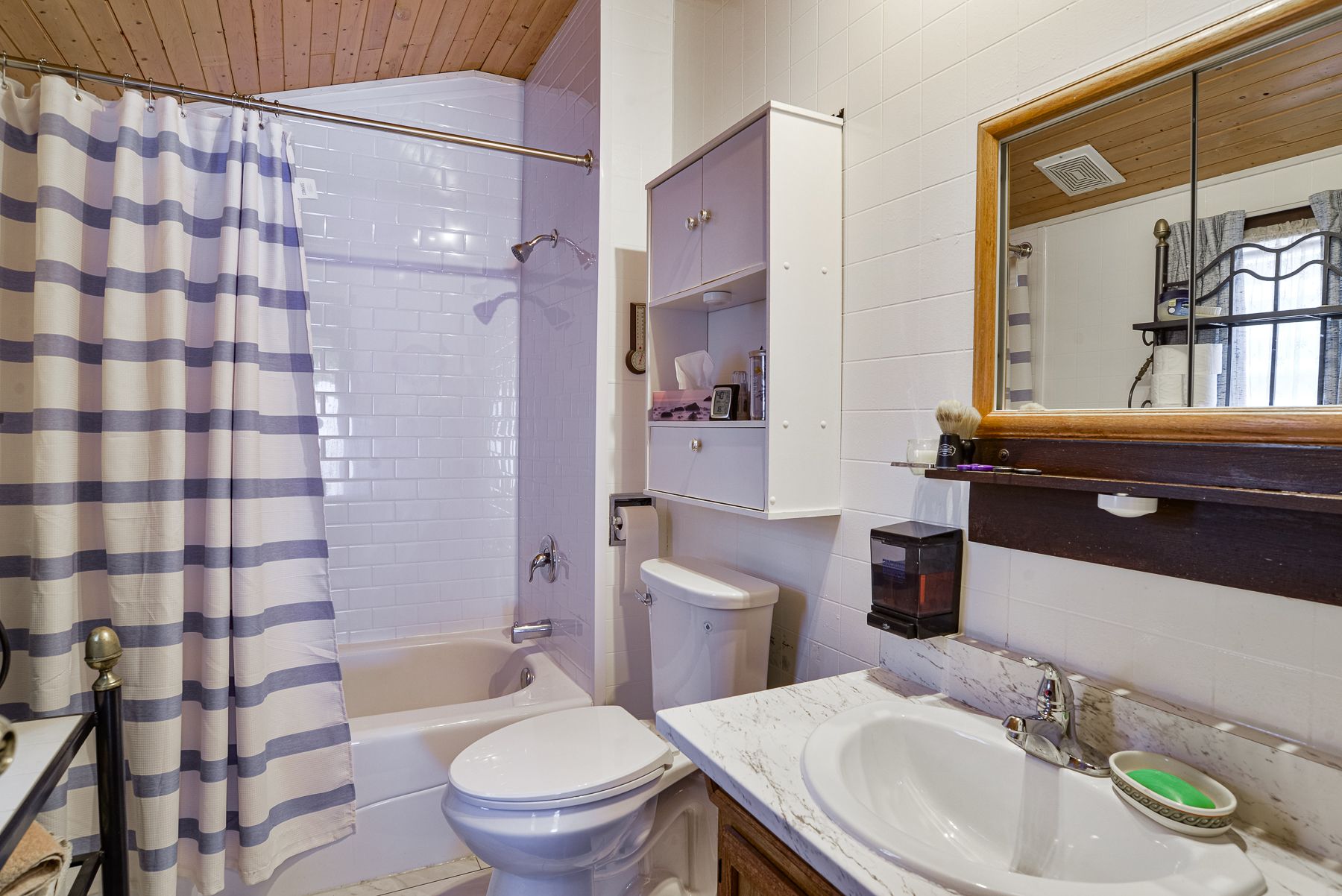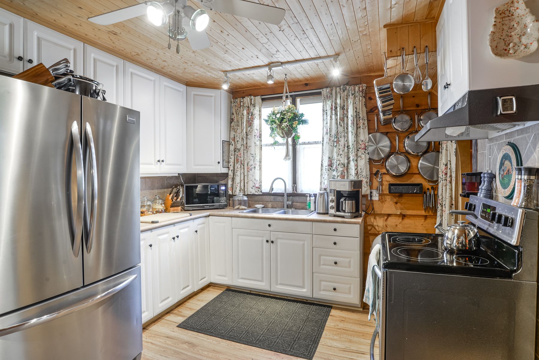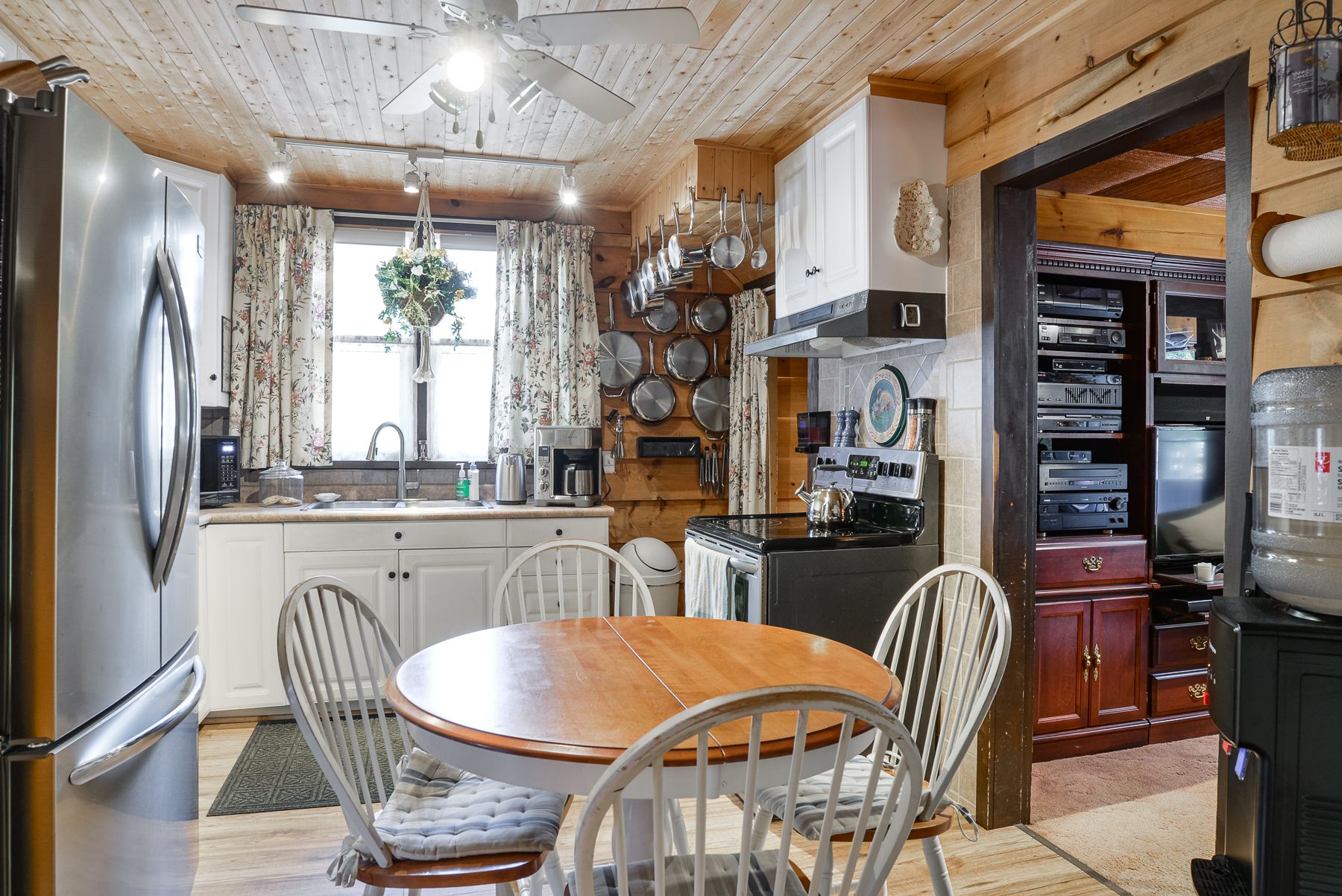 Welcome to 269 main street, nestled in the quaint town of kearney, where you will find yourself surrounded by water and tranquility. There have been over $100,000 in upgrades and renovations completed within the past year. Blending modern improvements with warm, inviting character, this property is move-in ready. The main floor features a spacious primary bedroom for convenient single-level living. Enjoy cooking and gathering in the refreshed kitchen, complete with new flooring, while the dining room, bedrooms and upper hallway are enhanced by stunning new pine slat ceilings that add warmth and charm throughout. Both bathrooms have been updated with new tub surrounds and toilets, along with a new vanity in the lower bathroom and updated plumbing in the upper bath for added peace of mind. Step outside to a well-manicured lot, fully enclosed with a brand new privacy fence and three access gates-perfect for families, pets, or entertaining. Relax on the covered front porch or take advantage of the oversized single detached garage for additional storage and parking. Additional highlights include a recently resurfaced steel roof with added ice blockers, woodstove (2021), windows (2022), deck (2025), carpet (2025), pressure pump & plumbing (2025), and an iron filter system. This meticulously cared for home offers the perfect blend of comfort, functionality, and value-don't miss your opportunity to make it yours!