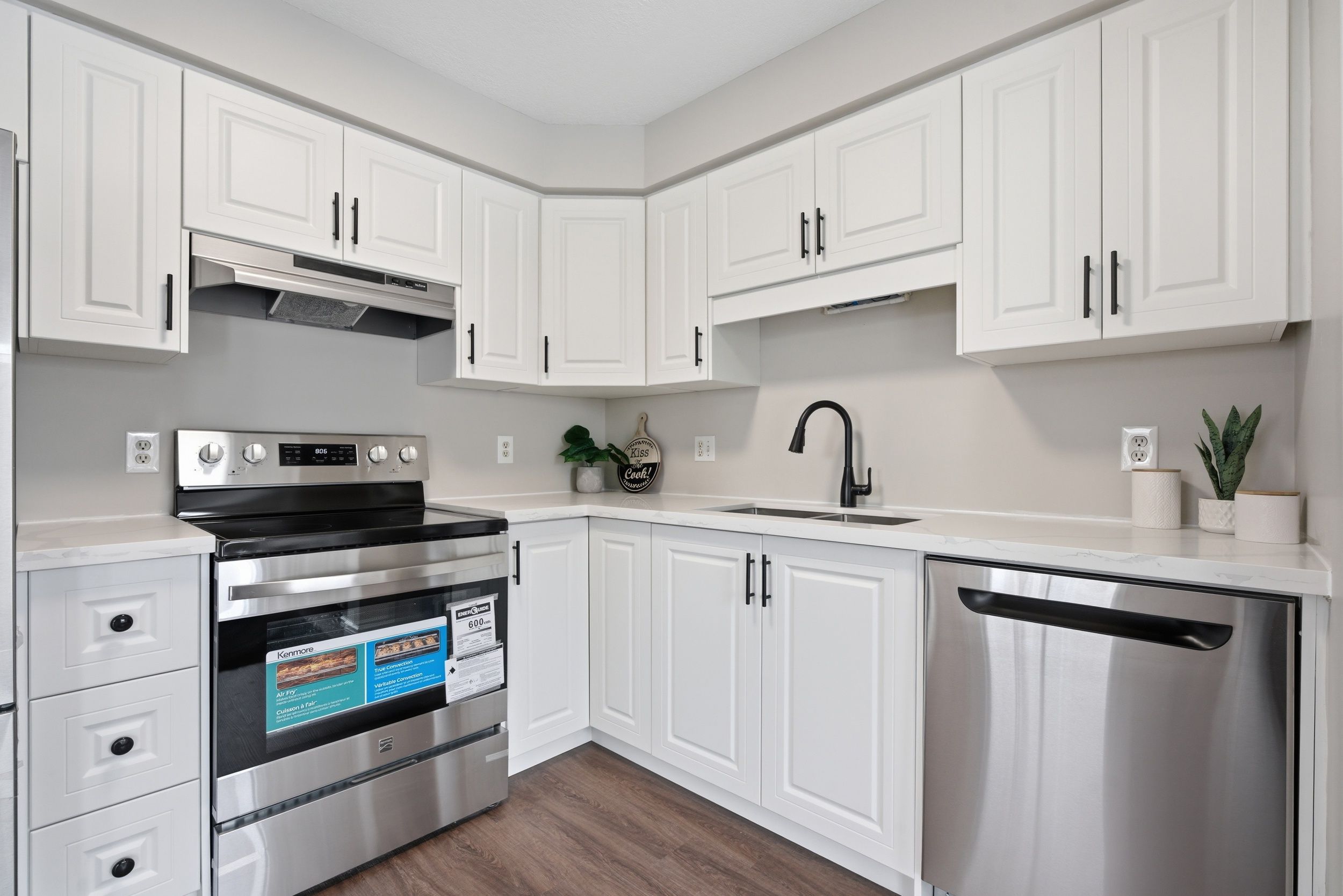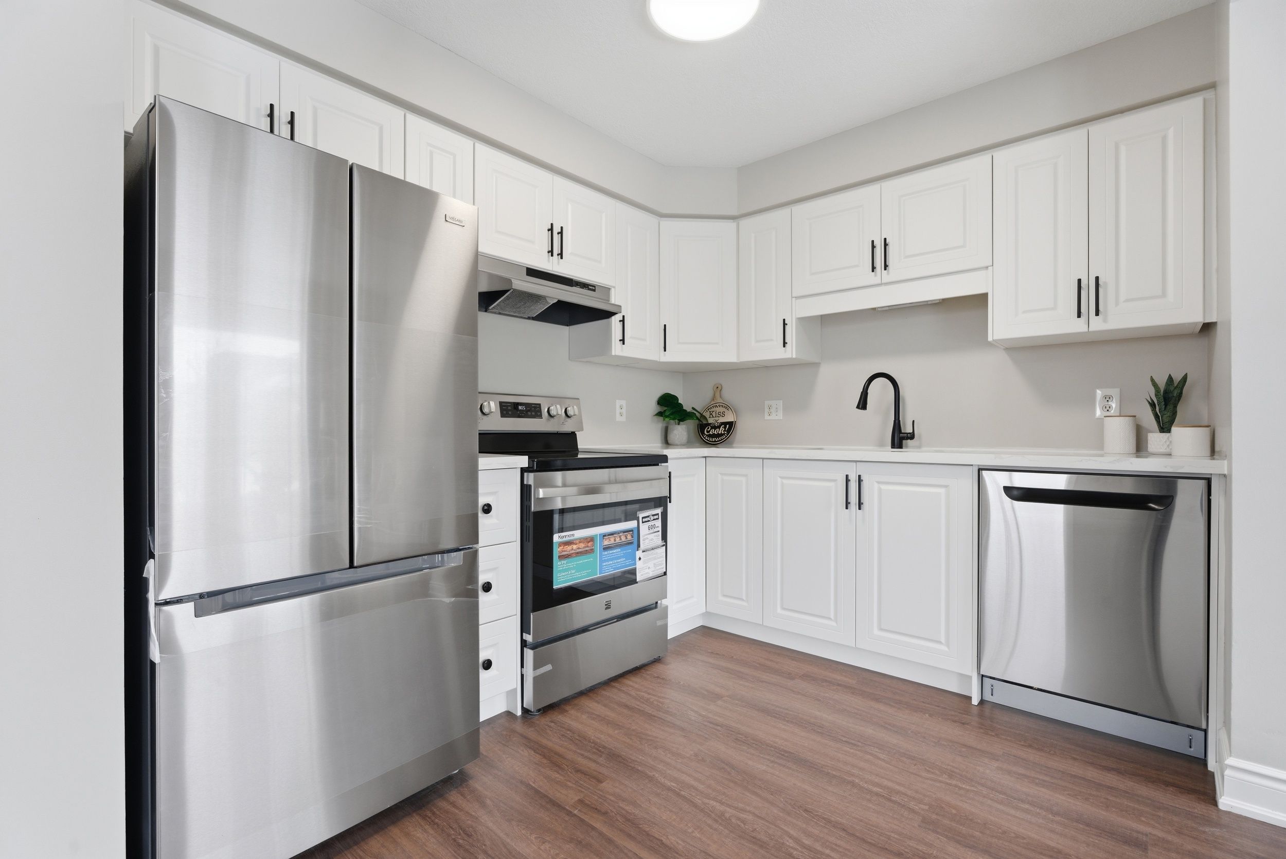 • Modern kitchen equipped with brand new stainless steel appliances.