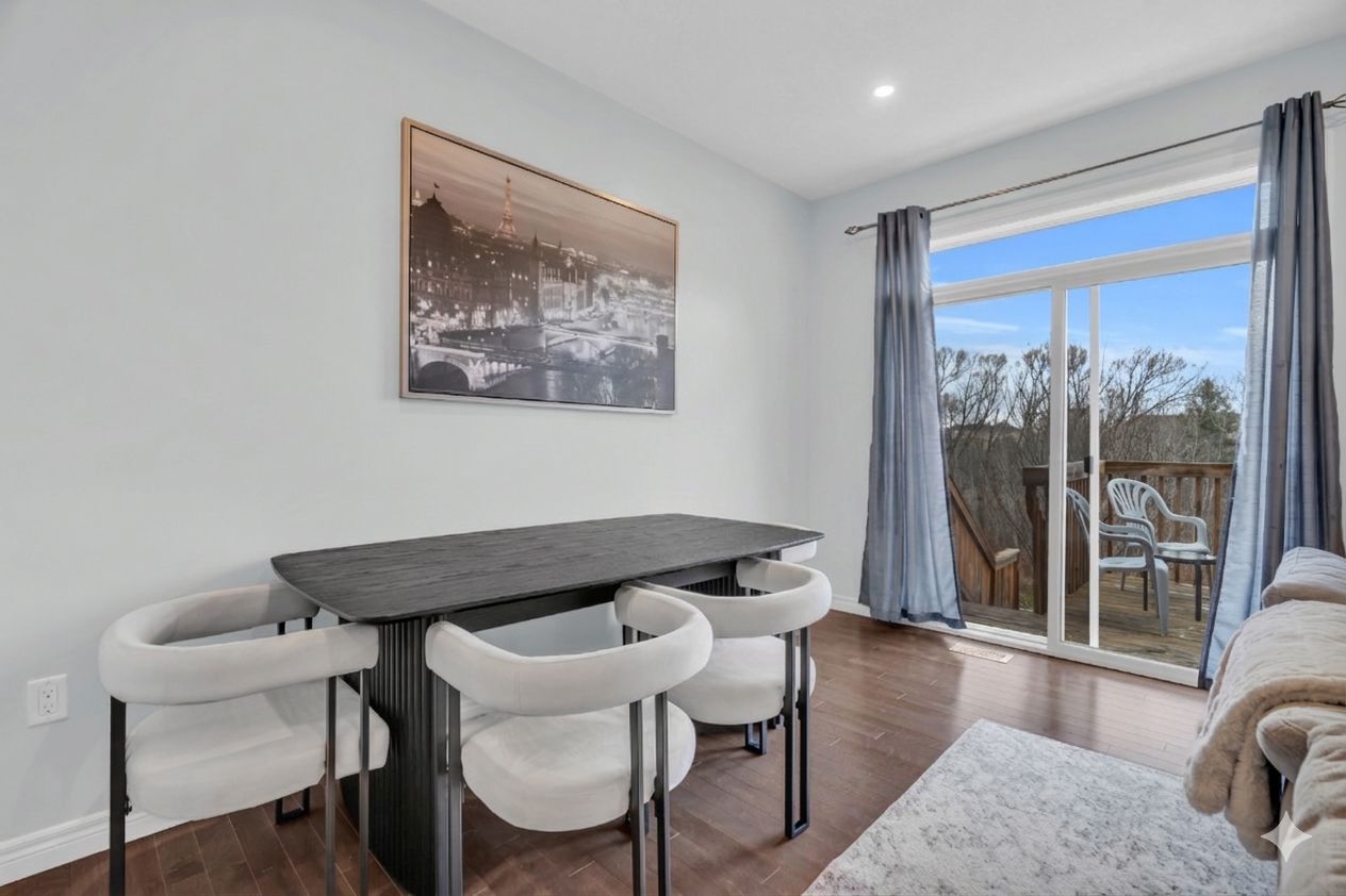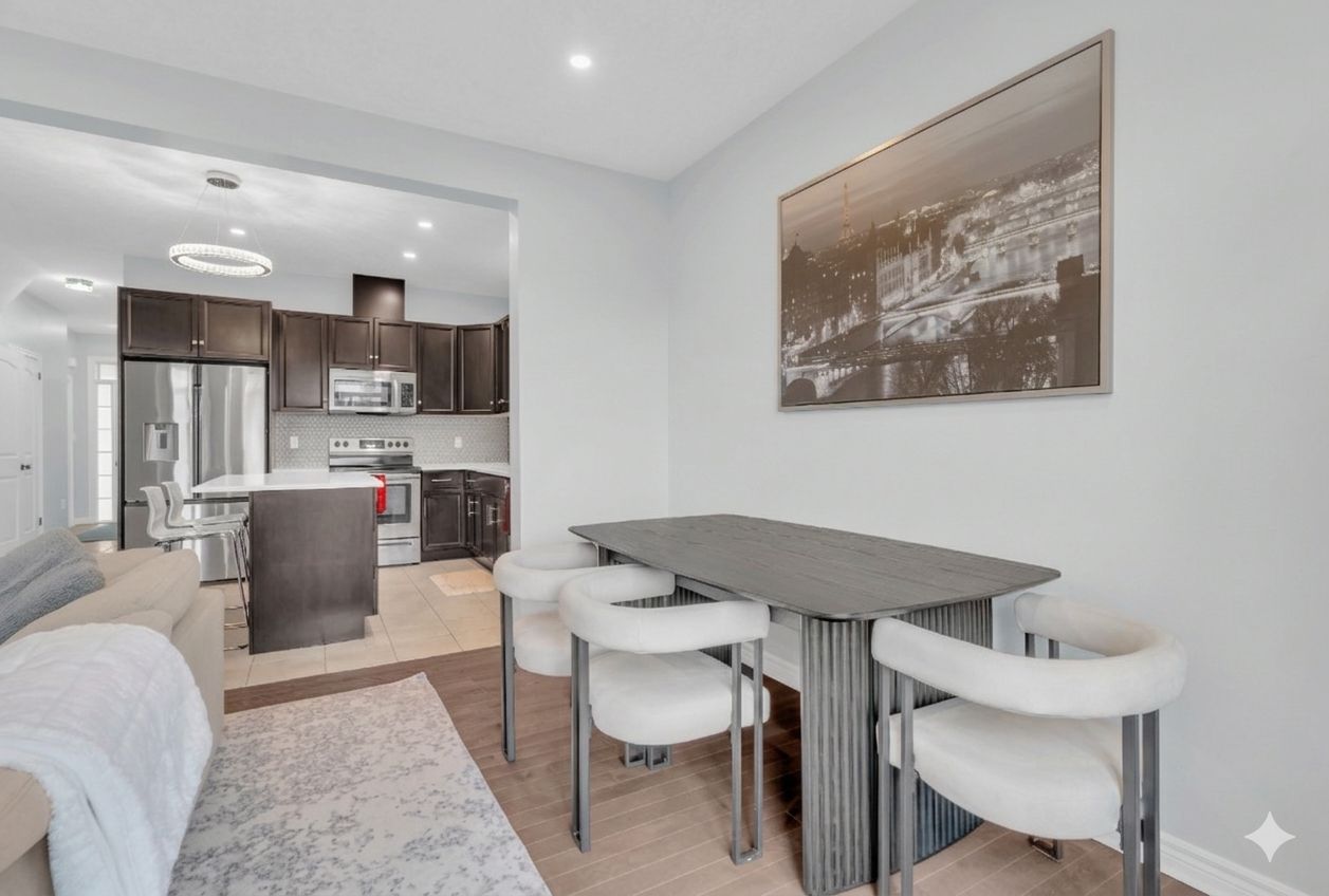 Welcome to 269 watson parkway north #7, a beautifully maintained end-unit townhome offering rare privacy and picturesque views in guelph's highly desirable east end. Backing onto greenspace with a fully finished walkout basement, this home blends comfort, convenience, and style in one exceptional package. Step inside to find 9-foot ceilings, an open-concept layout, and generous natural light flowing throughout the kitchen into the living and dining area as you make your way onto the back deck. With 3 spacious bedrooms and 4 bathrooms, this home provides ample room for families, professionals, or anyone seeking a thoughtfully designed space with modern functionality. The walkout basement expands your living options, perfect for a recreation room, home office, or potential suite-leading directly to peaceful outdoor surroundings. Enjoy being just minutes from parks, walking trails, schools, shopping, and everyday amenities, all while living in a quiet, friendly community. A rare offering in a prime location-move-in ready and designed for effortless living.