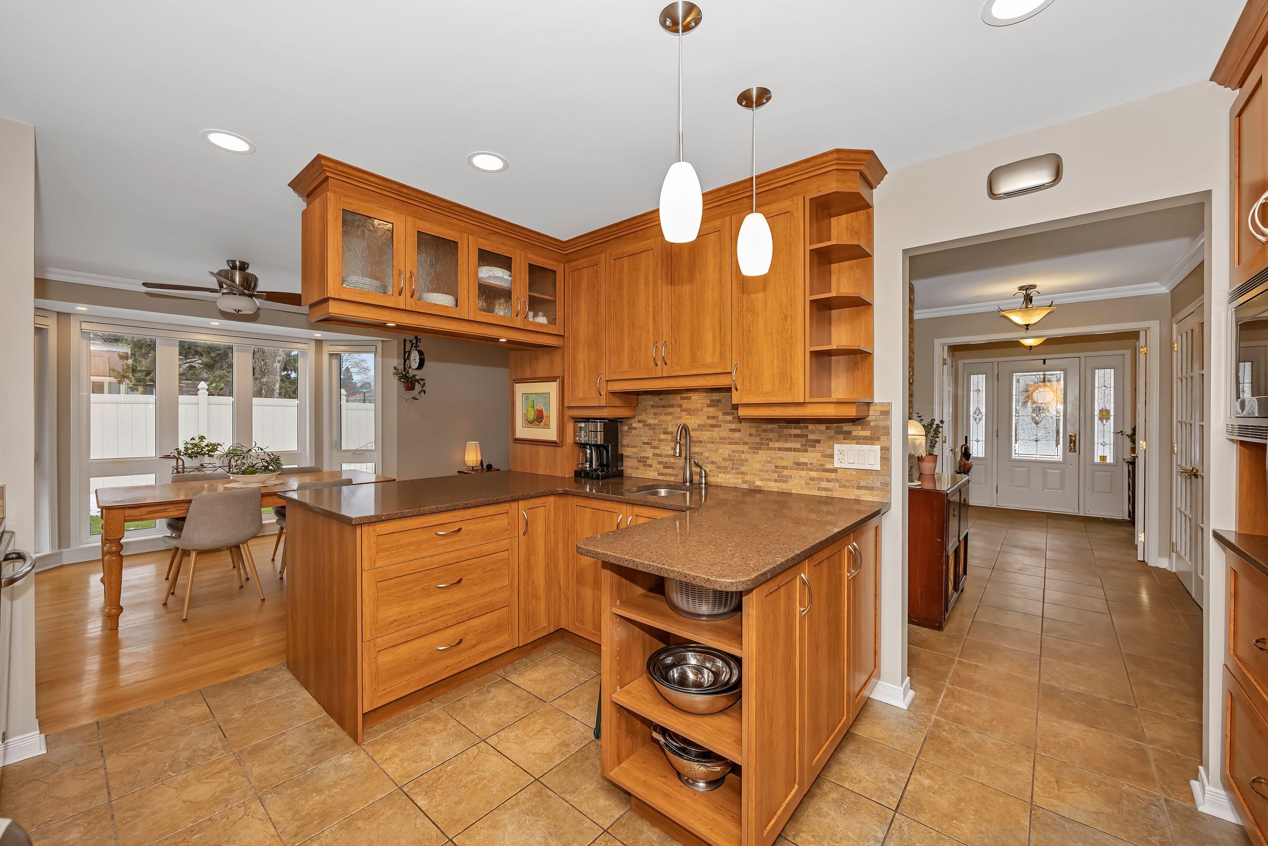 • Beautifully appointed kitchen with quartz countertops and two sinks.