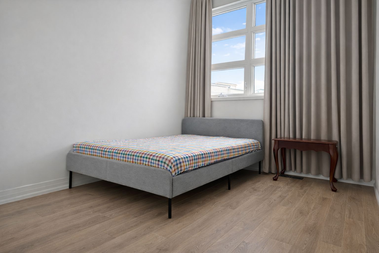 • Bright bedroom with high ceilings and large windows for plenty of light.