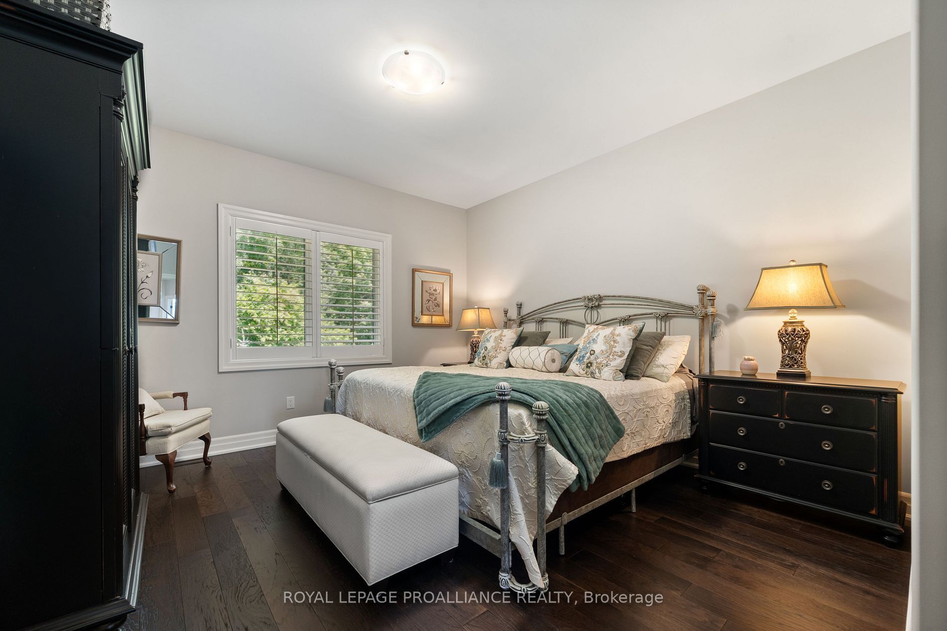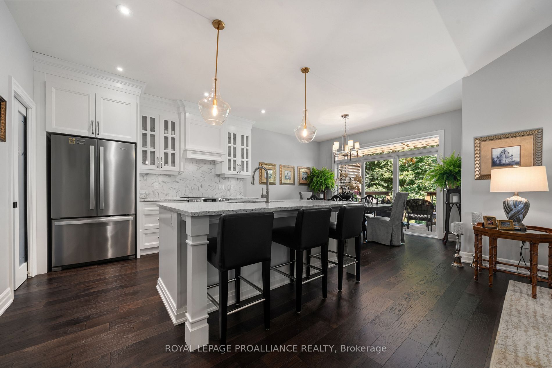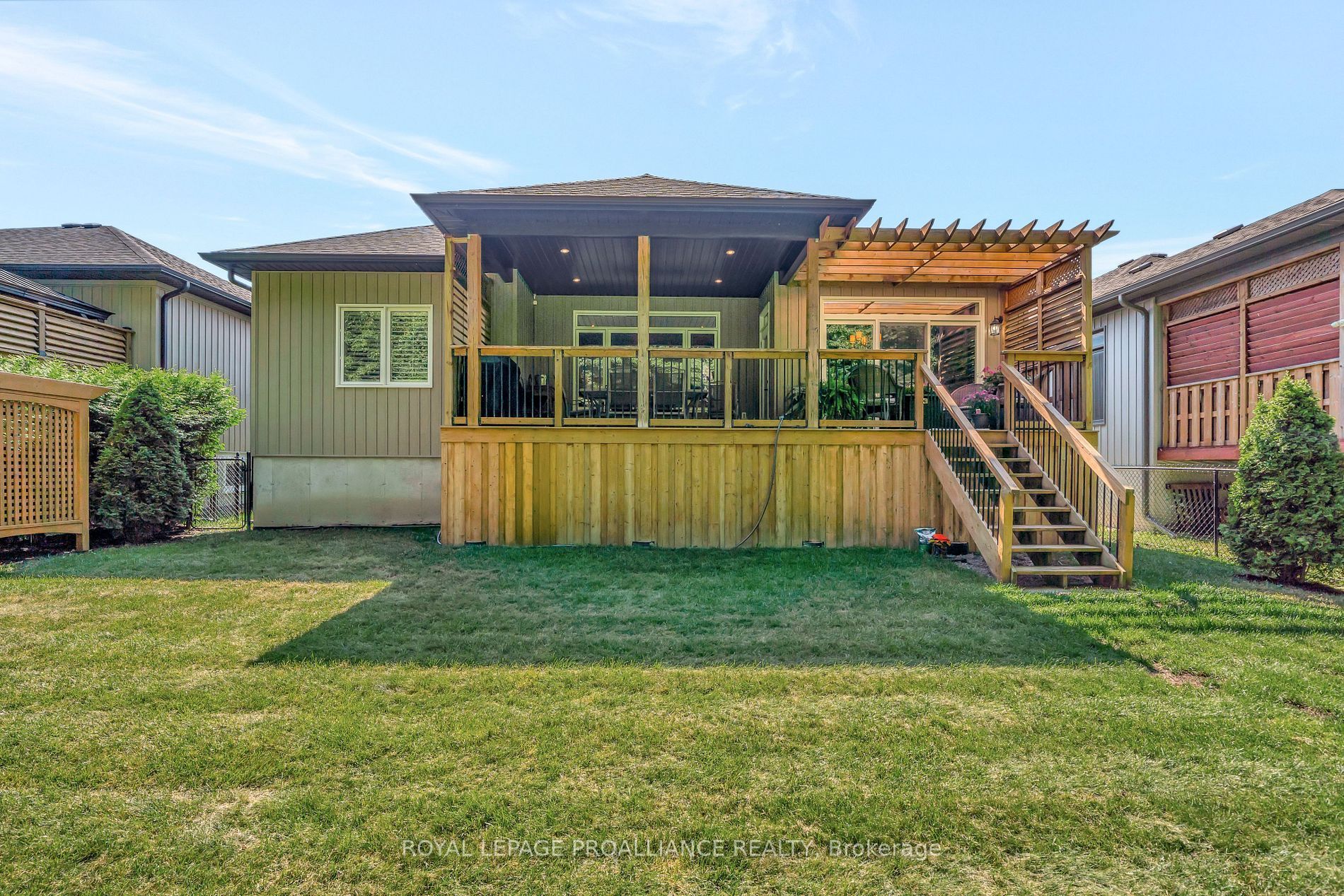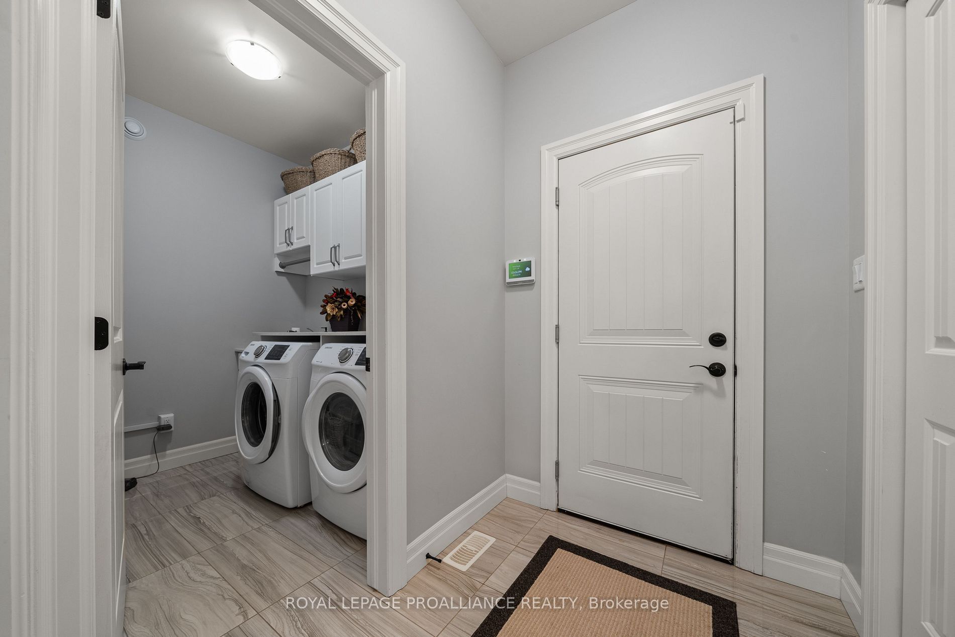 A stunning home on a super premium lot with all the upgrades you could possibly want. Four bedrooms, 3 full baths, your only neighbour behind is mother nature, popular front porch, covered deck with gas bbq hook-up, 9 ft ceilings, quality low maintenance flooring, plus a gorgeous kitchen with quartz, large island, cabinets to the ceiling with crown moulding, backsplash, pantry with coffee station & lots of storage, laundry room with kitchen quality cabinets and quartz, 12 ft patio door, california shutters, ensuite bath w/glass & tile shower & double sinks, hardwood stairs, gas fireplace, upgraded trim package, water softener, and lots lots more. Located in a very desirable subdivision with only single family homes, 10 mins or less to 401/cfb trenton/marina/golf & prince edward county. Move in ready - this is "thee" one!