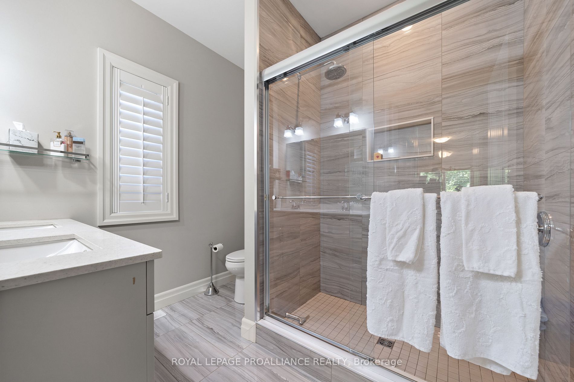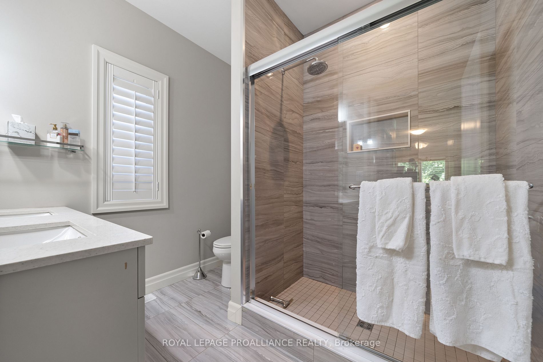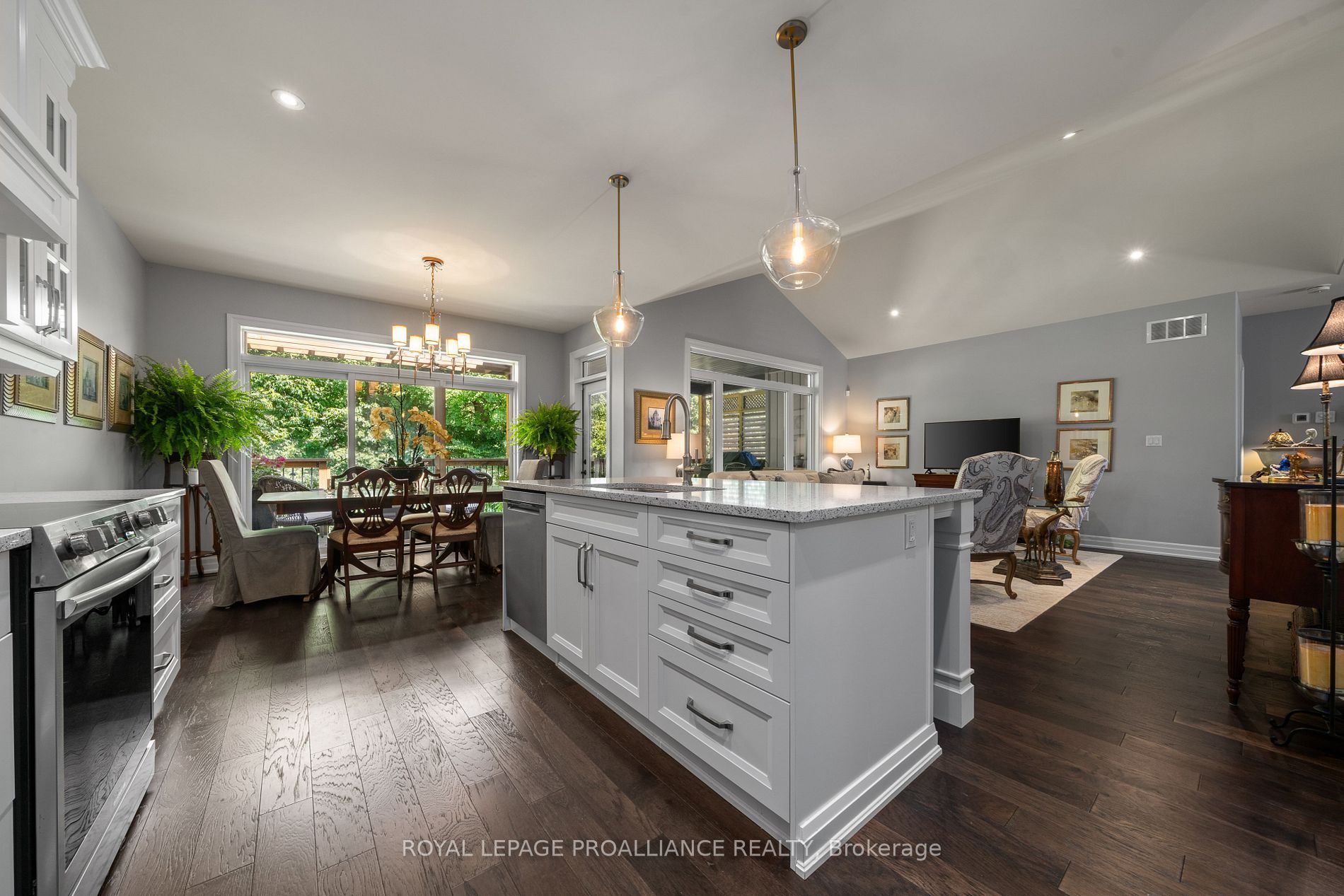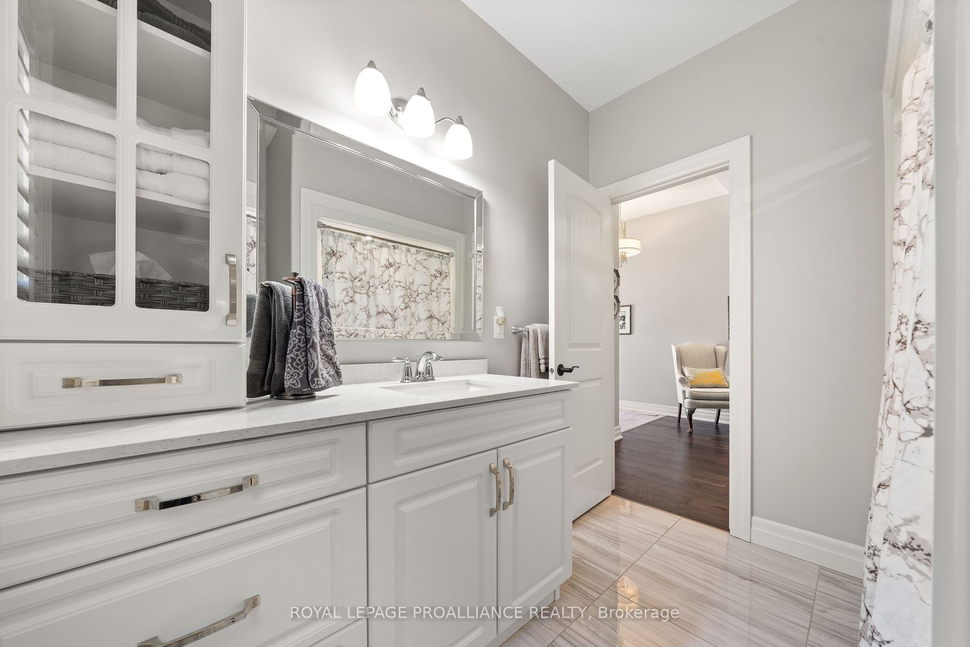 A stunning home on a super premium lot with all the upgrades you could possibly want. Four bedrooms, 3 full baths, your only neighbour behind is mother nature, popular front porch, covered deck with gas bbq hook-up, 9 ft ceilings, quality low maintenance flooring, plus a gorgeous kitchen with quartz, large island, cabinets to the ceiling with crown moulding, backsplash, pantry with coffee station & lots of storage, laundry room with kitchen quality cabinets and quartz, 12 ft patio door, california shutters, ensuite bath w/glass & tile shower & double sinks, hardwood stairs, gas fireplace, upgraded trim package, water softener, and lots lots more. Located in a very desirable subdivision with only single family homes, 10 mins or less to 401/cfb trenton/marina/golf & prince edward county. Move in ready - this is "thee" one!