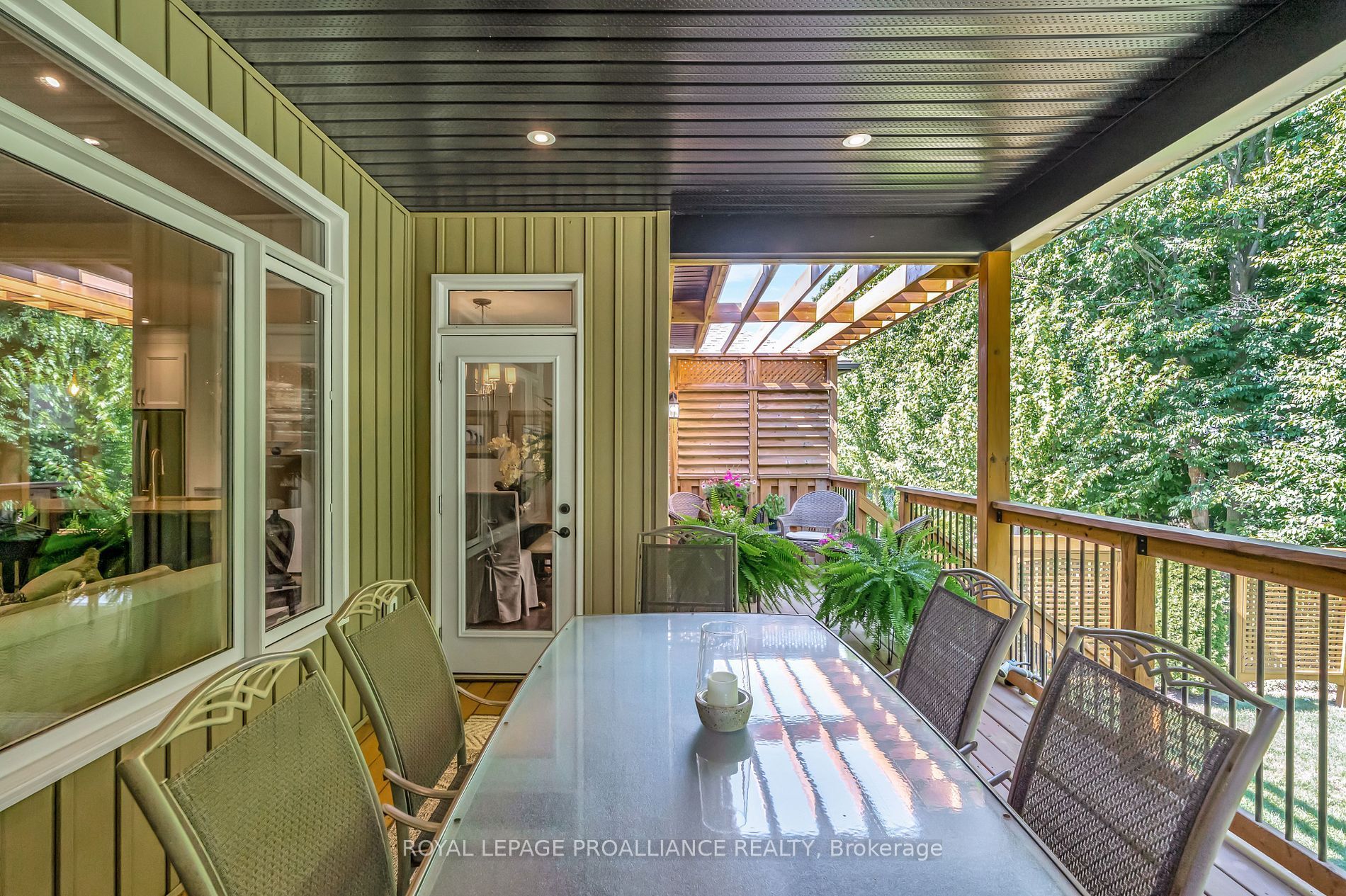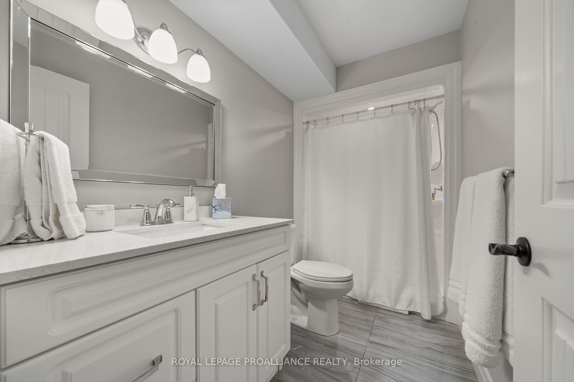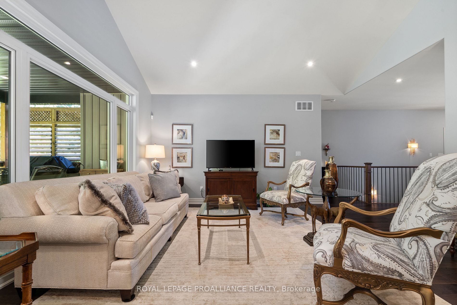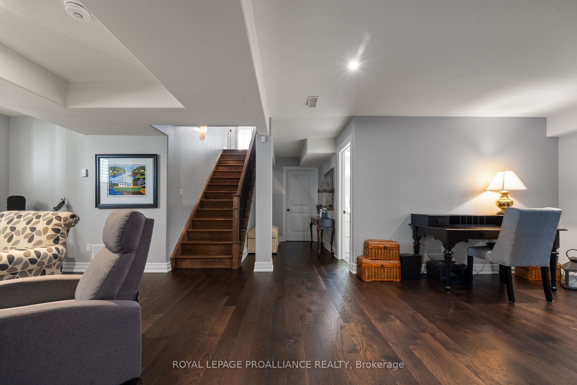 A stunning home on a super premium lot with all the upgrades you could possibly want. Four bedrooms, 3 full baths, your only neighbour behind is mother nature, popular front porch, covered deck with gas bbq hook-up, 9 ft ceilings, quality low maintenance flooring, plus a gorgeous kitchen with quartz, large island, cabinets to the ceiling with crown moulding, backsplash, pantry with coffee station & lots of storage, laundry room with kitchen quality cabinets and quartz, 12 ft patio door, california shutters, ensuite bath w/glass & tile shower & double sinks, hardwood stairs, gas fireplace, upgraded trim package, water softener, and lots lots more. Located in a very desirable subdivision with only single family homes, 10 mins or less to 401/cfb trenton/marina/golf & prince edward county. Move in ready - this is "thee" one!