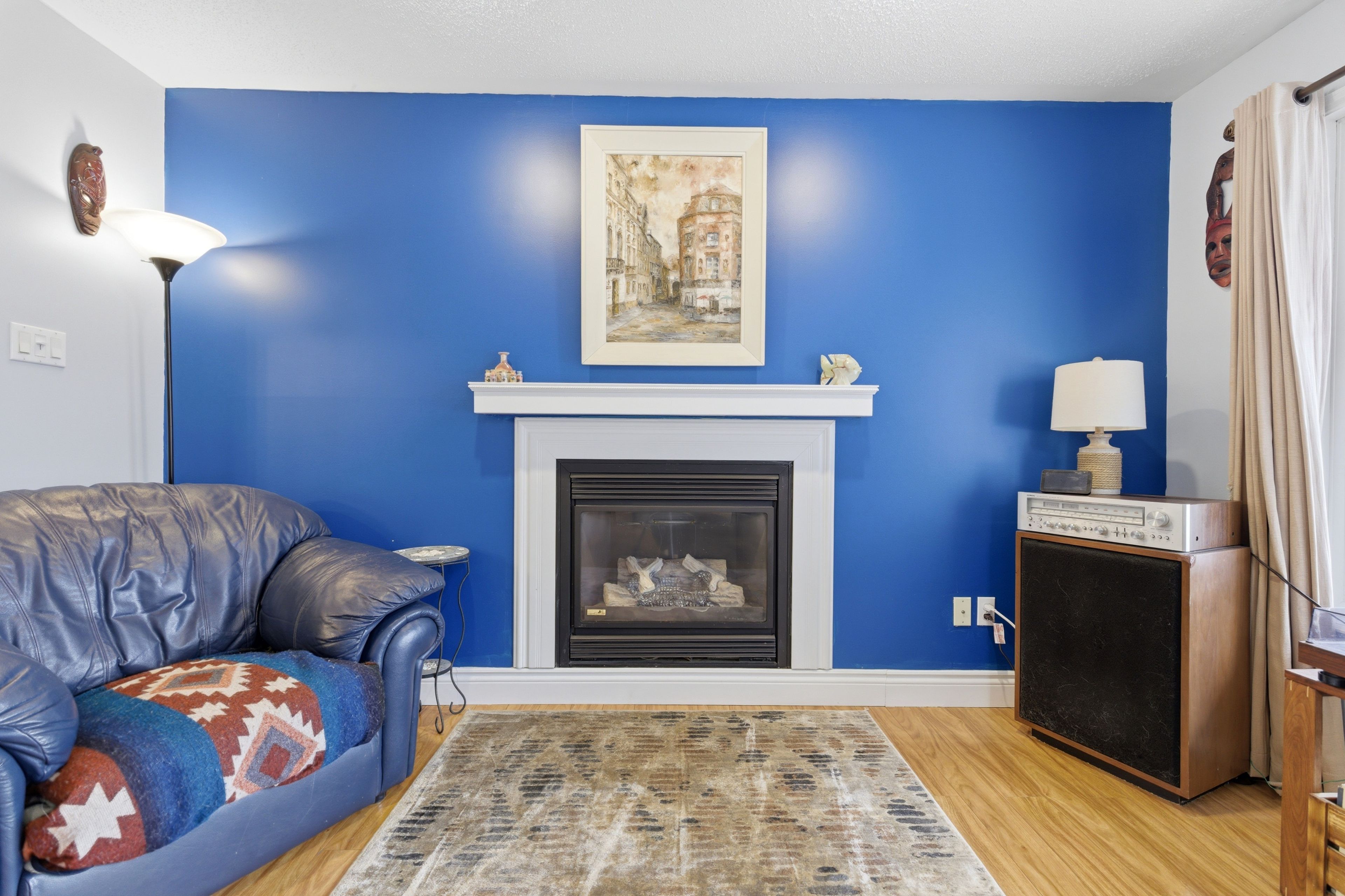 • Cozy living room with a gas fireplace and character.