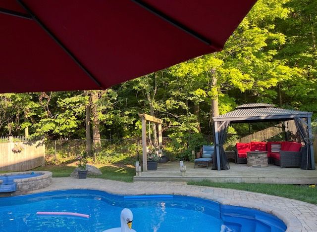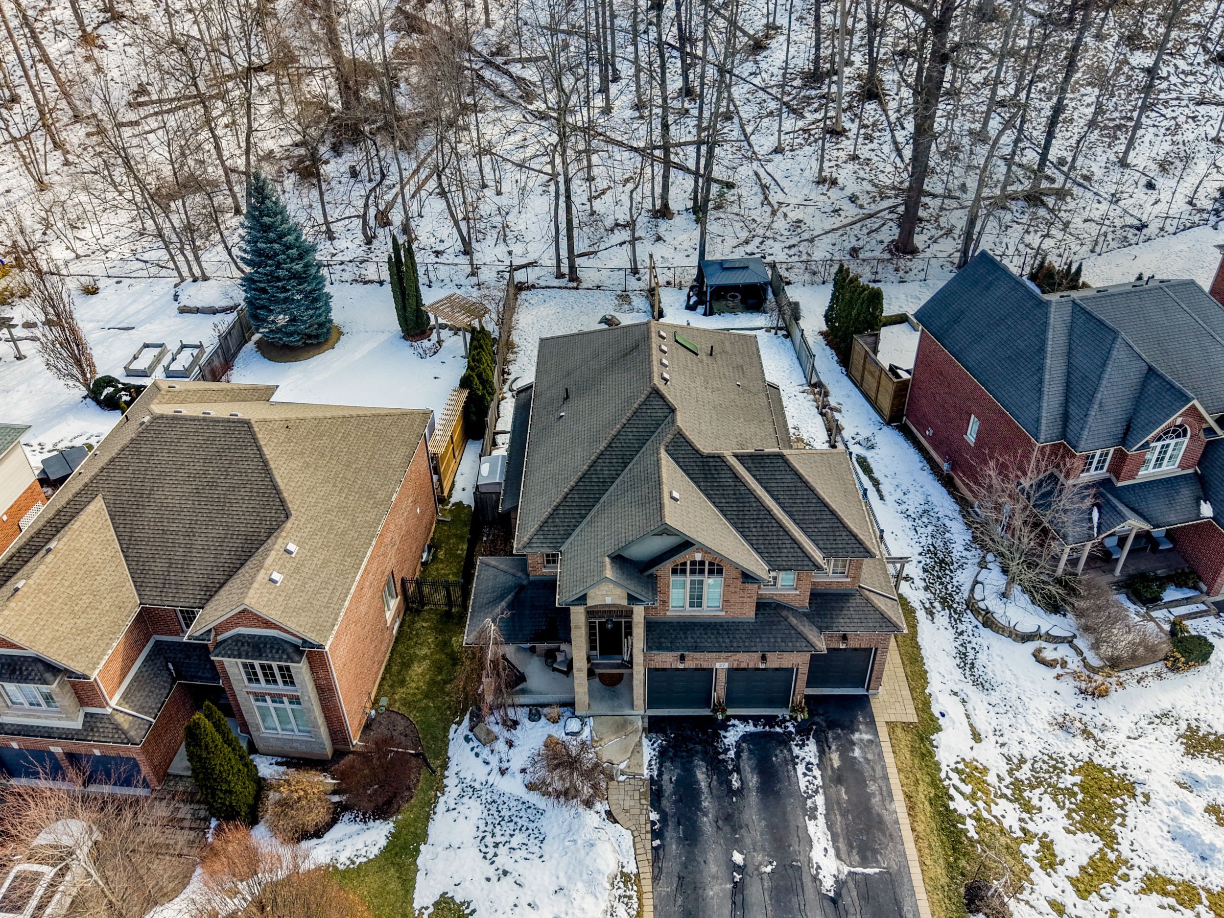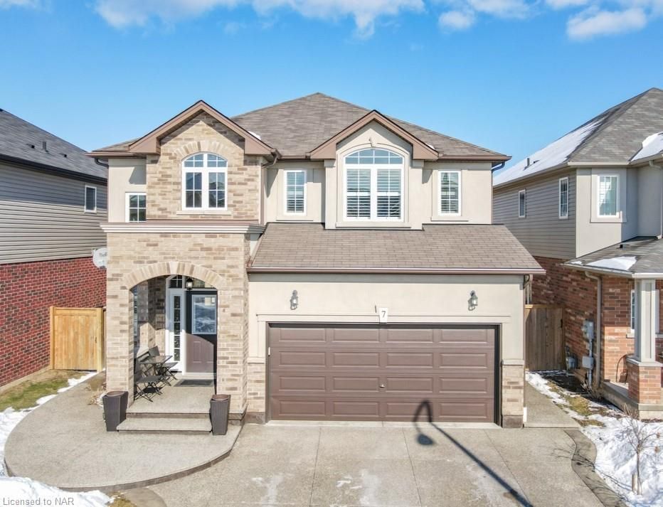 This custom-built home offers approximately 2828 sqft + features a rare, state-of-the-art professional golf simulator built into the garage, valued at $60,000. Ideal for private practice, entertaining, or exploring business opportunities in the growing simulator market, this unique feature sets the home apart. Prefer a traditional layout? The simulator can be removed to restore a full three-car garage. Set on an expansive lot backing directly onto the escarpment, the home enjoys unobstructed panoramic views & no rear neighbors, creating exceptional privacy & a strong connection to nature. The striking stone façade, covered front porch & grand foyer create an impressive first impression. The main level features soaring 9 ft ceilings + floor-to-ceiling windows that flood the home with natural light. Designed for both everyday living & entertaining, the layout includes a powder room, main-floor laundry with chute, formal dining room, & a stunning gourmet kitchen with a large custom island, granite countertops and premium appliances, including a thermador 36" 6 burner gas range. The step-down great room offers a stone fireplace & coffered ceiling. The basement also features rare 9 ft ceilings. Outside, enjoy a private backyard retreat with an in-ground pool, integrated hot tub/waterfall, surrounded by interlock, deck, gazebo and fire table. The upper level offers 4 spacious bedrooms and a versatile loft. The primary suite includes a walk-in closet + a spa-inspired 5-pc ensuite with soaker tub, tiled shower, heated floors, double vanity and quartz countertops. Additional highlights include exceptional curb appeal, a three-car garage, and a prime location on a quiet, desirable cul-de-sac with nearby park and playground access. This remarkable home blends refined design, modern comfort and peaceful natural surroundings, and is conveniently located close to the new super high school, upcoming go station, all amenities in a prestigious community.