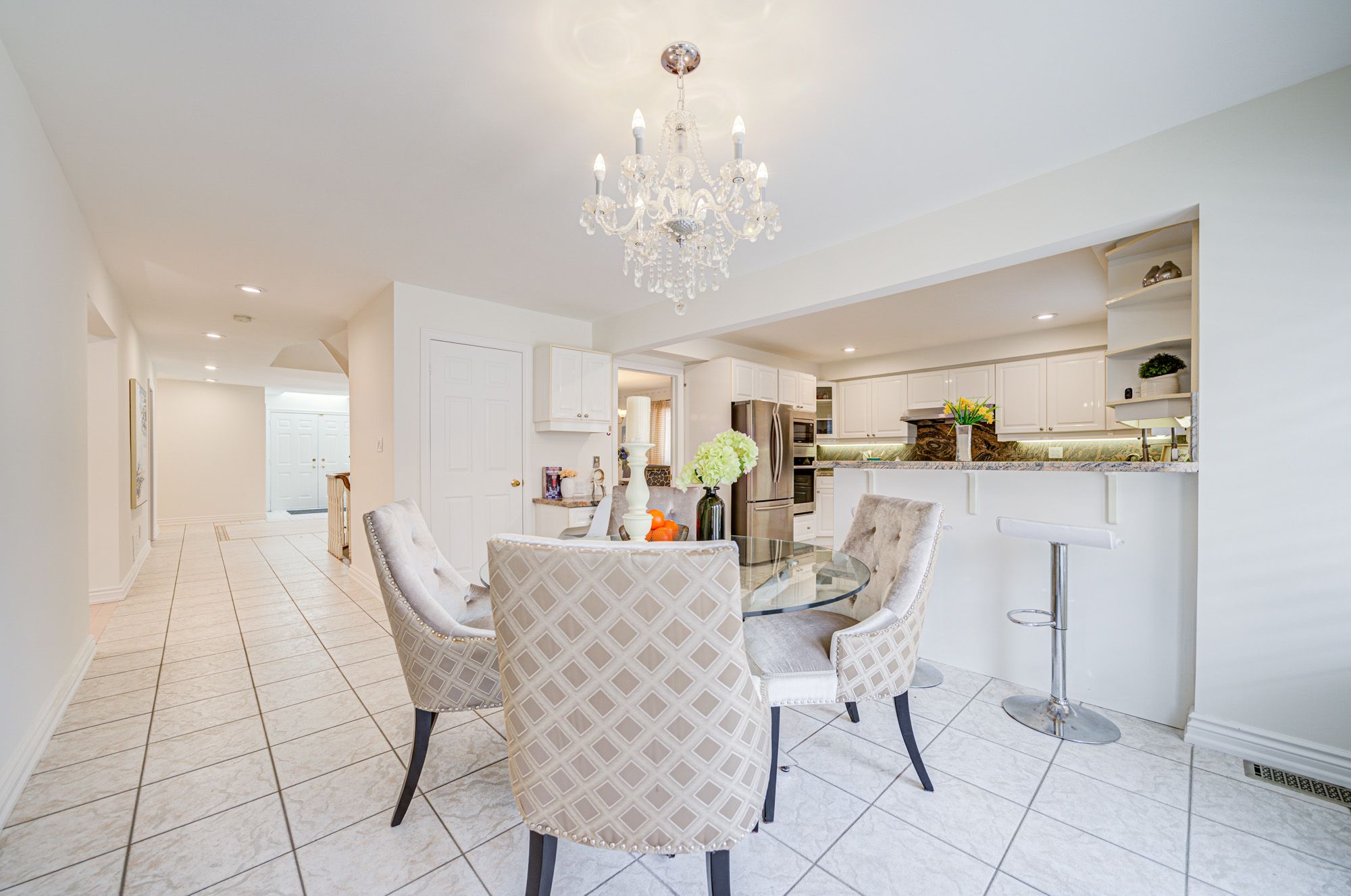 Beautiful,bright,spacious&well maintained! 3300sqft abv grade, great family home on a quiet street. Located in the best pocket of thornhill. Huge family sized kitchen w/granite countrs&backsplash,w/i pantry,main floor library & laundry. Just renoed on the 2nd floor and primary on-suit, access to garage, hardwood flrs through out. Library&family rm. 2 skylights! Finished lower level w/nannys rm & 3pc bath. Smooth ceilings thru-out. Walk to parks,schools,shuls zoned for rosedale heights ps!