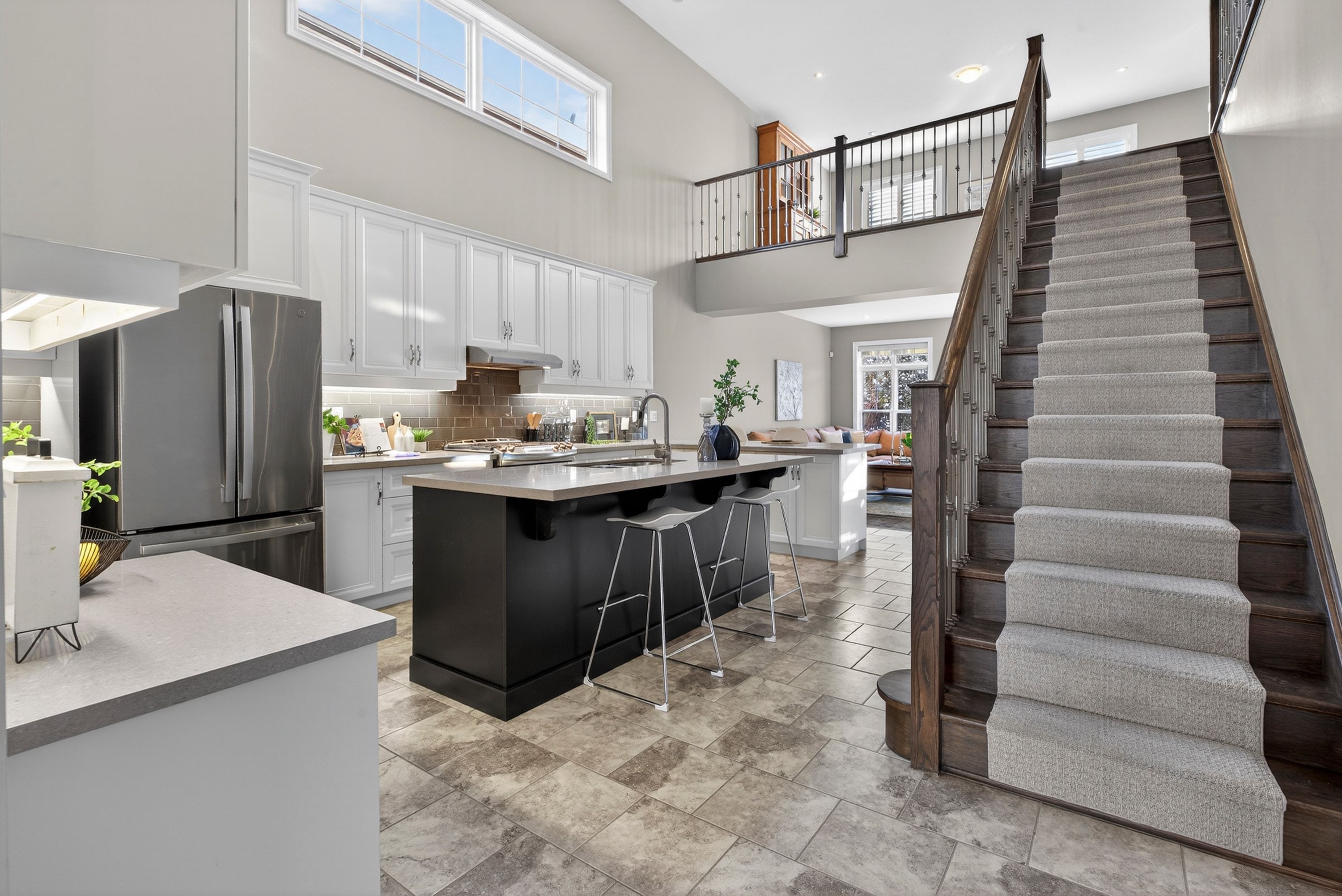 Welcome to 27 black walnut crescent, nestled in one of ancaster's most sought-after detached condo lifestyle communities. This exclusive private-road enclave offers the perfect blend of privacy, prestige, and low-maintenance living, with exterior upkeep professionally managed so you can focus on enjoying your home and surroundings. Ideally located, you're just minutes to major highways, shopping, dining, and everyday conveniences. Inside, the home impresses with a bright, open-concept design highlighted by vaulted ceilings and a dramatic second-floor loft overlooking the main living space, creating an airy, sophisticated atmosphere. Large windows throughout flood the home with natural light, enhancing the sense of space and warmth. The custom chef's kitchen is both stylish and functional, featuring quartz countertops, a walk-in pantry, abundant prep space, and a seamless flow between counters and centre island, ideal for entertaining or everyday living. The adjoining family room offers built-ins, a gas fireplace, and a walk-out to a private patio. The upgraded staircase with modern metal pickets leads to a versatile second floor with theatre room with built-in shelving, perfect for movie nights, a home office, additional bedrooms or lounge space. Designed with convenience in mind, the home offers up to four spacious bedrooms, including a main-level primary suite complete with a walk-in closet and a generous 5-piece ensuite bath. This is an ideal layout for those seeking the ease of main floor living. The unfinished basement offers outstanding potential, excellent for storage today and ready for your custom vision in the future. This is a rare opportunity to enjoy space, style, and turnkey convenience in a prestigious, maintenance-supported ancaster community.