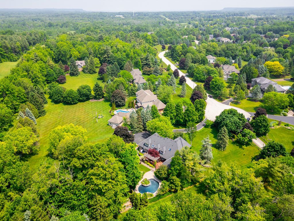 The pinnacle of privacy. Discover a rare sanctuary where extreme seclusion meets modern sophistication. Tucked away at the end of an exclusive cul-de-sac in the village of carlisle, this 2. 12-acre estate is surrounded by forest and farmland, offering a level of tranquility and security increasingly rare in the gta. Designed for the modern family and work-from-home lifestyle, this residence offers over 7,791 sq ft of timeless design. A soaring two-storey foyer sets the tone, complemented by two dedicated libraries or offices ideal for remote executives or business owners. The expansive floor plan transitions seamlessly from productive workdays to refined entertaining and family living. The light-filled chef's kitchen features custom cabinetry, soft-close drawers, a wood island, marble countertops, premium appliances, and a generous breakfast area. A vaulted great room opens to an oversized sunroom with panoramic views of the private backyard. The upper level offers a secondary library or office leading to the luxurious primary suite with spa-inspired ensuite, soaker tub, rain shower, and expansive dressing room, along with three additional spacious bedrooms and a five-piece bath. Meticulously updated for complete turn-key peace of mind, the home features a high-efficiency furnace and ac (2024), an upgraded chef's kitchen with most appliances replaced in 2024, ev charging in the three-car garage, and a raised vegetable garden. Resort-style backyard living includes a saltwater gunite pool with cascading rock waterfall, hot tub, expansive deck, and pergola. The fully finished walk-up lower level with private entrance offers exceptional versatility for a multi-generational suite, guest wing, or private wellness studio. Experience the stillness of your private two-acre forest in all four seasons. Luxury certified.
