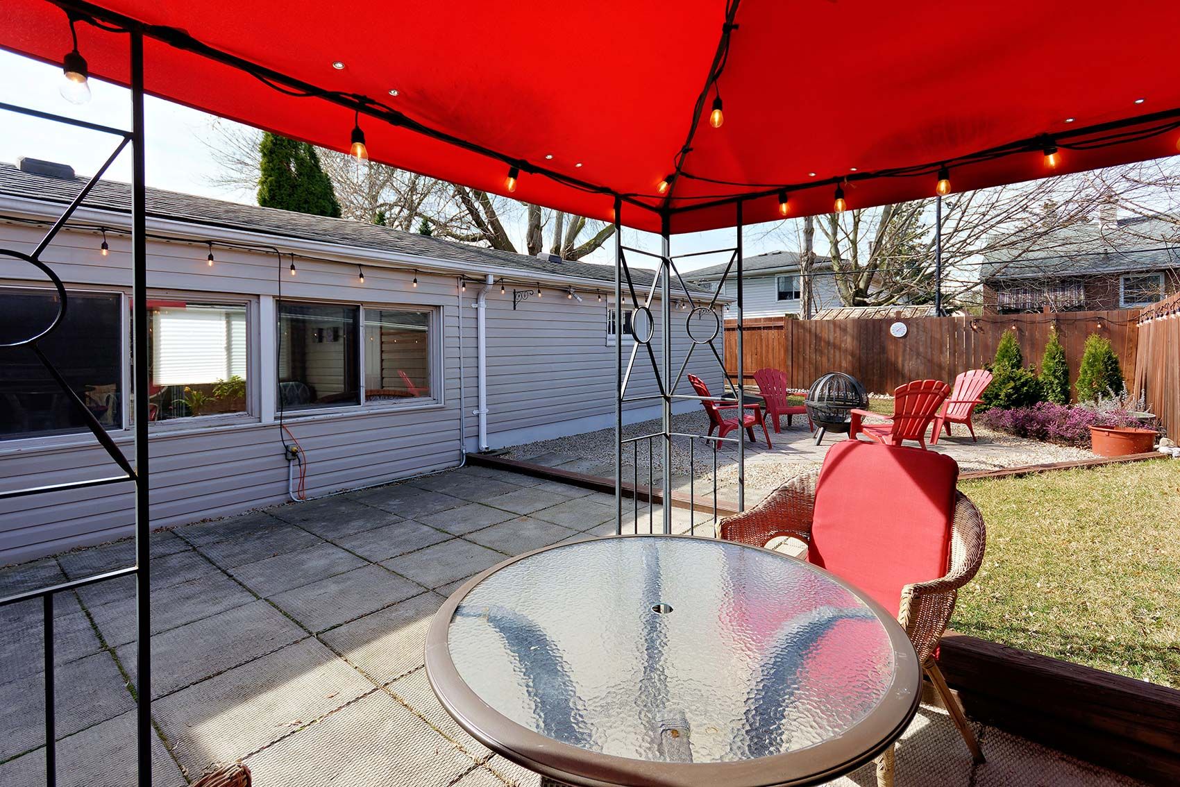 • Private backyard with firepit, BBQ area, and professional landscaping.