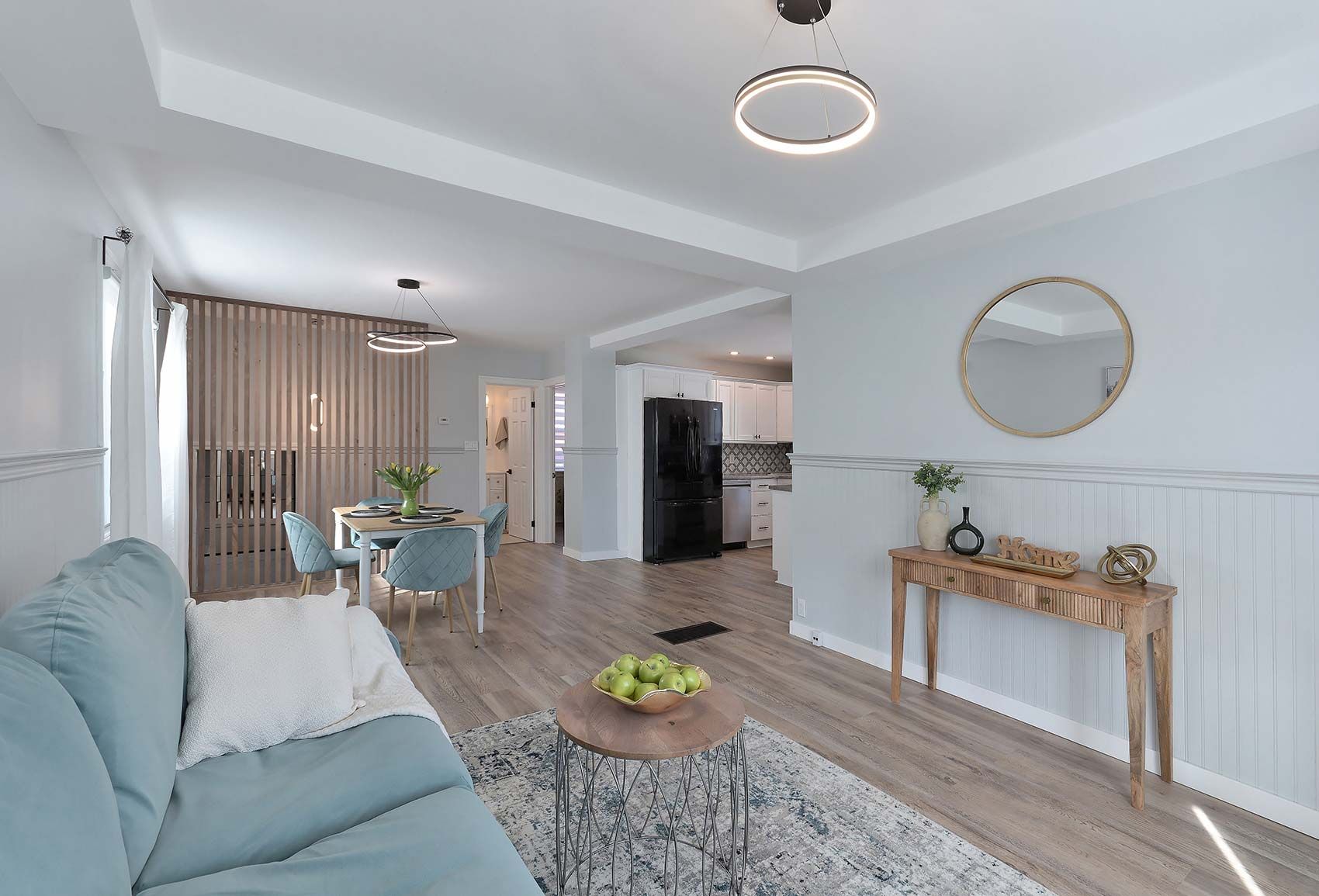 Welcome to this fully renovated home that offers modern comfort and convenience. Main floor features brand new luxury vinyl plank flooring, new smooth ceilings and walls. Freshly painted open concept living and dining areas, kitchen with ample cabinet space. Completely remodeled basement features additional 2-bedrooms, 3pc washroom, new flooring, new closet/storage space and laundry. Covered porch offers lots of space for mud room and storage. Garage converted into a versatile workshop. Newly professionally landscaped backyard with firepit, bbq area and lots of privacy.