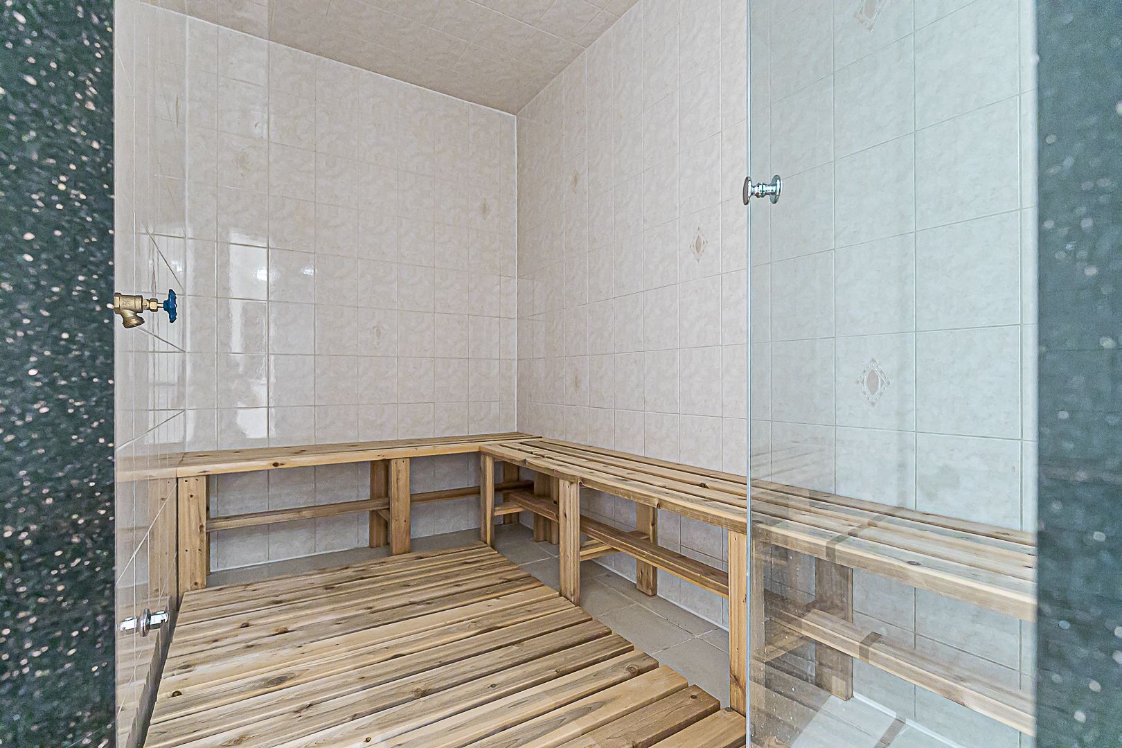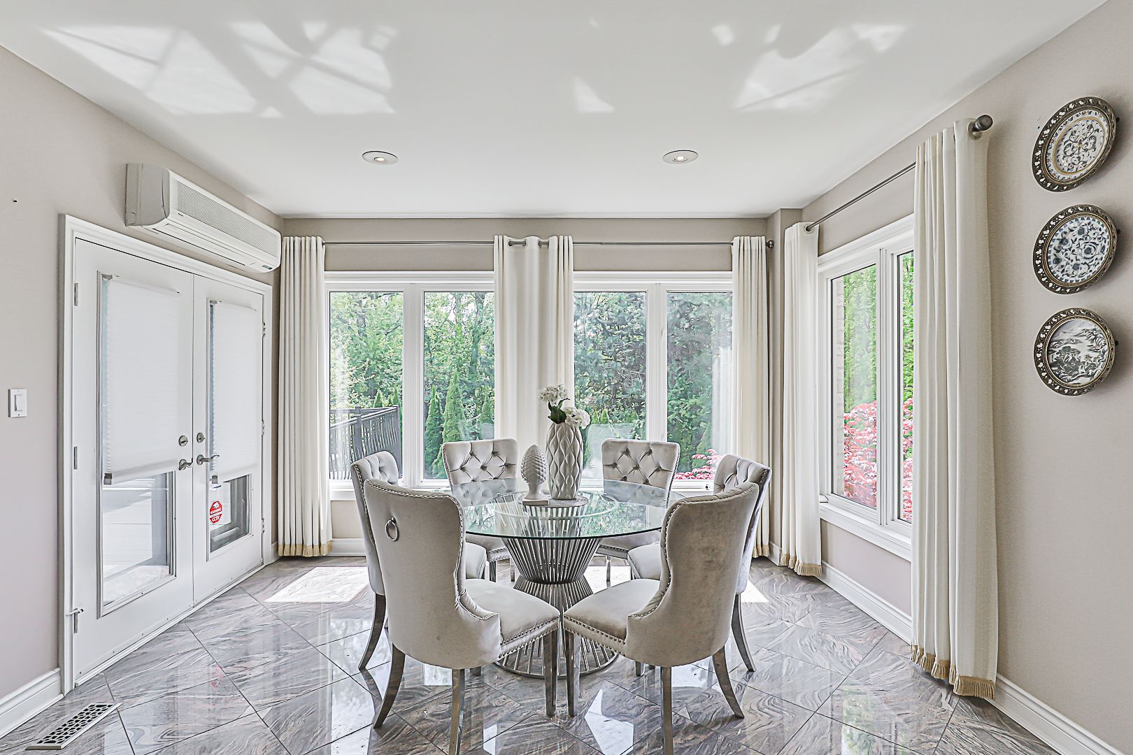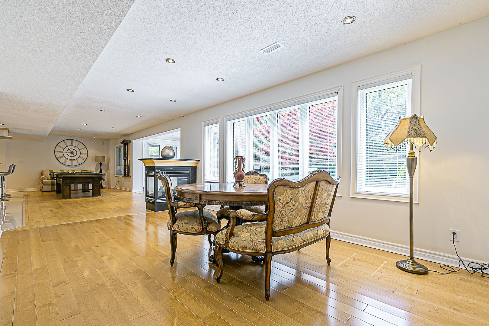 • Finished basement includes a bar, gym, sauna, and two bedrooms.