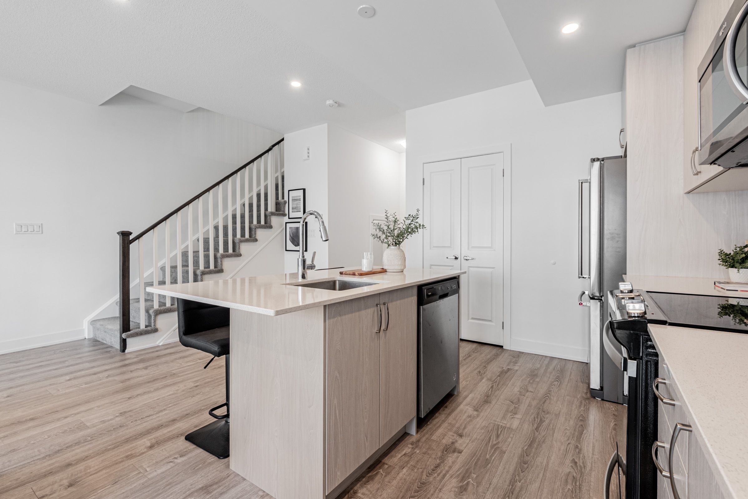 • Well-equipped kitchen with stainless steel appliances and quartz countertops.