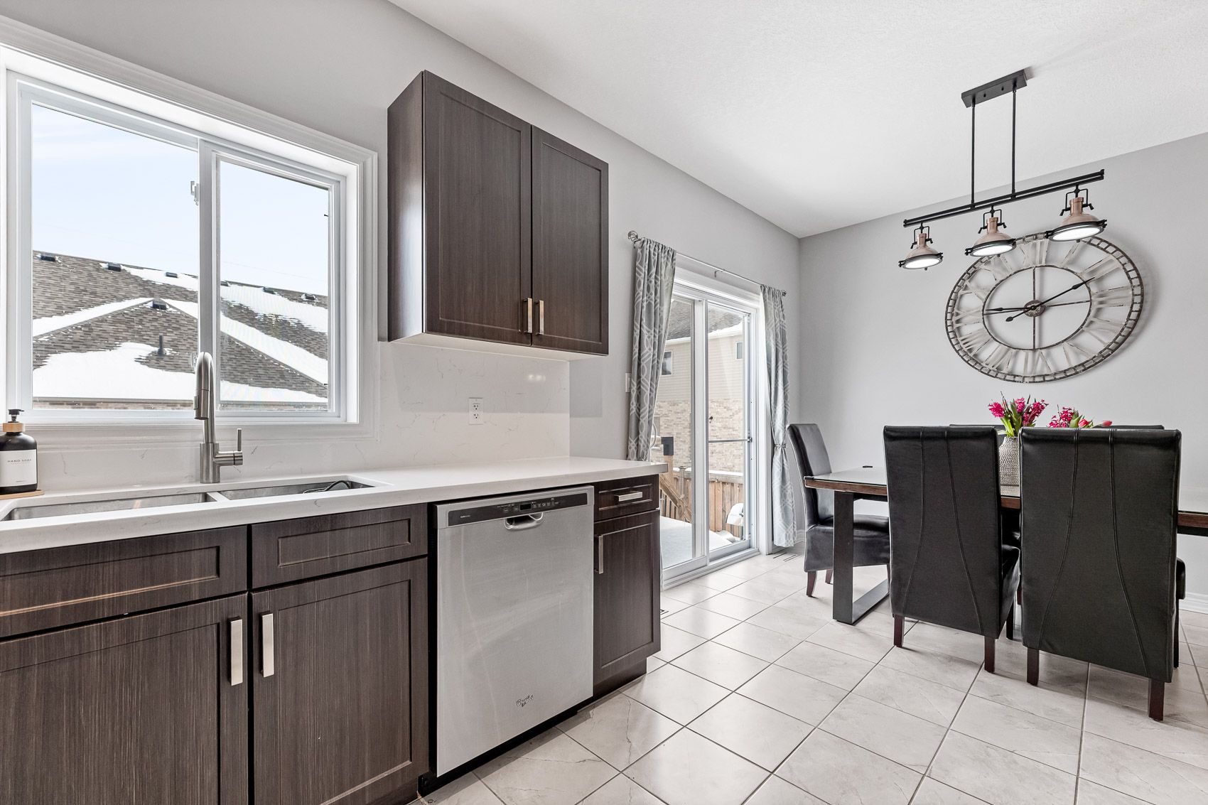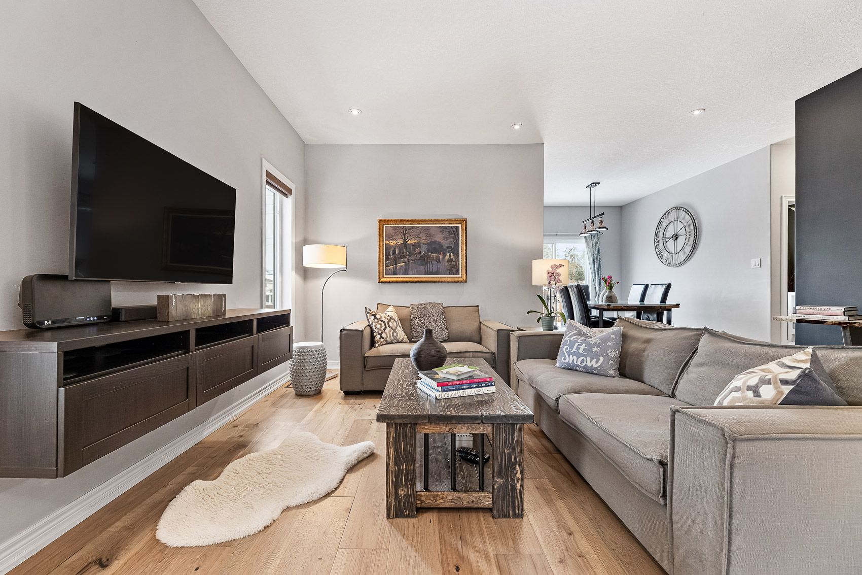 Welcome to this warm and inviting family home in the heart of beeton - a friendly small town that offers the charm of rural living with easy access to larger centres. Bright, beautifully finished family home in sought-after beeton! This welcoming home features a private second-floor primary suite with walk-in closet and spa-like ensuite. Two spacious main-floor bedrooms share a full bath and offer large closets. Open-concept main floor with hardwood throughout, stone countertops, stainless steel appliances, 5-burner gas stove, and walkout to deck with fully fenced backyard. Finished basement with 9-ft ceilings, gas fireplace, 3-piece bath, wet bar, and extra space for play or an additional bedroom. Family-friendly area, walking distance to schools, parks, and transit.