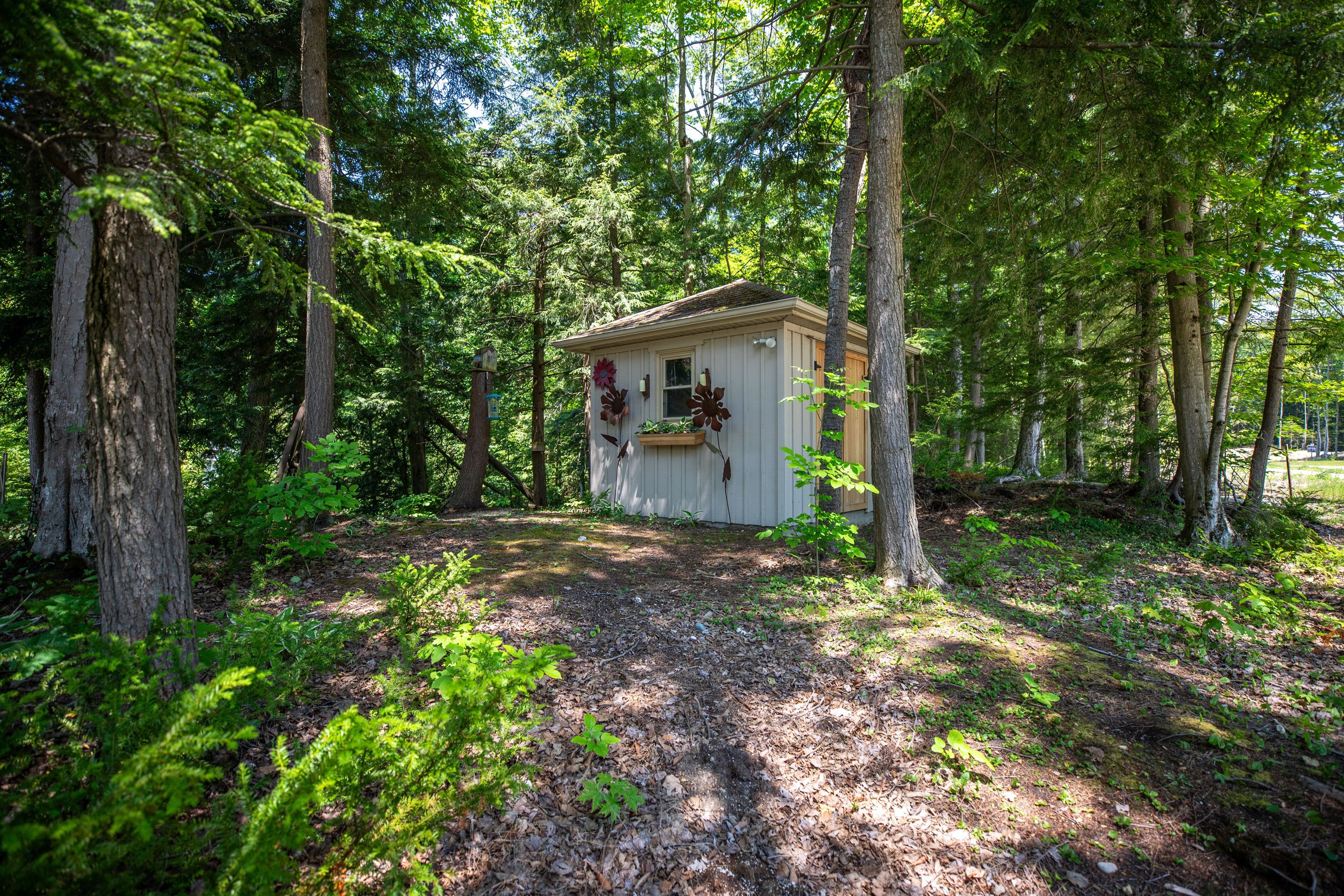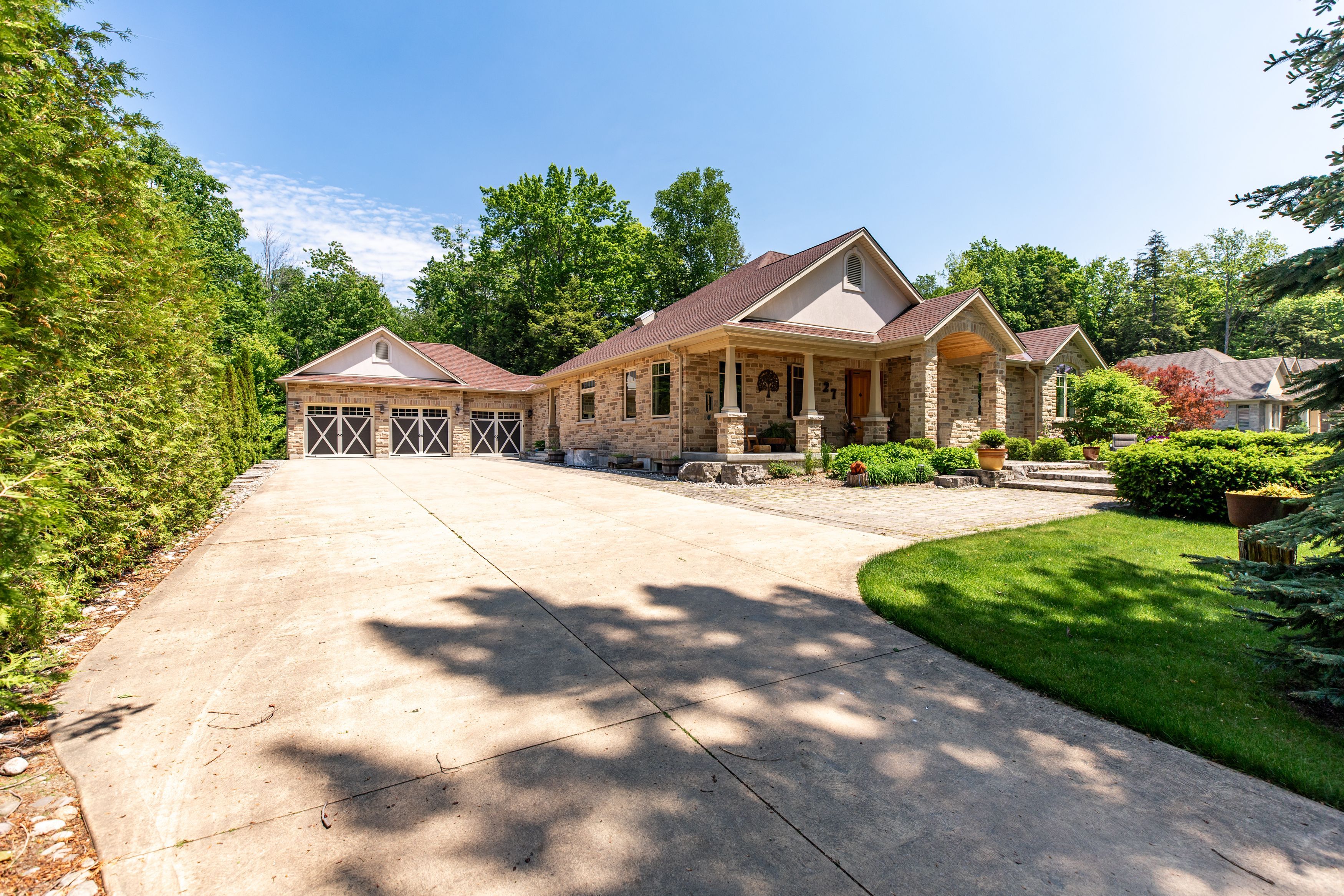 Nestled on a half-acre lot surrounded by mature trees, this exquisite craftsman-inspired executive residence-custom built by seaman-offers a blend of timeless design and modern luxury. A spacious covered porch leads to a welcoming foyer that opens to the home office, dining room, gourmet kitchen, and expansive living room. At the heart of this stands a majestic stone fireplace soaring to meet the 18-foot cathedral ceiling. The dedicated office, with built-in bookcases and a picturesque view of the front yard, provides an ideal setting for remote work or a home-based business. The chef's kitchen is a culinary dream, featuring a generous central island with a six-burner viking cooktop, range hood, b/i ovens and an oversized fridge/freezer. A walk-in pantry adds both convenience and charm. French garden doors in the living room lead to a private patio-perfect for al fresco dining and enjoying tranquil summer evenings. The primary suite is a true retreat, offering direct patio access, a tray ceiling with recessed lighting, a cozy window seat, and abundant natural light. The spa-inspired ensuite boasts a walk-in tiled shower, elegant dressing table, and a generously sized basin, complemented by a custom-organized walk-in closet. A second bedroom features wall-to-wall closet and full bath with a tub/shower combination. The family entry includes a spacious secondary foyer, a large mudroom with laundry, a tiled dog wash station, and direct access to the oversized triple garage and patio. The lower level is equally impressive, offering a family room sized for a pool table, two additional bedrooms, and a full bath with shower. Additional amenities include a cold room, storage, and utility. The unfinished portion is roughed-in and ready for a fully equipped in-law suite, providing flexibility for multi-generational living. Professionally landscaped with an irrigation system, this masterpiece was crafted for family and friends! Easy stroll to lake huron. Certified r2000.