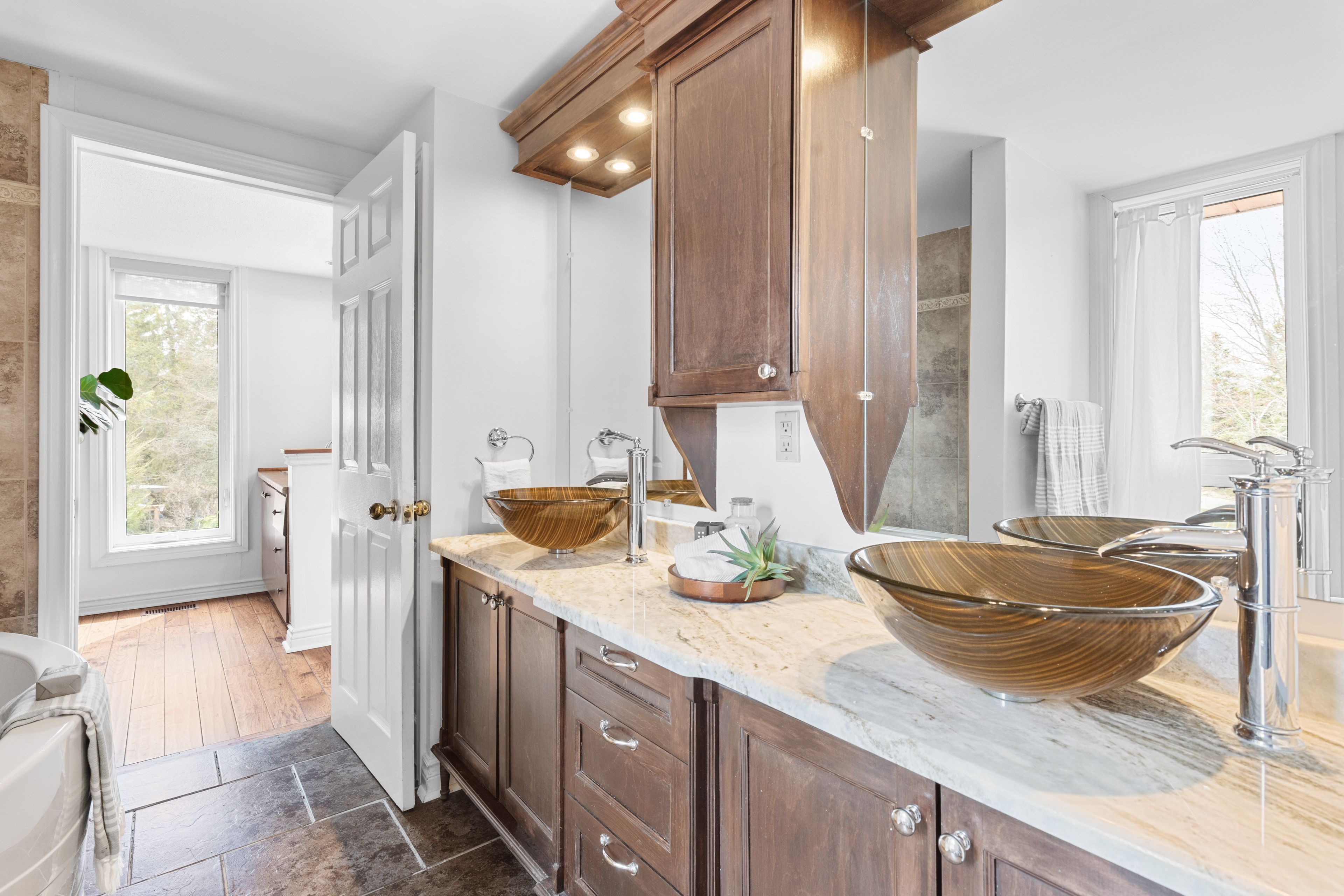 Your dream lakefront lifestyle awaits. This impressive 4+2 bedroom 3-bath, 4,800 sqft solid brick home sits proudly on 1. 08 private acres with 162 feet of waterfront a rare gem just 1 hour from the gta. Step inside to find hardwood and ceramic floors, an updated gourmet kitchen with granite counters, marble backsplash, gas range and multiple walkouts to lakeview decks from both the living room and the spacious upper level retreat. The nearly 1,000 sq ft primary suite is a true sanctuary, offering a walk-in closet, updated ensuite, private living area, and even a kitchenette perfect for relaxation or extended family stays. This home is ideal for multi-generational living, a luxurious full-time residence, or an income property, this home offers flexible space for all your needs. Complete finished in-law suite with cozy living area, kitchen, bath & walkout to yard & entrance from garage. Plenty of storage in the home. Bonus exterior boathouse at the lake, excellent for storing waterfront recreational toys or an entertaining space. This property is situated on a quiet street minutes to park & local shopping. The possibilities are endless with this home.