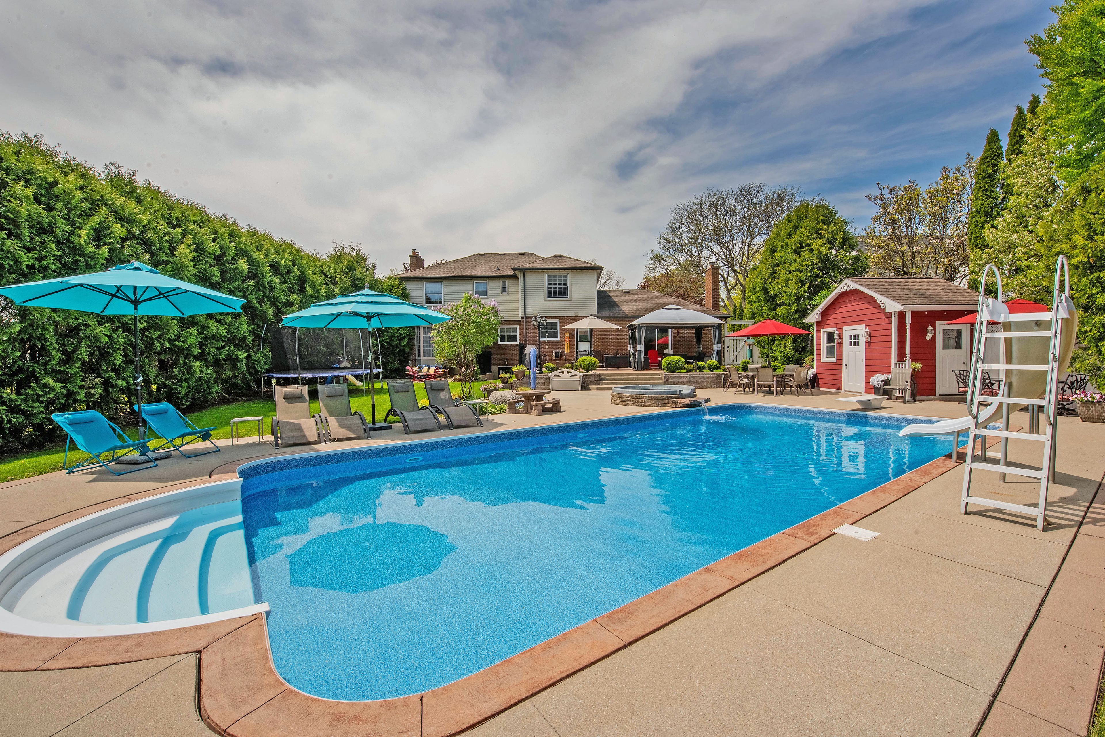 Beautiful masonville family home, cherished by the same family since 1992, this 5-bedroom, 3. 5-bath home offers incredible space and warmth. The main floor features two wood-burning fireplaces, while the fully finished basement with backyard access adds extra living space. Step outside to a backyard oasis with an in-ground pool, attached hot tub, concrete patio, pond, and a charming newer shed-a true retreat! Prime location: close to masonville mall, university hospital, western university, and masonville public school. This loved home is ready for its next owners - don't miss out!